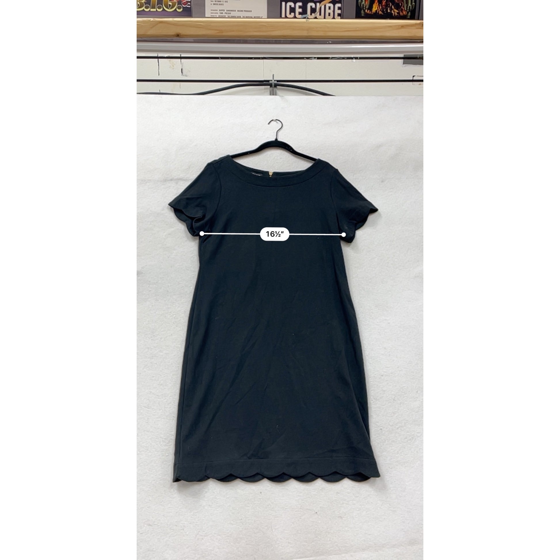 Talbots Womens L Black Scalloped Hem Cotton Short Sleeve Dress #64A