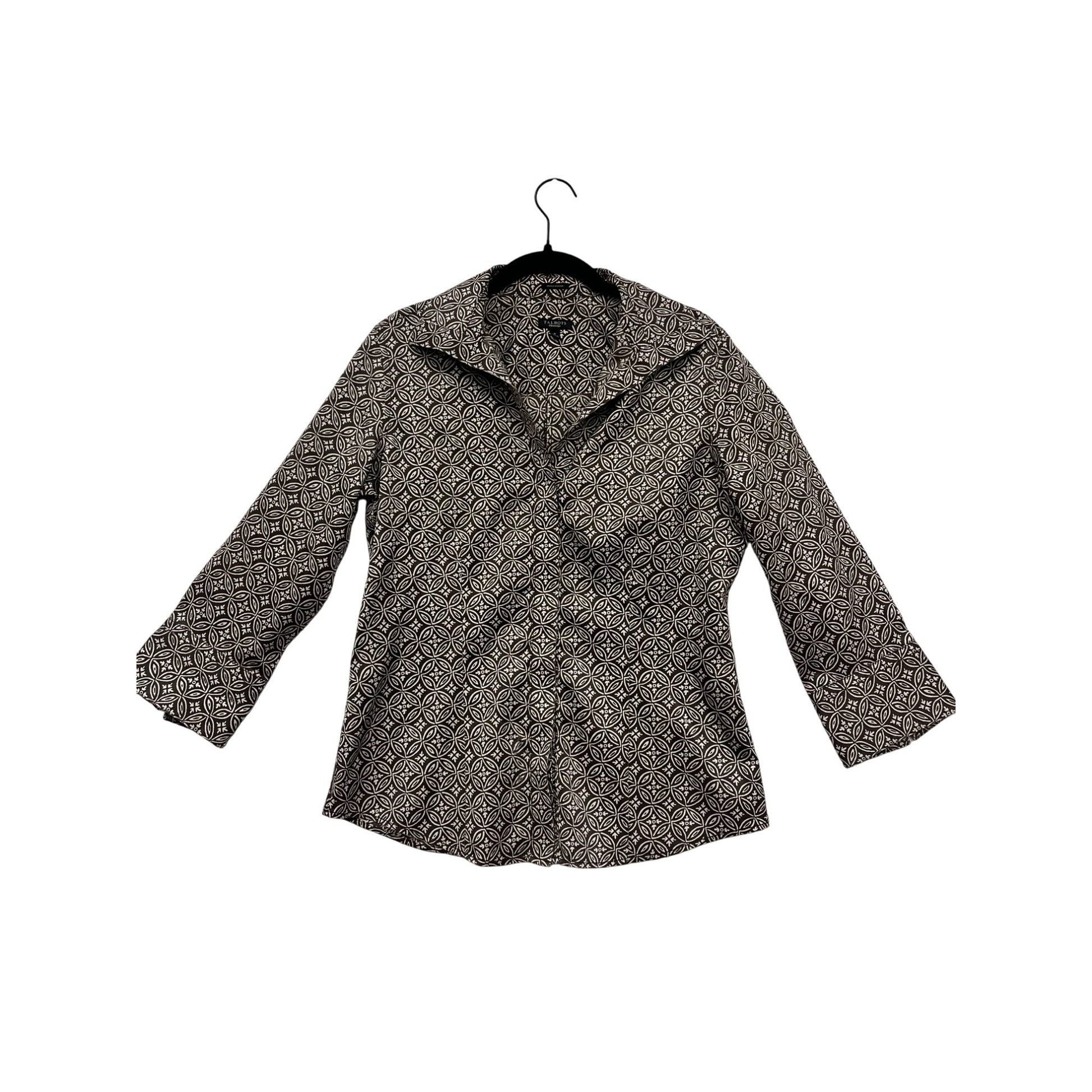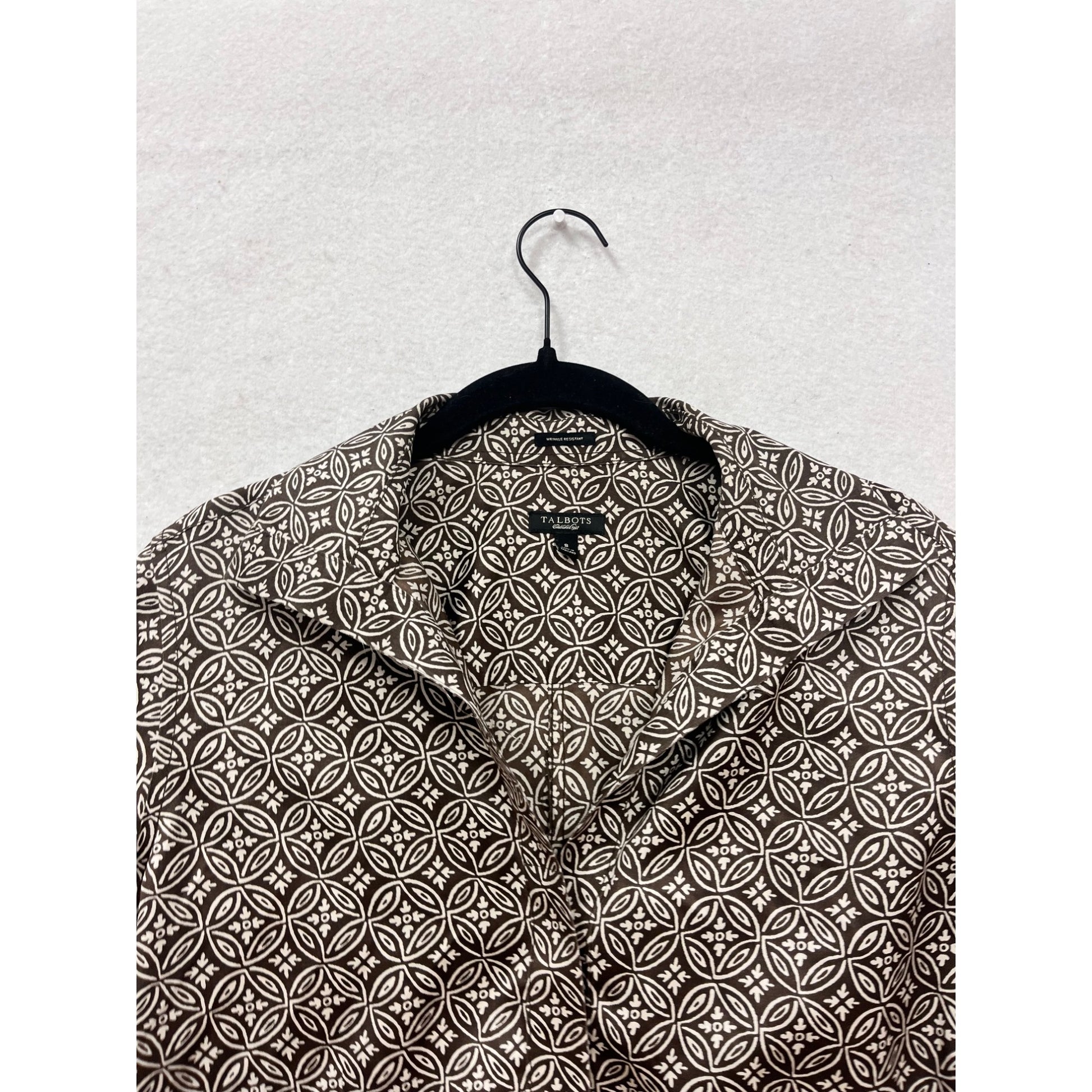 Upgrade your casual wardrobe with this Talbots shirt. Its wrinkle-resistant feature is ideal for easy maintenance, while the geometric print adds a stylish touch.