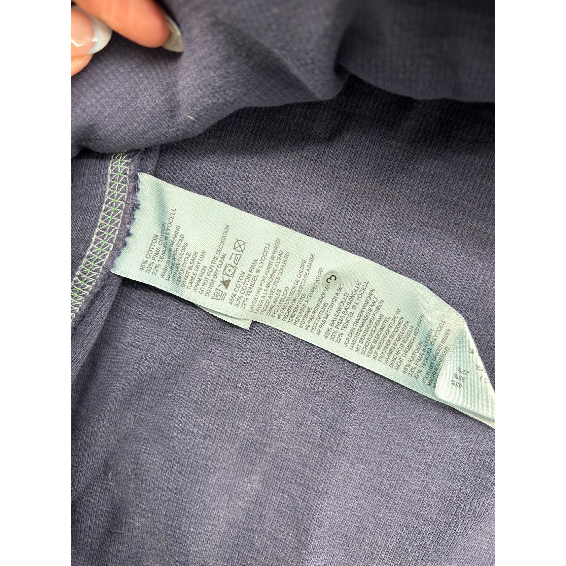 Soft and lightweight, this pullover offers casual comfort with a touch of style. Its navy fabric and green marlin embroidery make it versatile.
