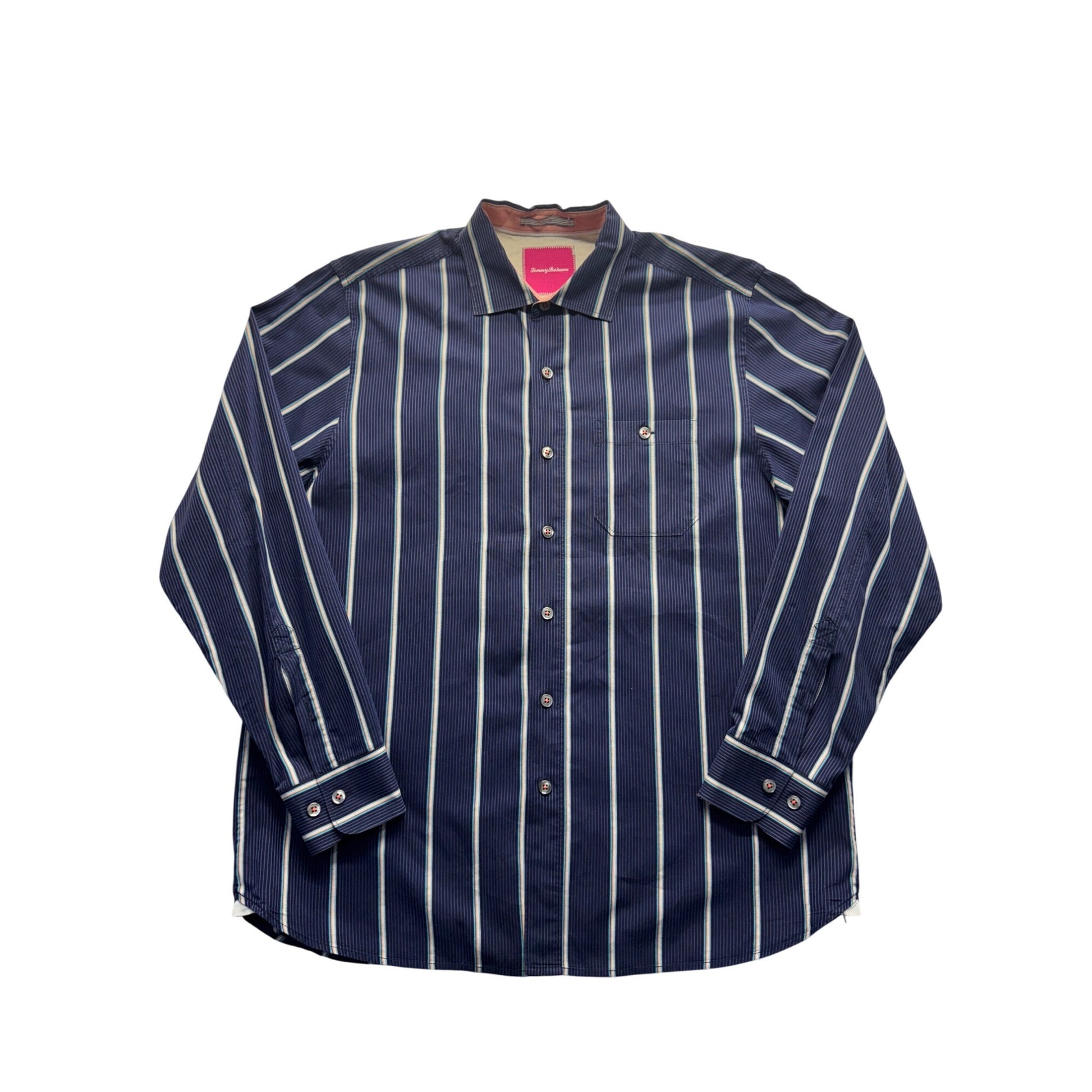 Tommy Bahama Mens Long Sleeve Navy Striped Button-Down Shirt #9980