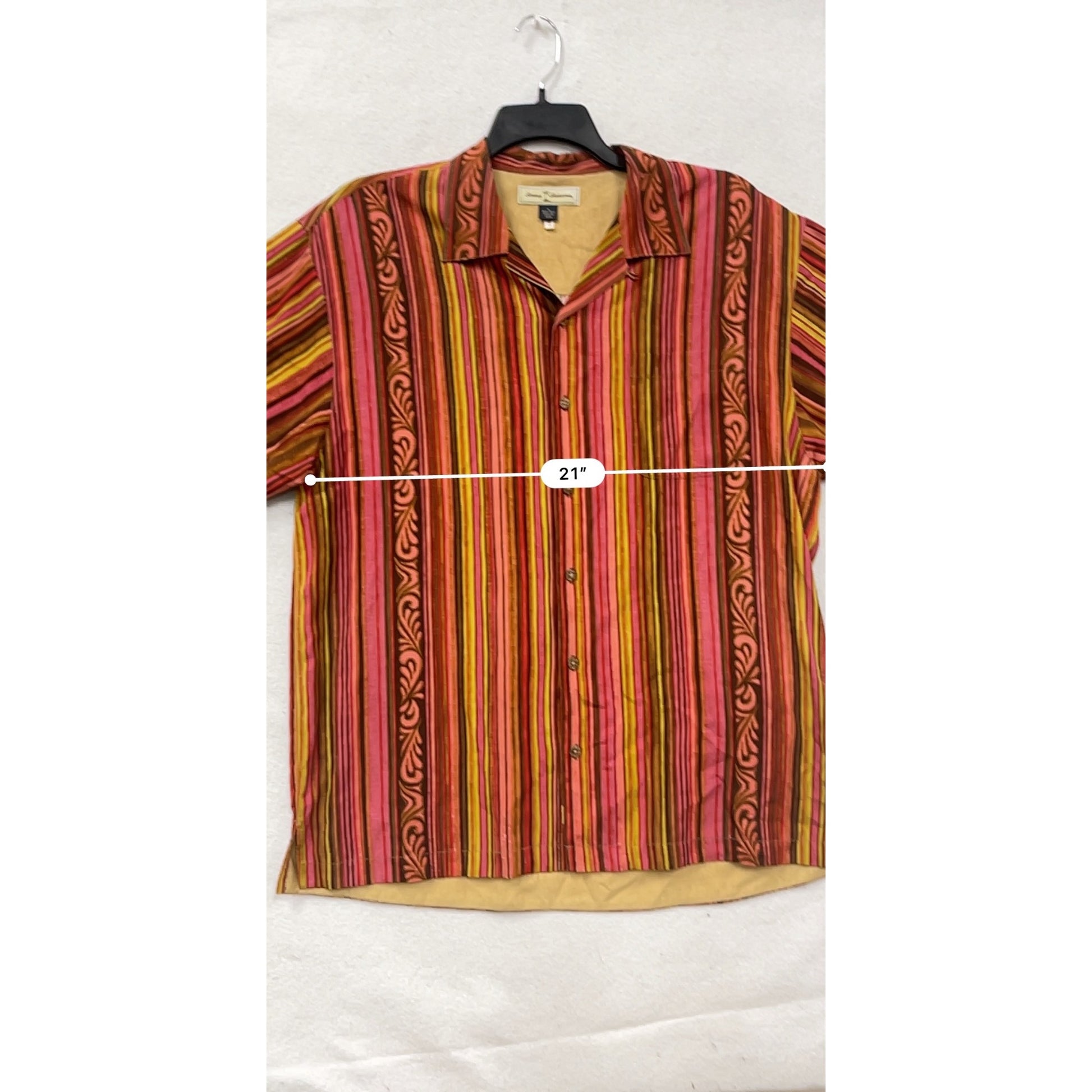 Tommy Bahama Silk Button-Up Shirt Red Stripe Pattern Size L #8340