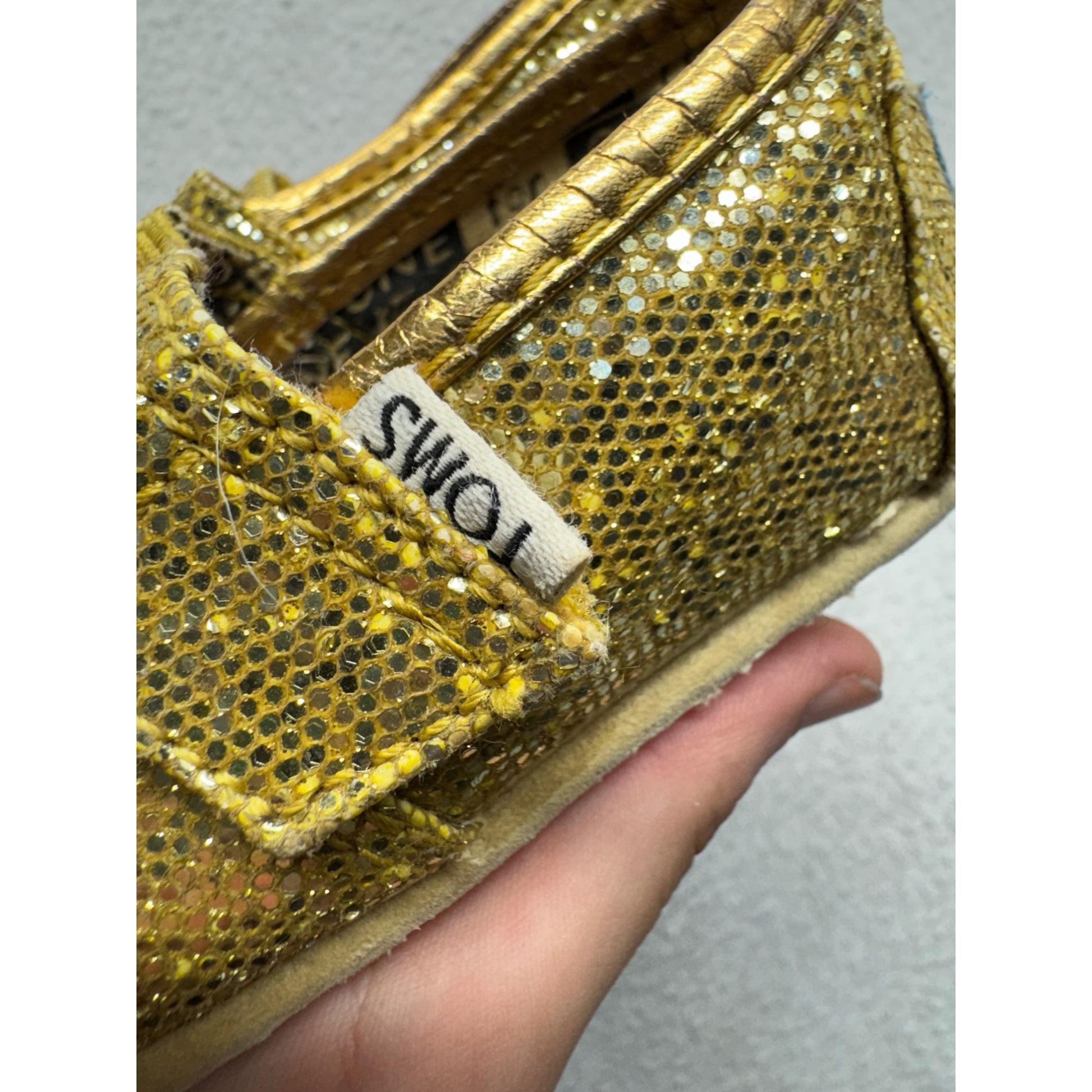 Toms Gold Glitter Toddler Shoes With Elastic Strap Closure #9401