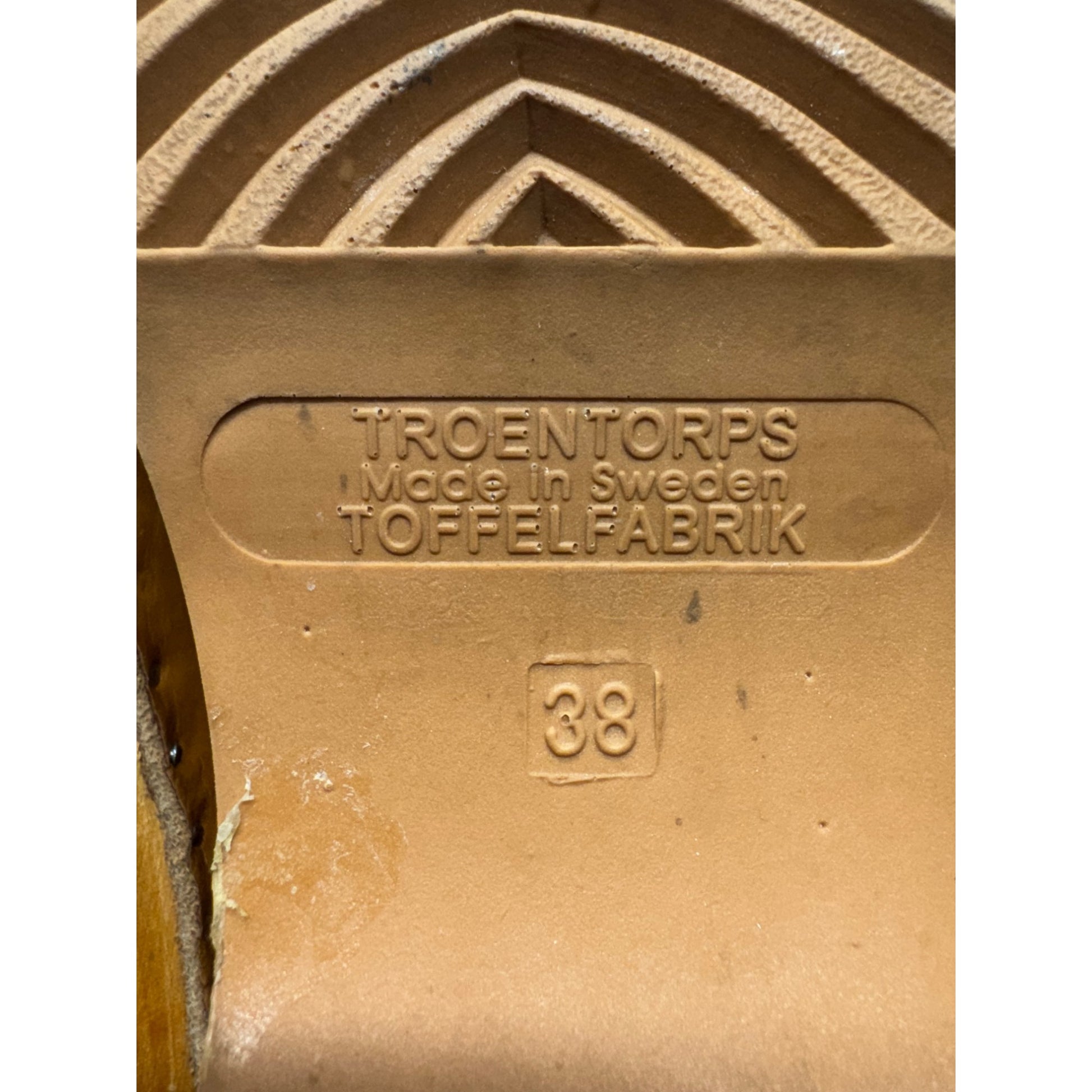 Troentorps Tan Leather Swedish Clogs Size 38 With Black Trim 9440