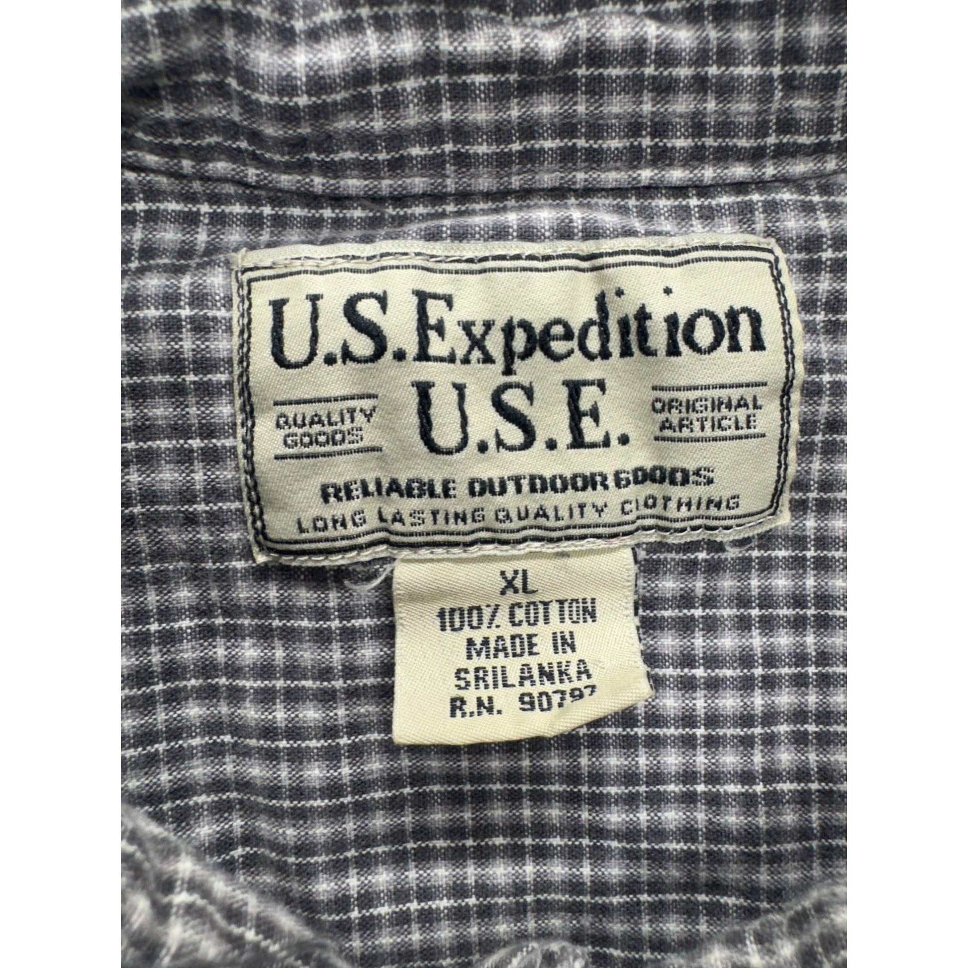 U.S. Expedition Mens XL Gray Plaid Long Sleeve Button-Down Shirt 100% #9542