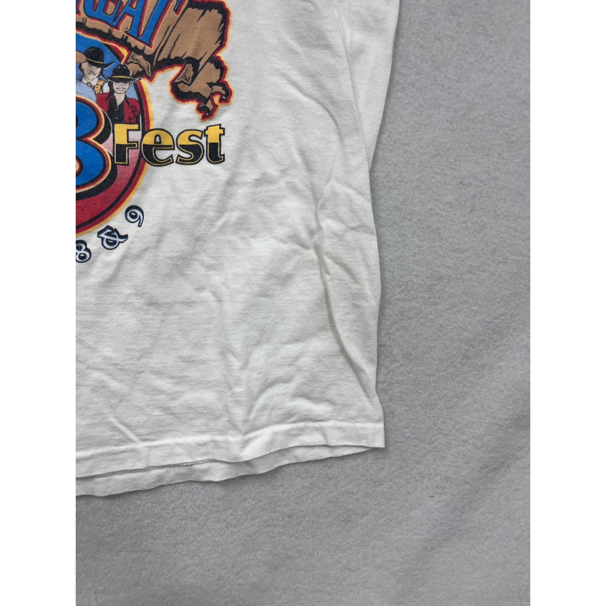 Celebrate the nostalgia of the 1998 WF Fest with this vintage Anvil tank top. Featuring vibrant graphics and country music legends' names, this piece resonates with memories of a classic era in country music. Crafted from soft cotton, it’s comfortable and durable, encapsulating a timeless festival vibe.
