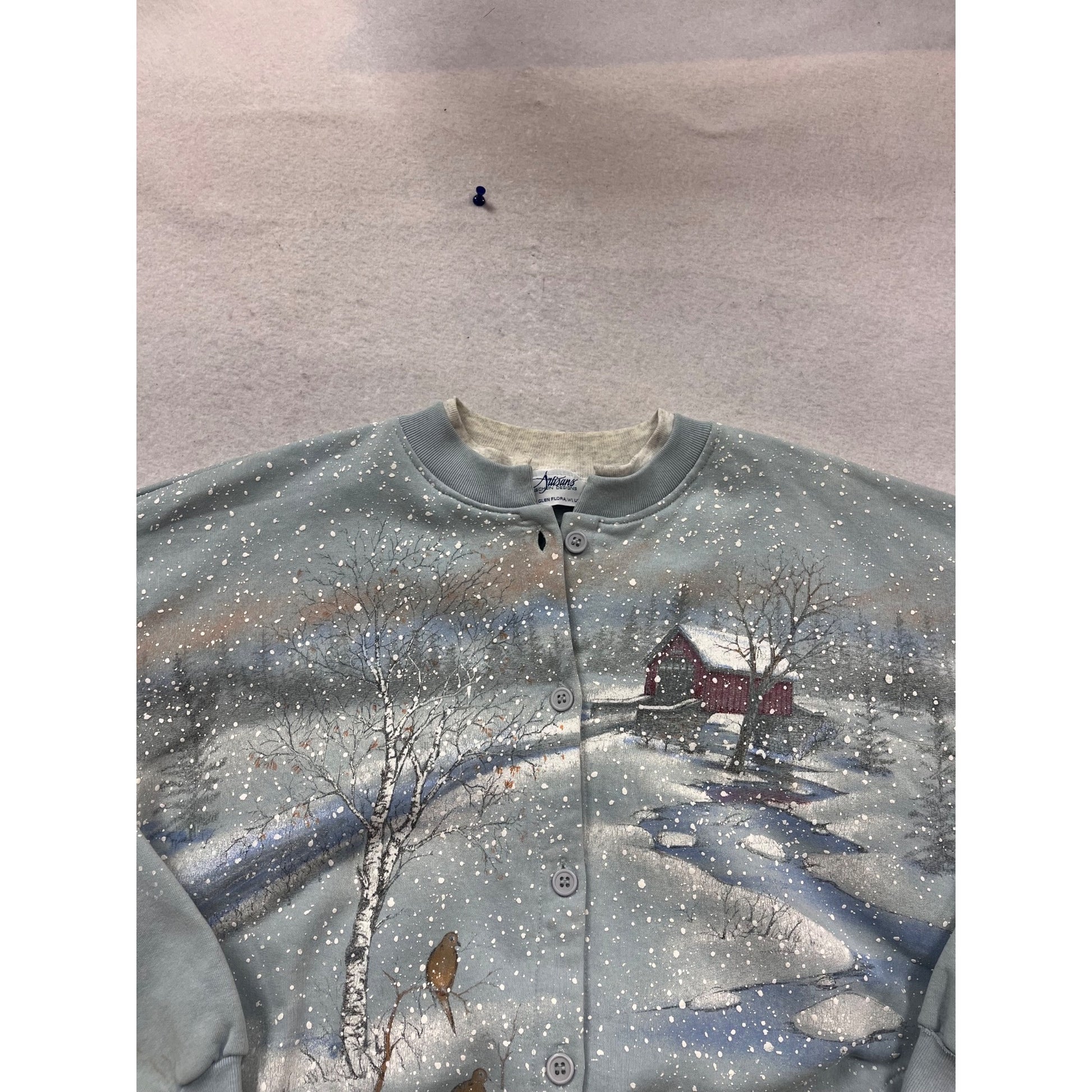 Vintage Artisans Hand-Painted Winter Scene Cardigan Sweatshirt #107C