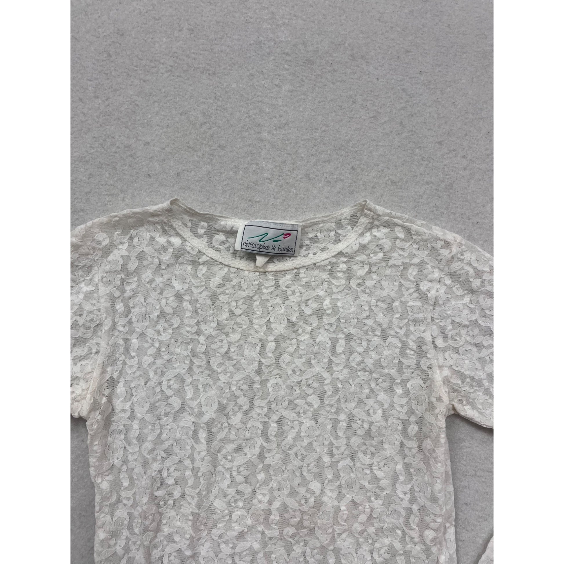 Vintage Christopher & Banks Lace Long Sleeve Top S White USA #352A