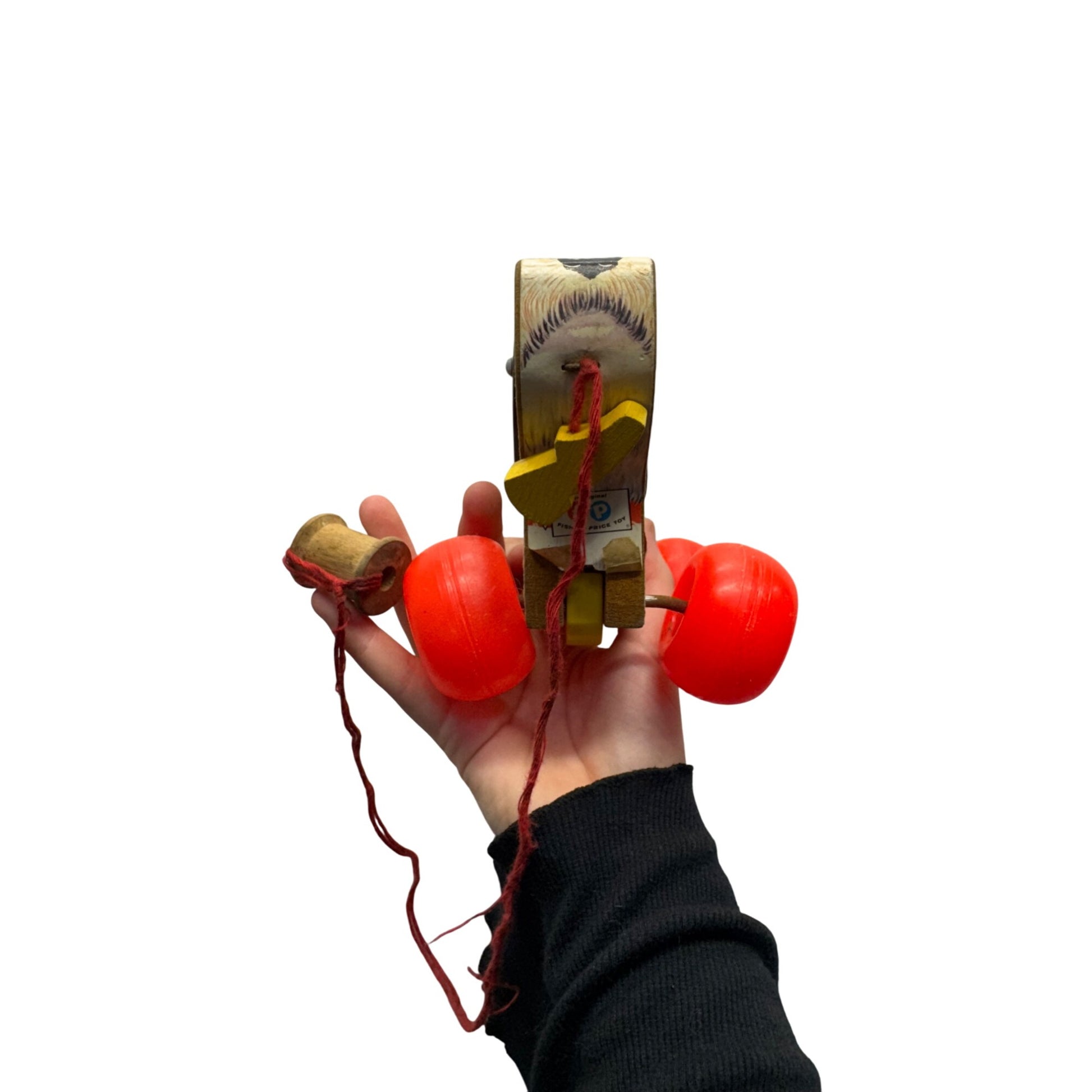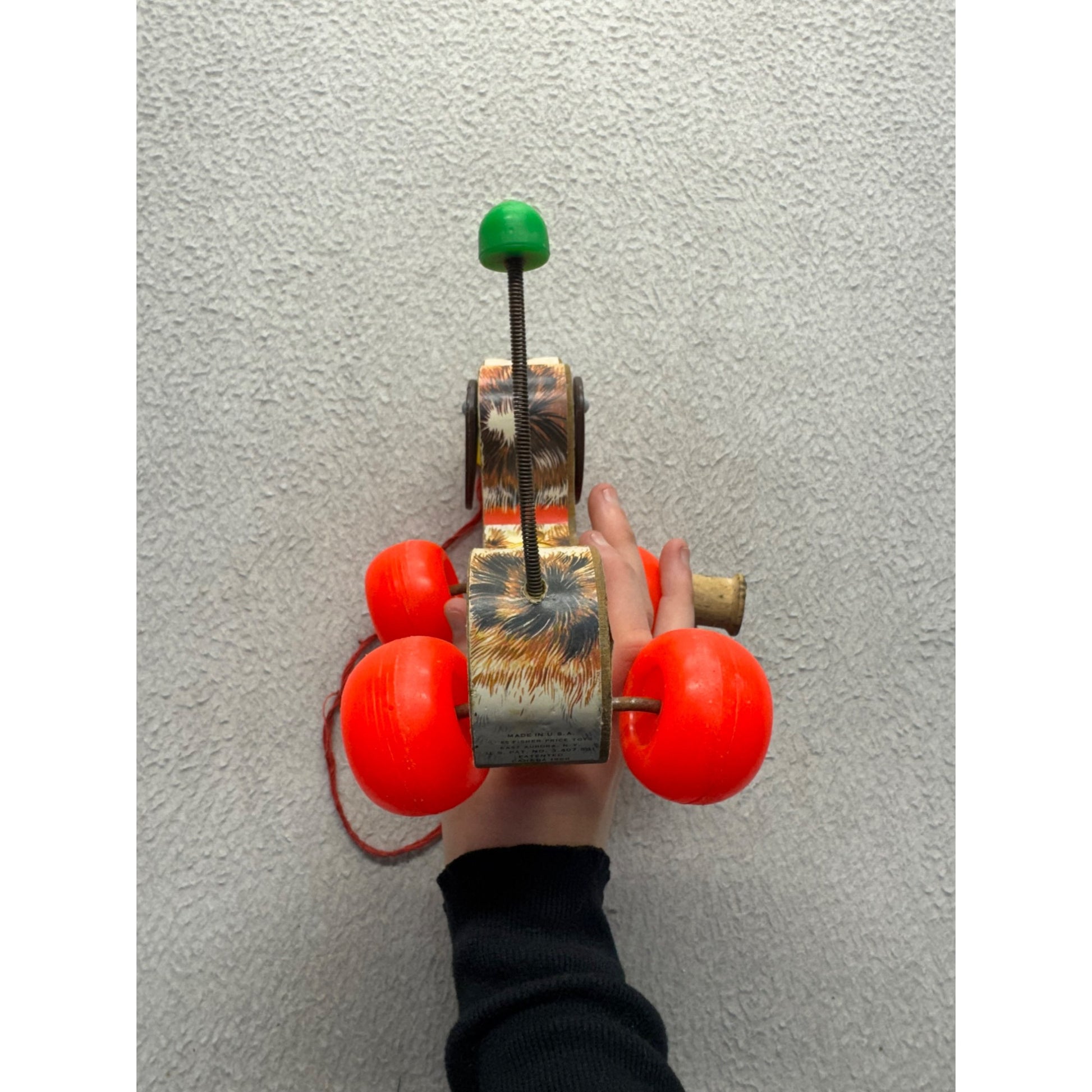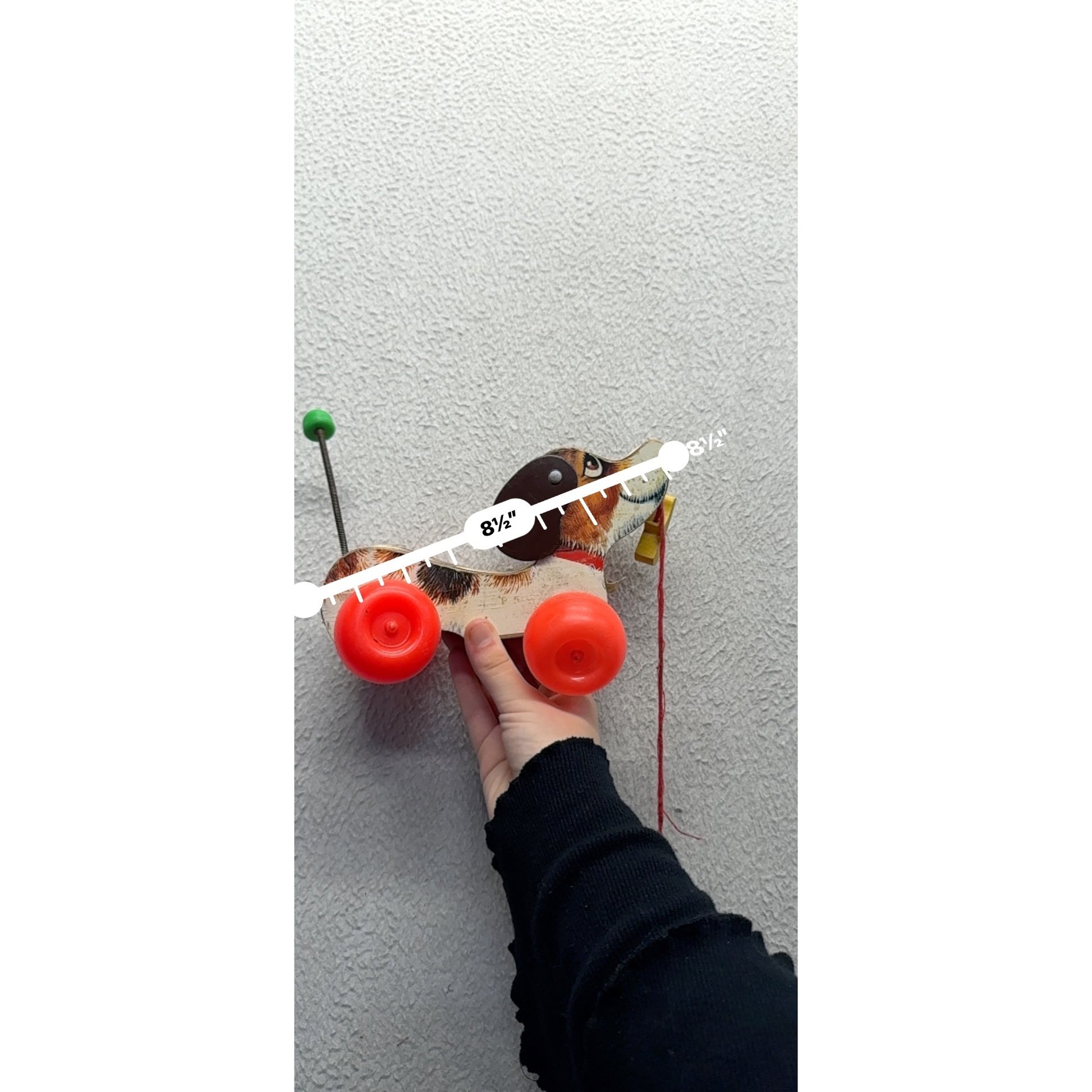 This timeless Fisher-Price pull toy dog has charmed generations with its cheerful design. Its vibrant red wheels and wagging tail bring back memories of simpler days. Crafted with care, this classic companion is ready to roll into a new chapter of play or collection, spreading joy wherever it goes.