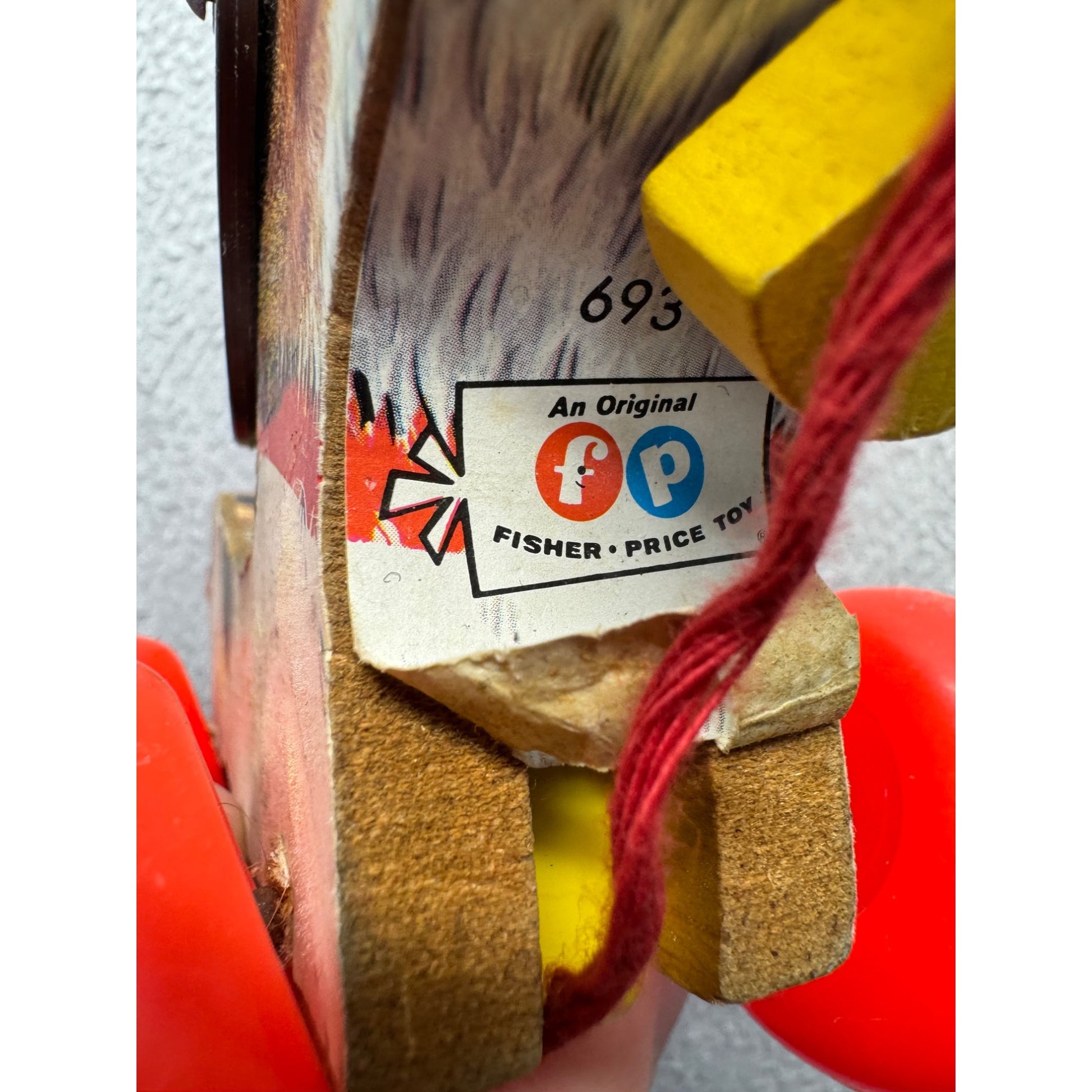 Vintage Fisher-Price Pull Toy Dog 693 With Red Wheels & String #407B