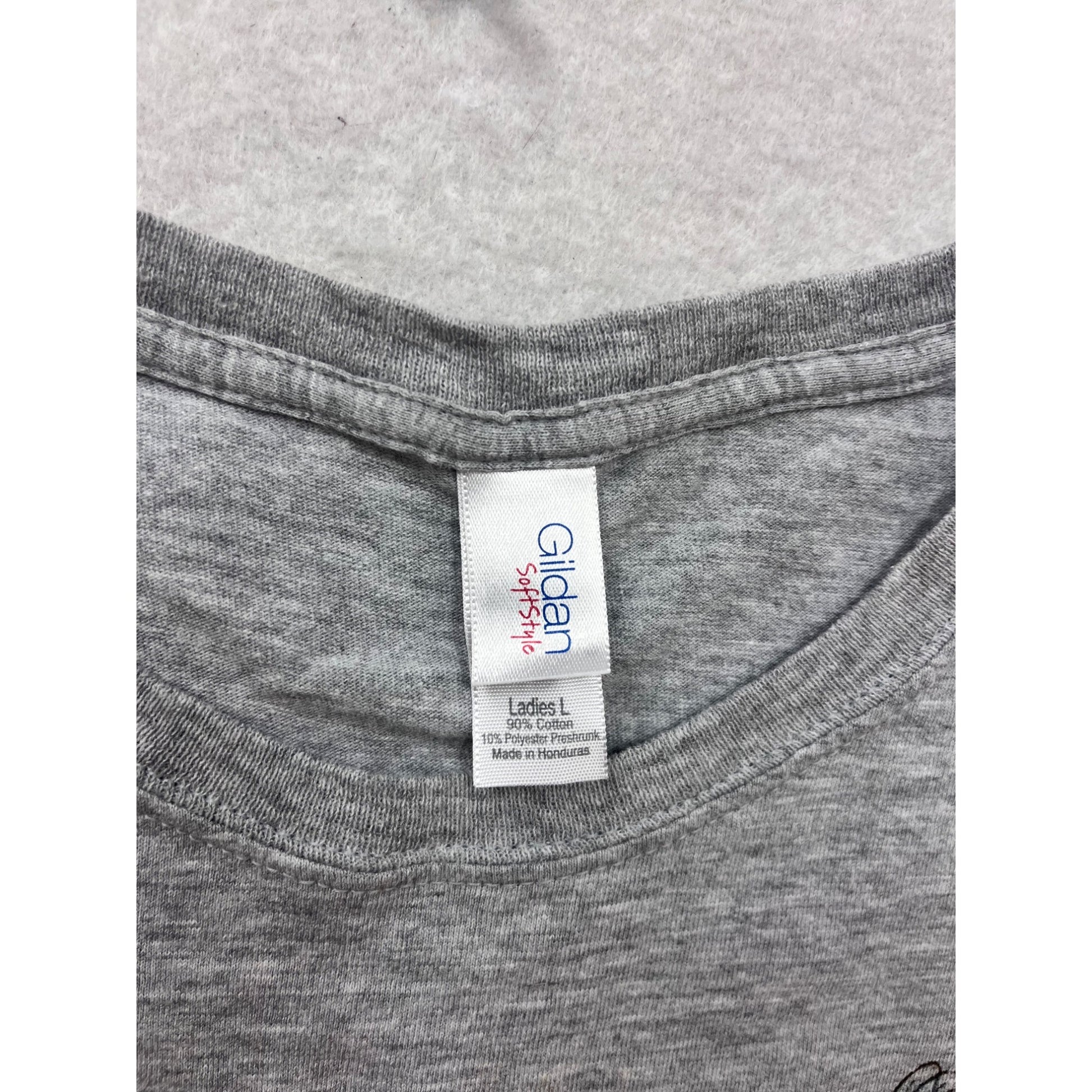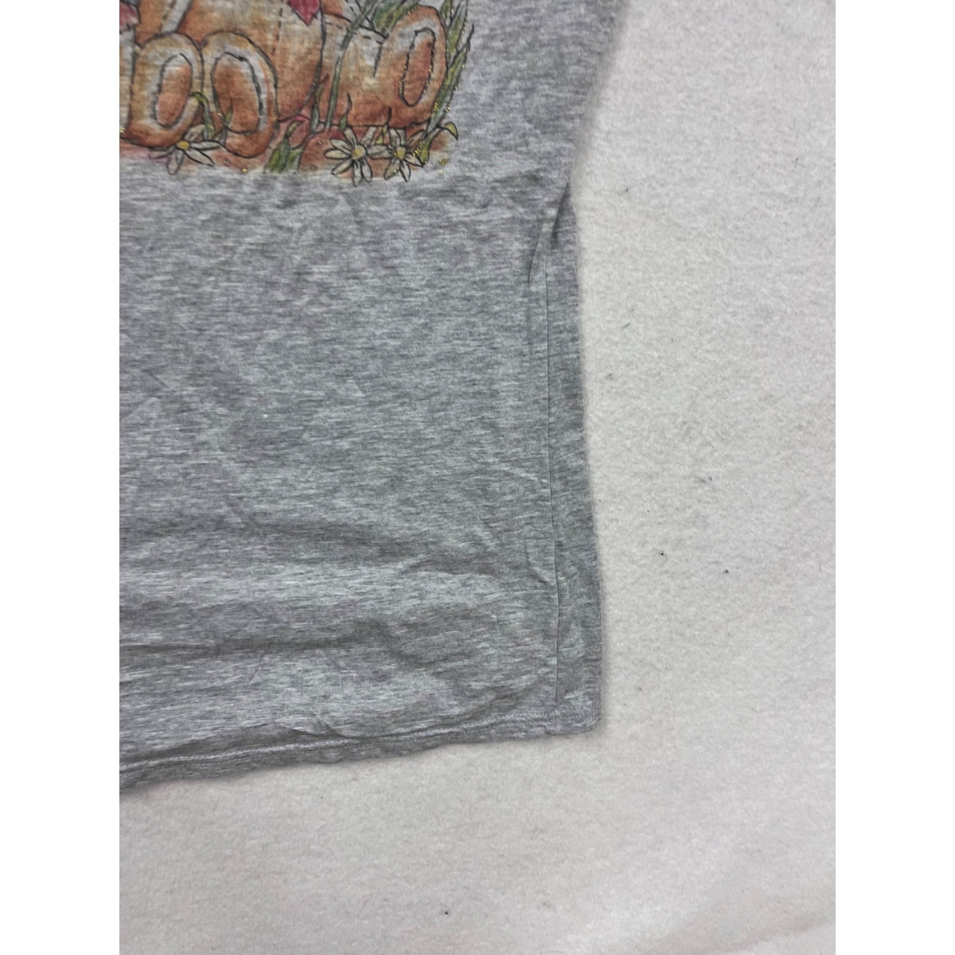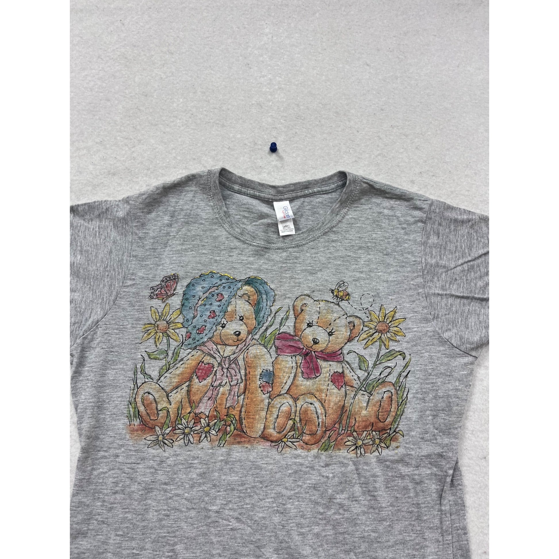 Vintage Gildan Ladies T-Shirt With Teddy Bear Print Size L Gray #684A