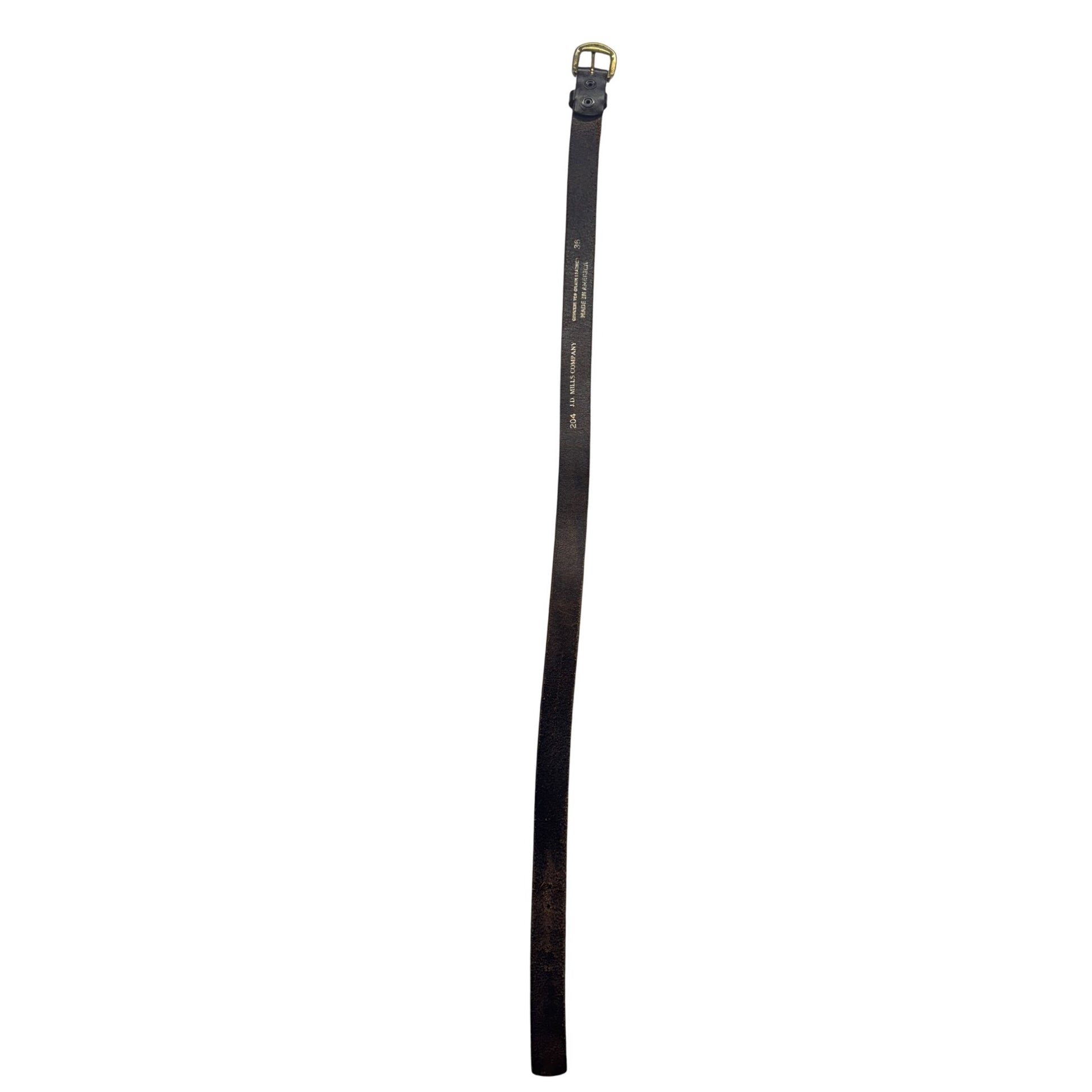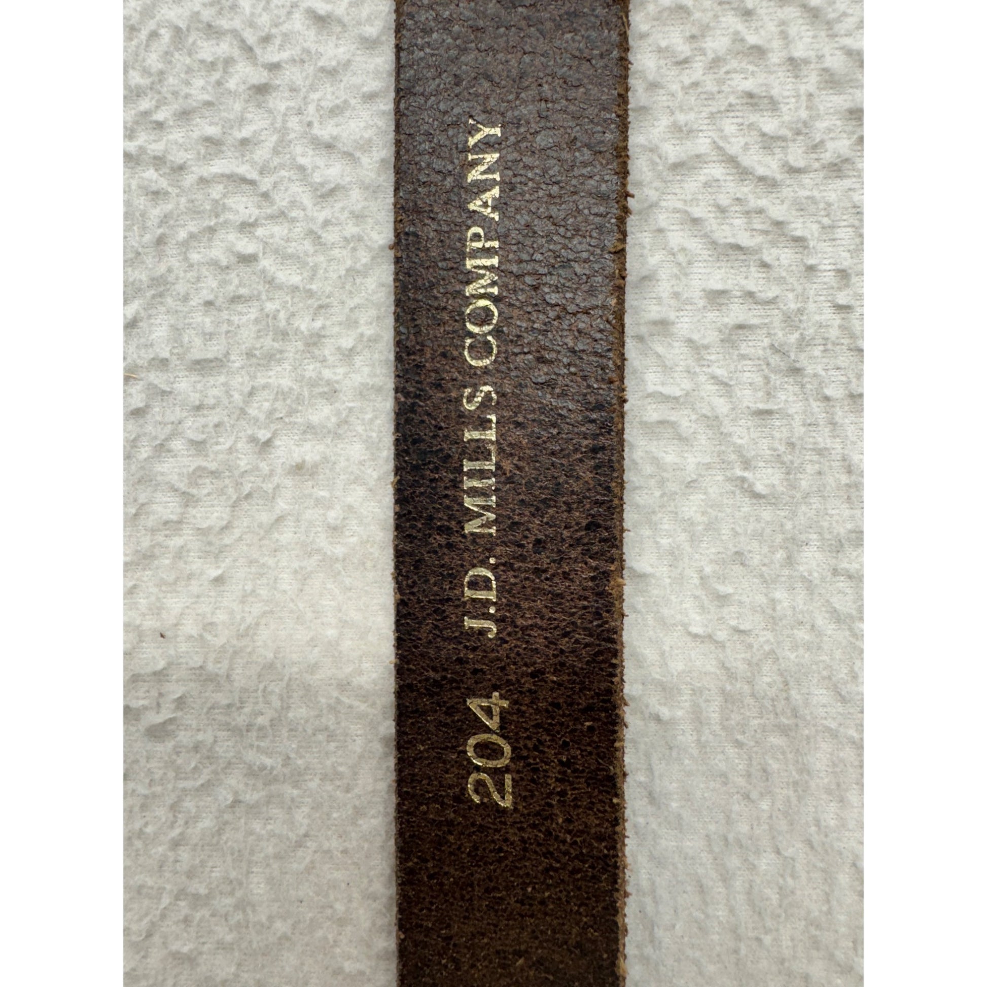 Vintage J.D. Mills Co. Genuine Top Grain Leather Belt 36 Brown Brass Buckle 6B