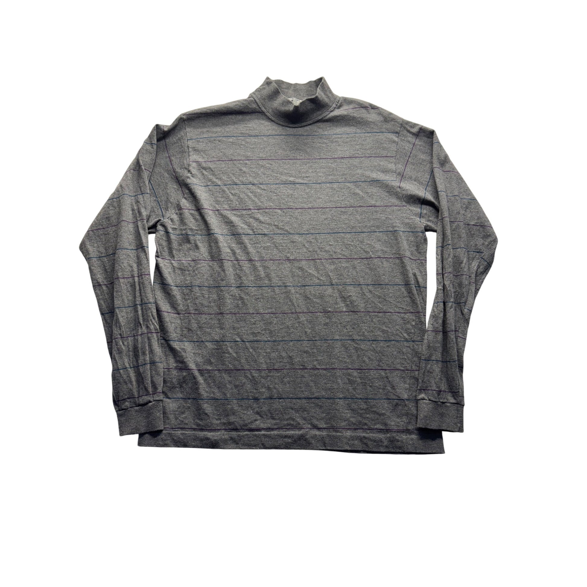 Vintage Jockey Gray Striped Long Sleeve Mock Neck Shirt 100% Cotton #7870