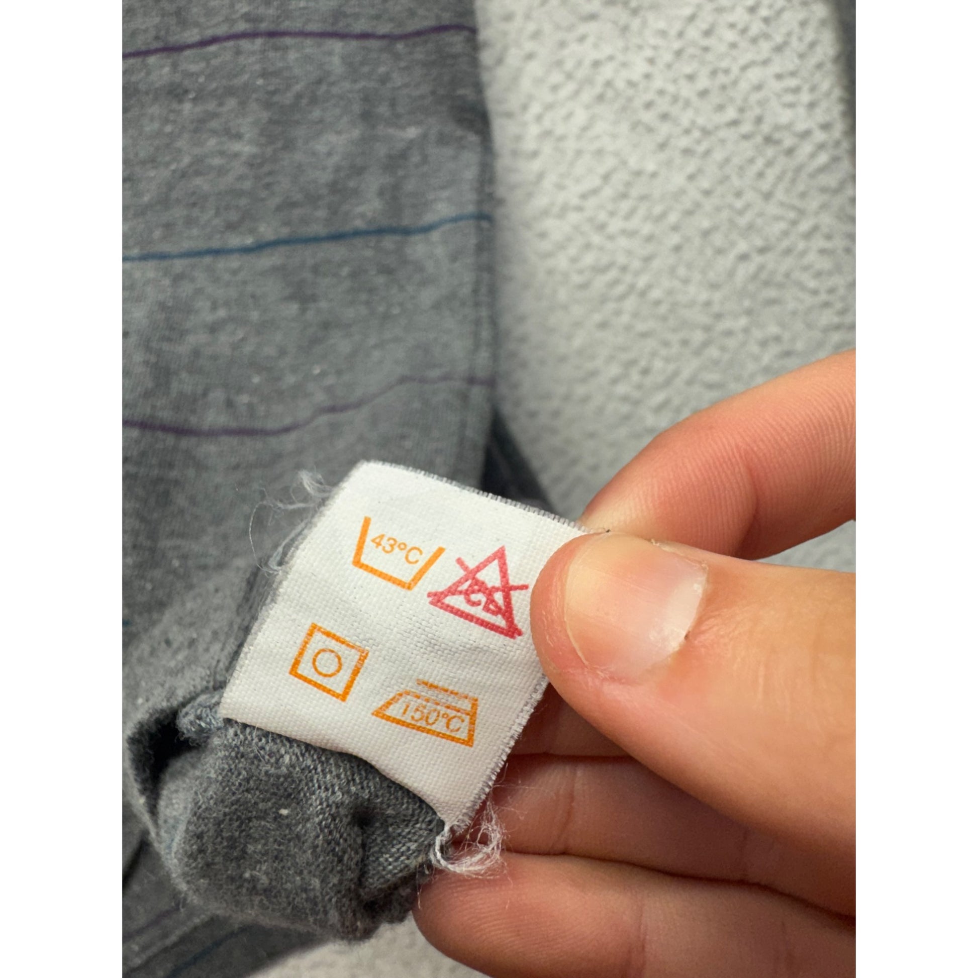 This gray striped long sleeve shirt with a mock neck offers a polished yet comfortable look. Crafted from 100% cotton, it ensures durability and breathability.