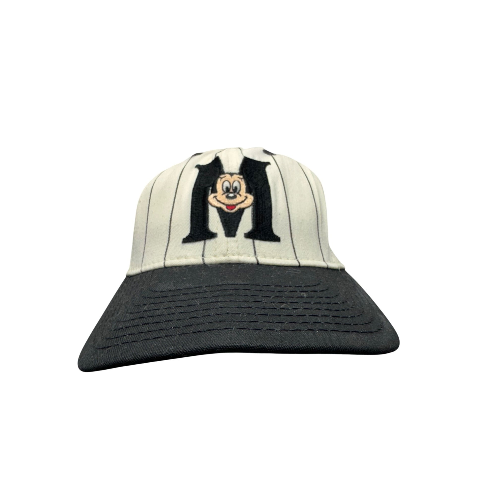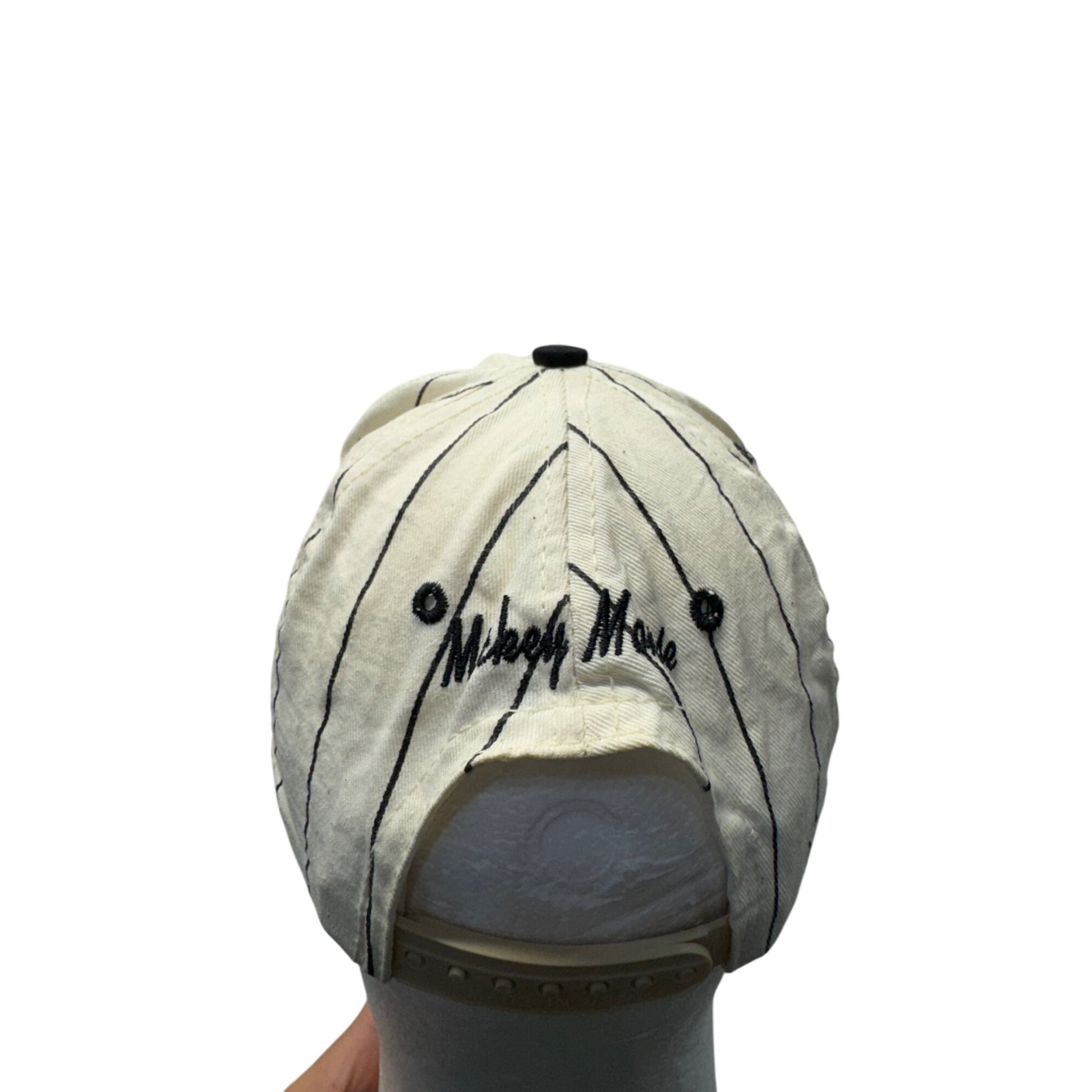 This vintage Mickey Mouse baseball cap features a nostalgic pinstripe design, detailed embroidery, and a comfortable adjustable strap for a custom fit.