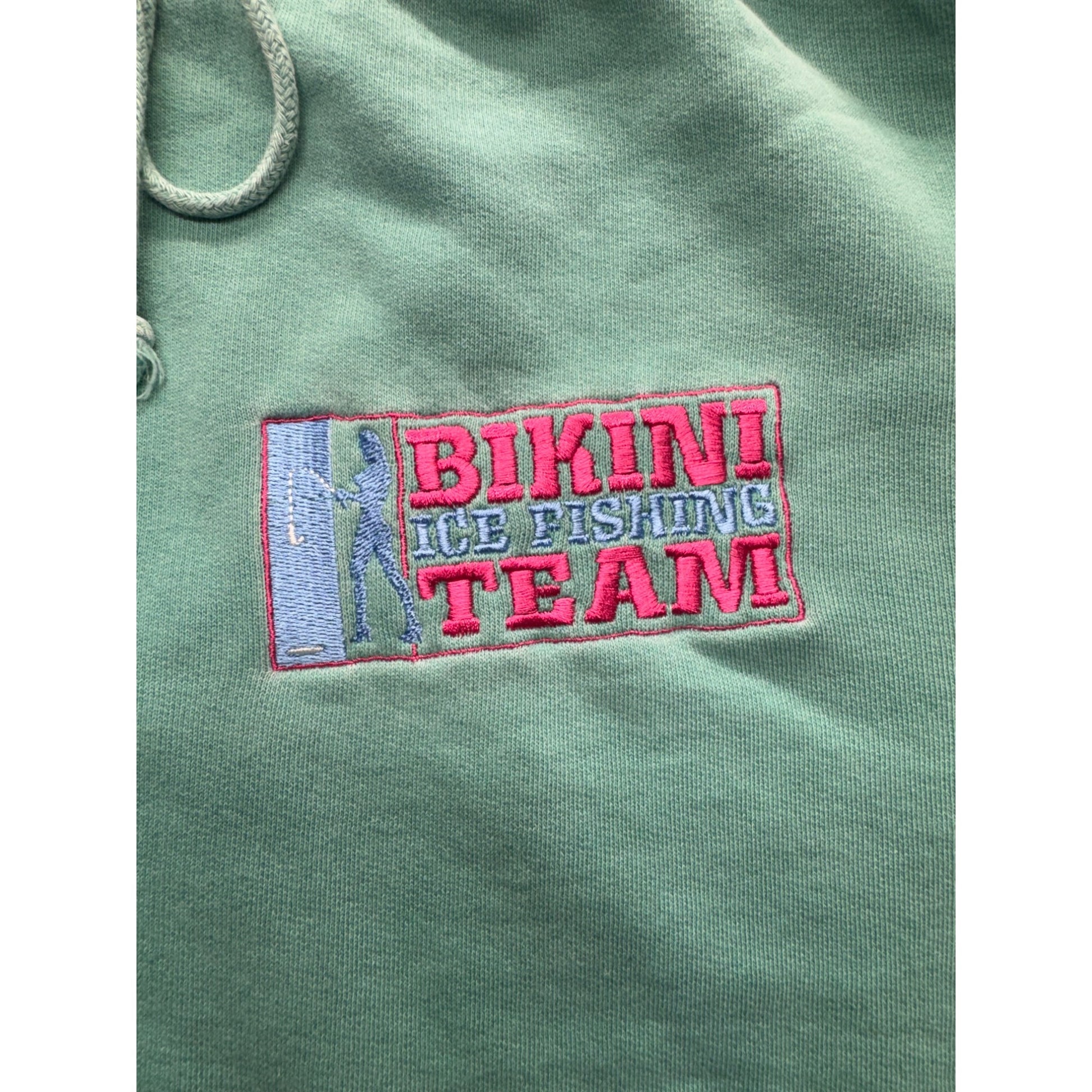 • Embroidered "Bikini Ice Fishing Team" graphic