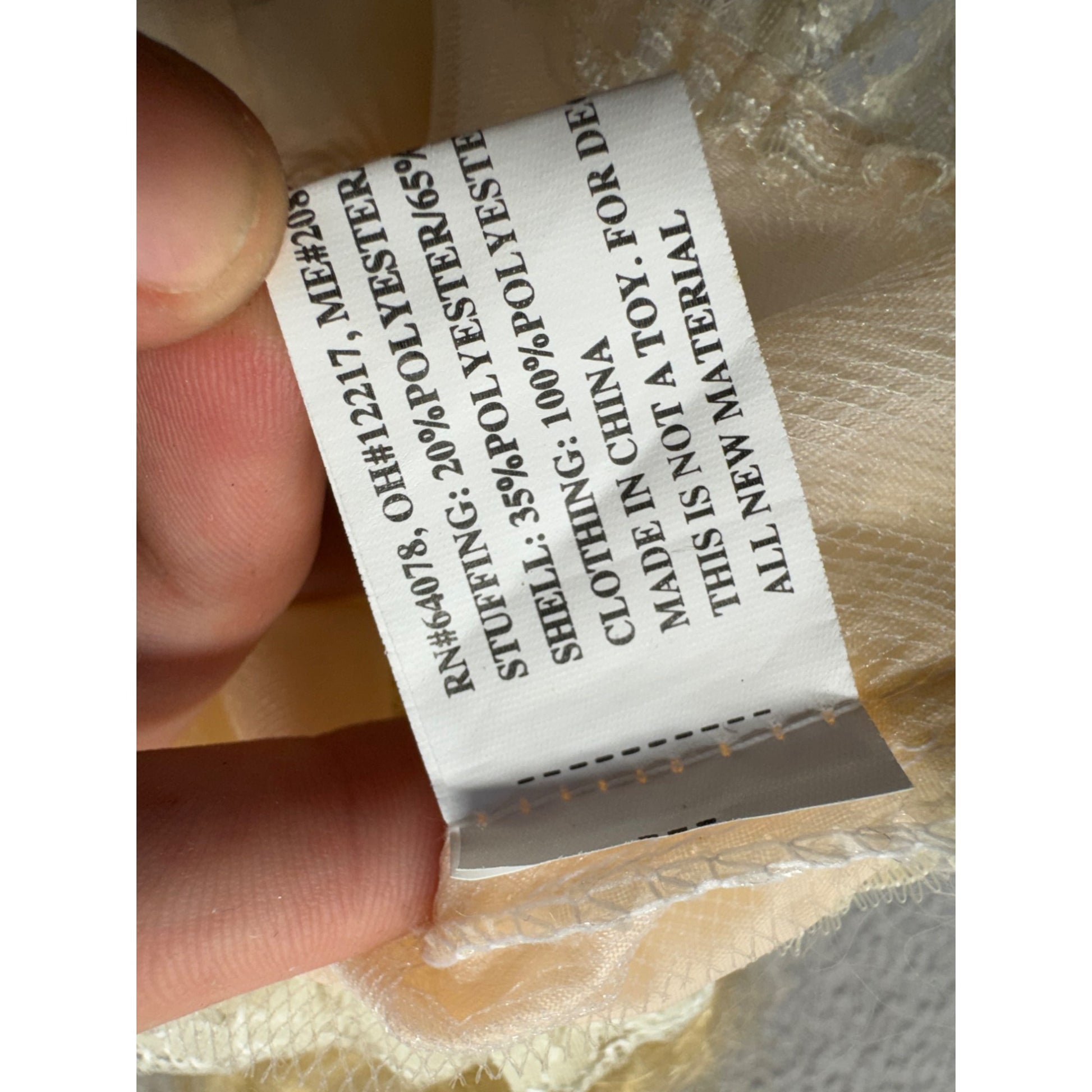Small brown stains on the lace dress. Measurements: height = 10 inches.