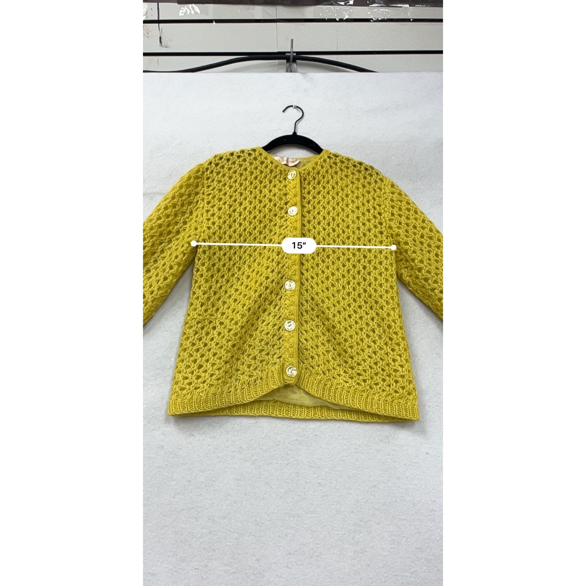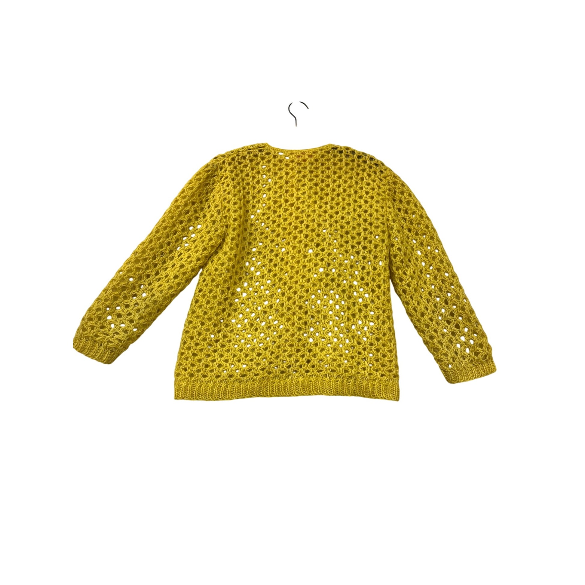 Vintage Saks Fifth Avenue Hand-Knit Yellow Open Weave Button Cardigan Sweater Size Medium #67A