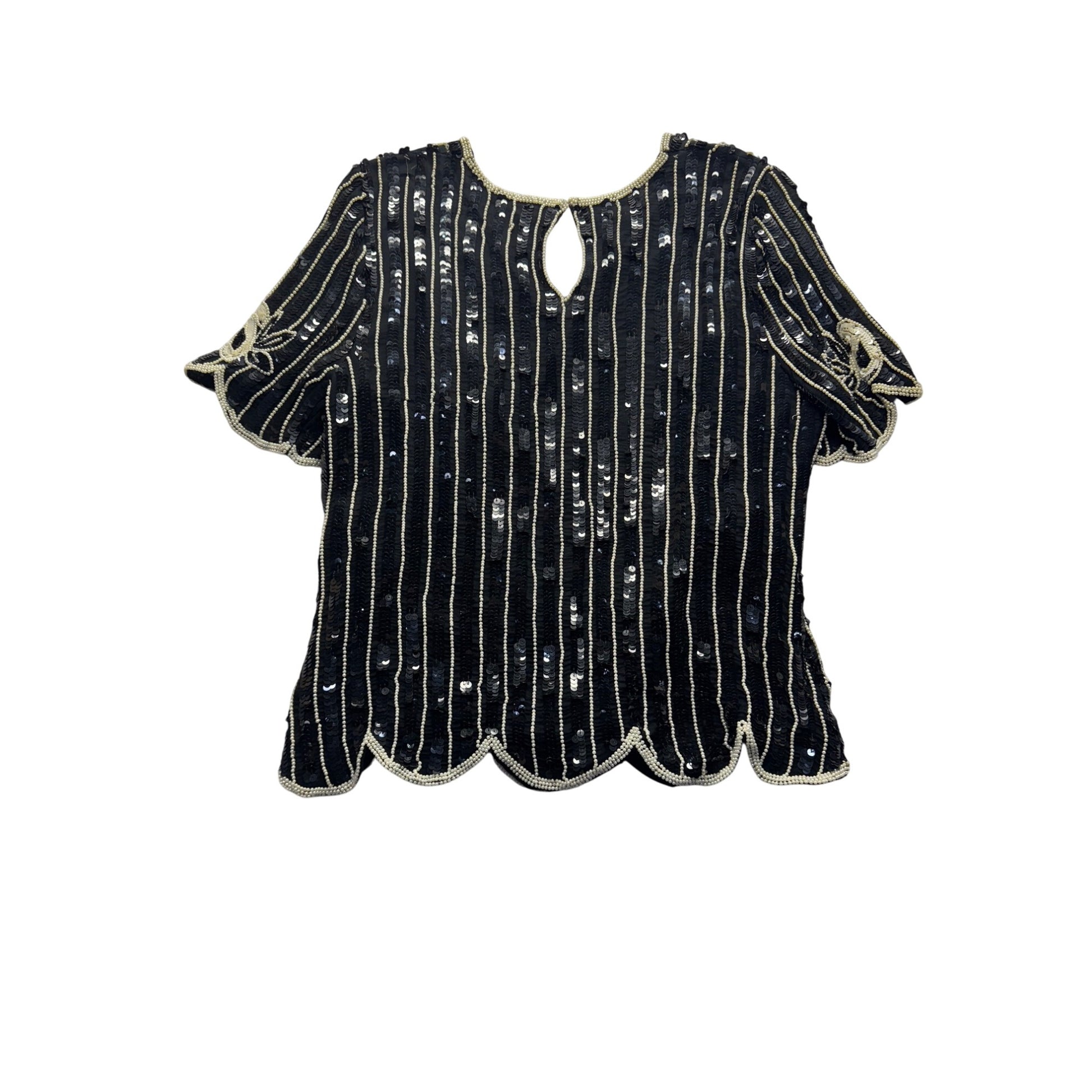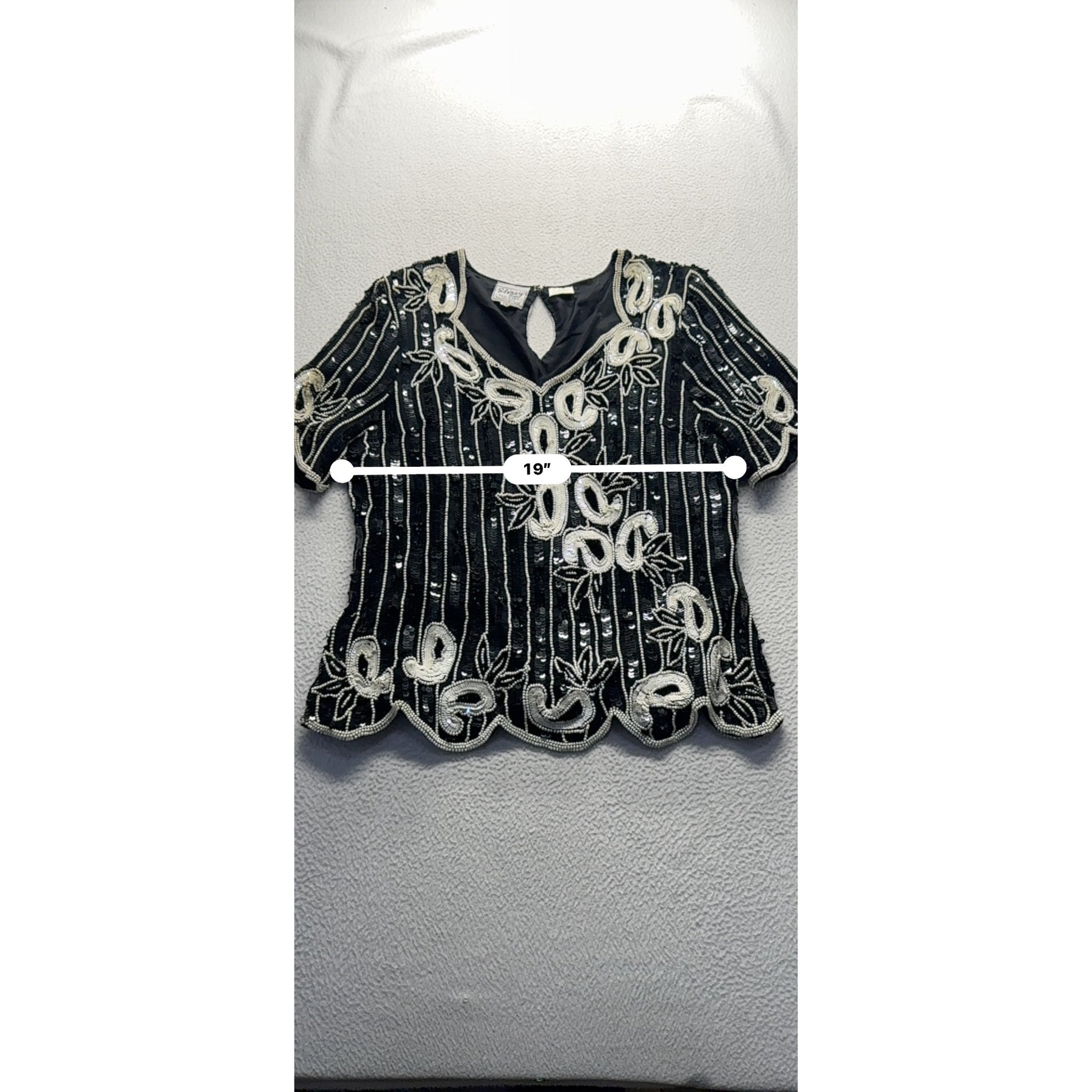 Vintage Stenay Black & Silver Sequin Embroidered Top Silk & Polyester #7961