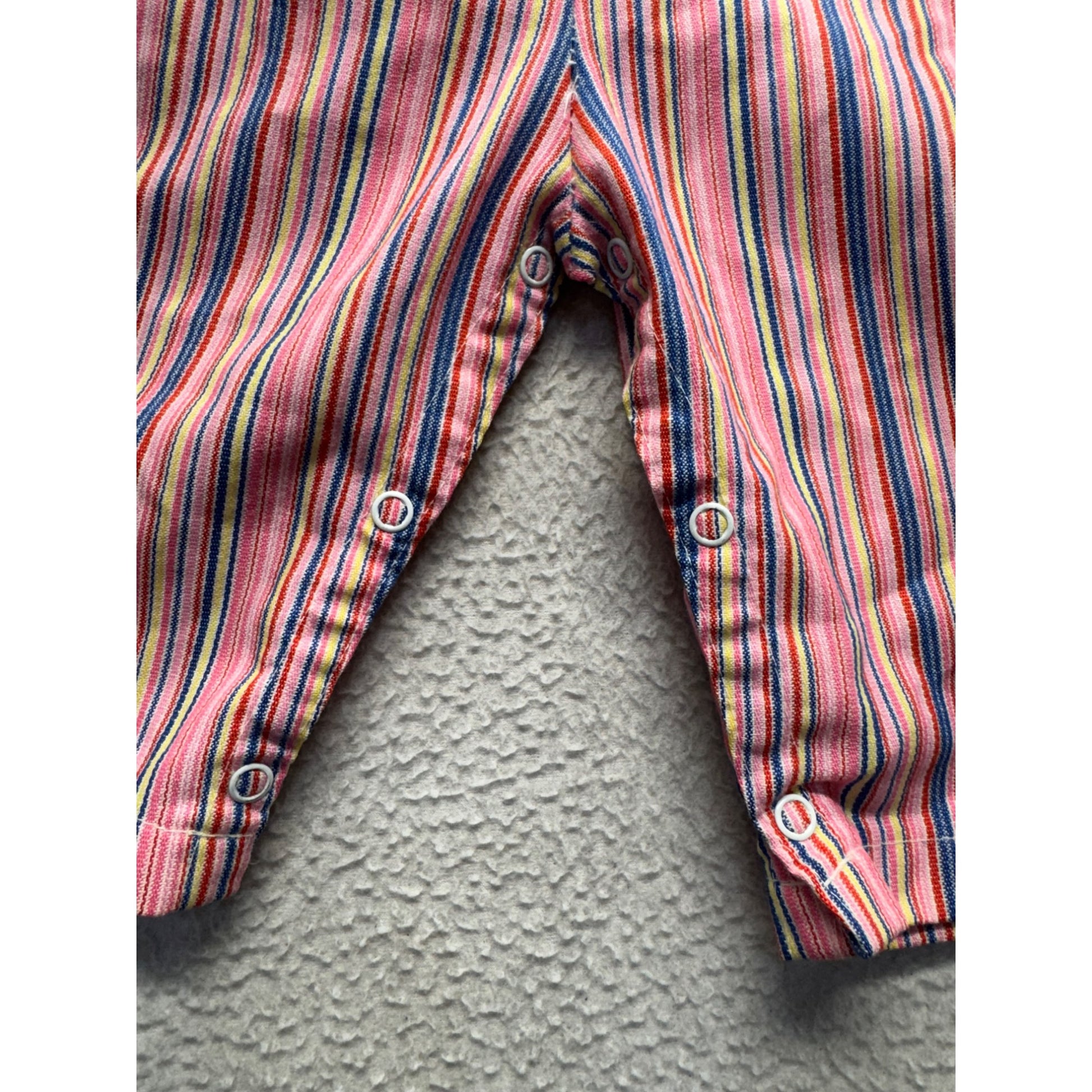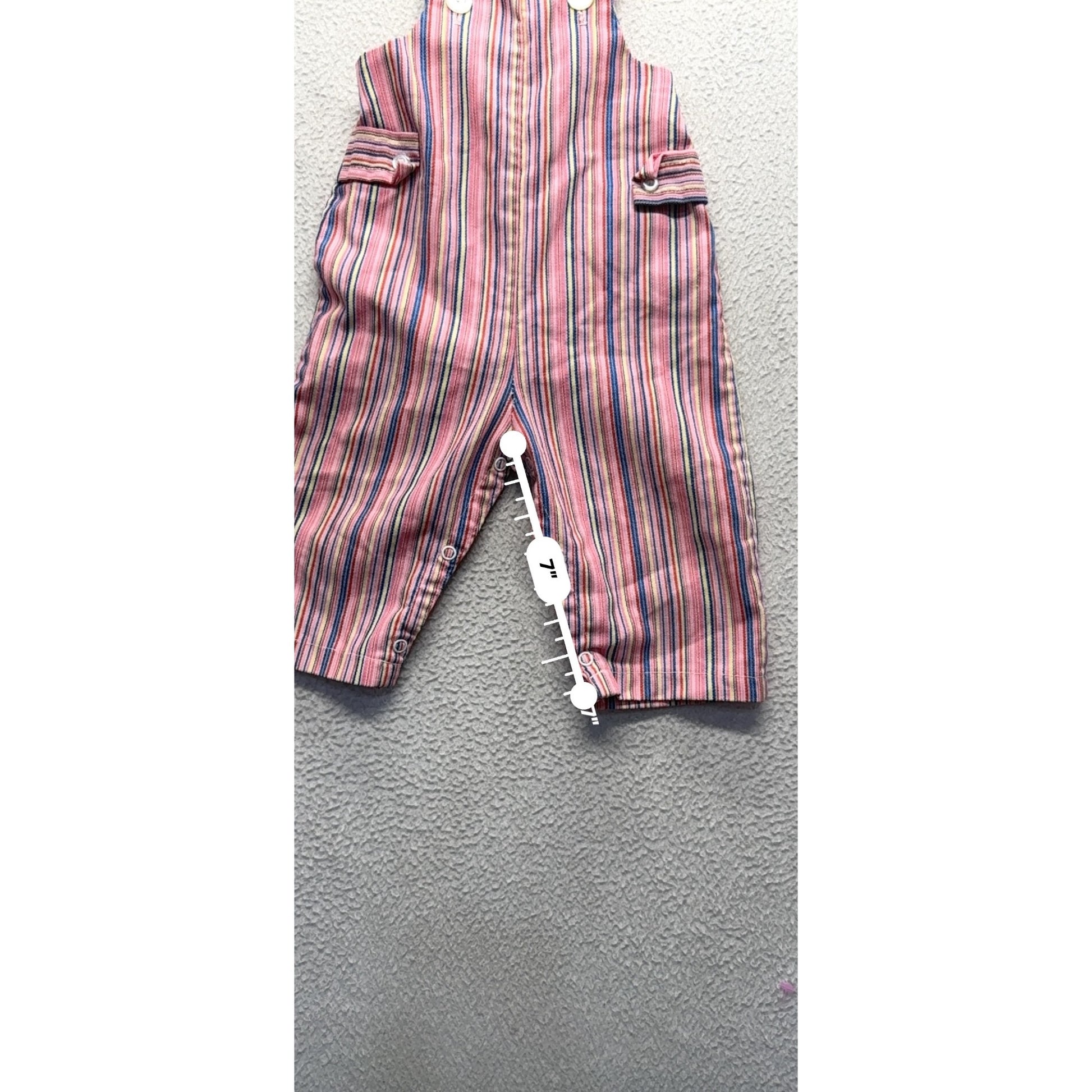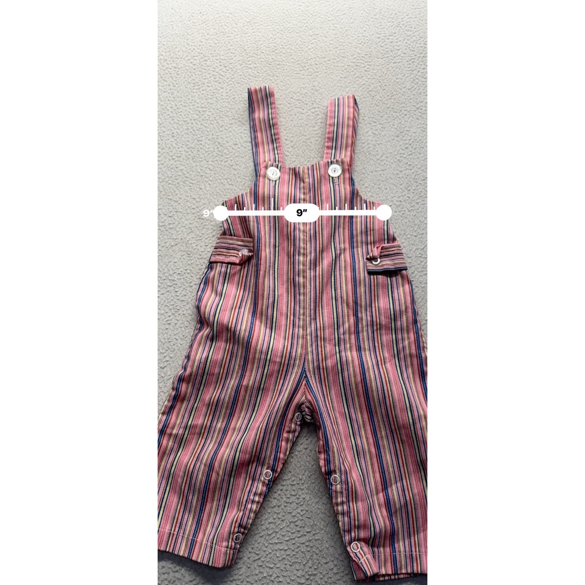 These vintage striped baby overalls combine classic style with practicality. Crafted from a cotton blend, they feature convenient button closures for easy dressing and vibrant stripes that add a playful touch. Ideal for casual wear, these overalls are both comfortable and durable, making them a charming addition to any little one's wardrobe.