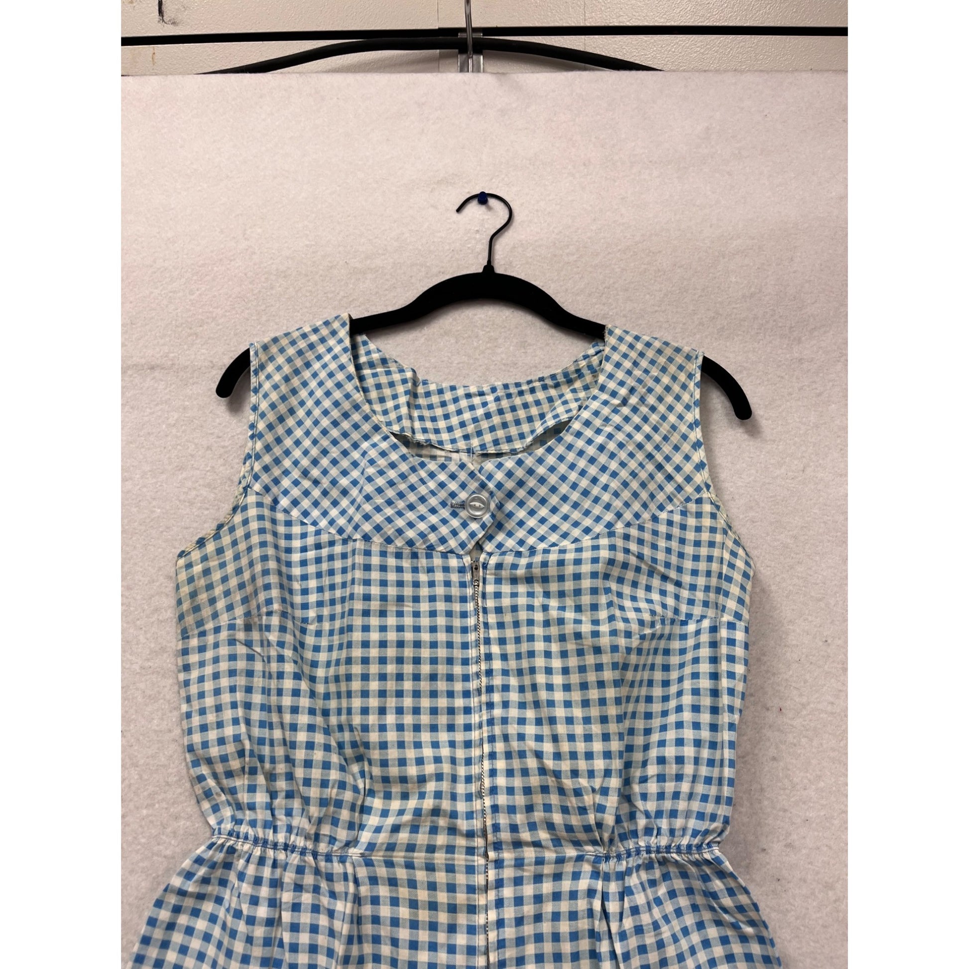 Vintage-Style Blue & White Gingham Sleeveless Romper #638A