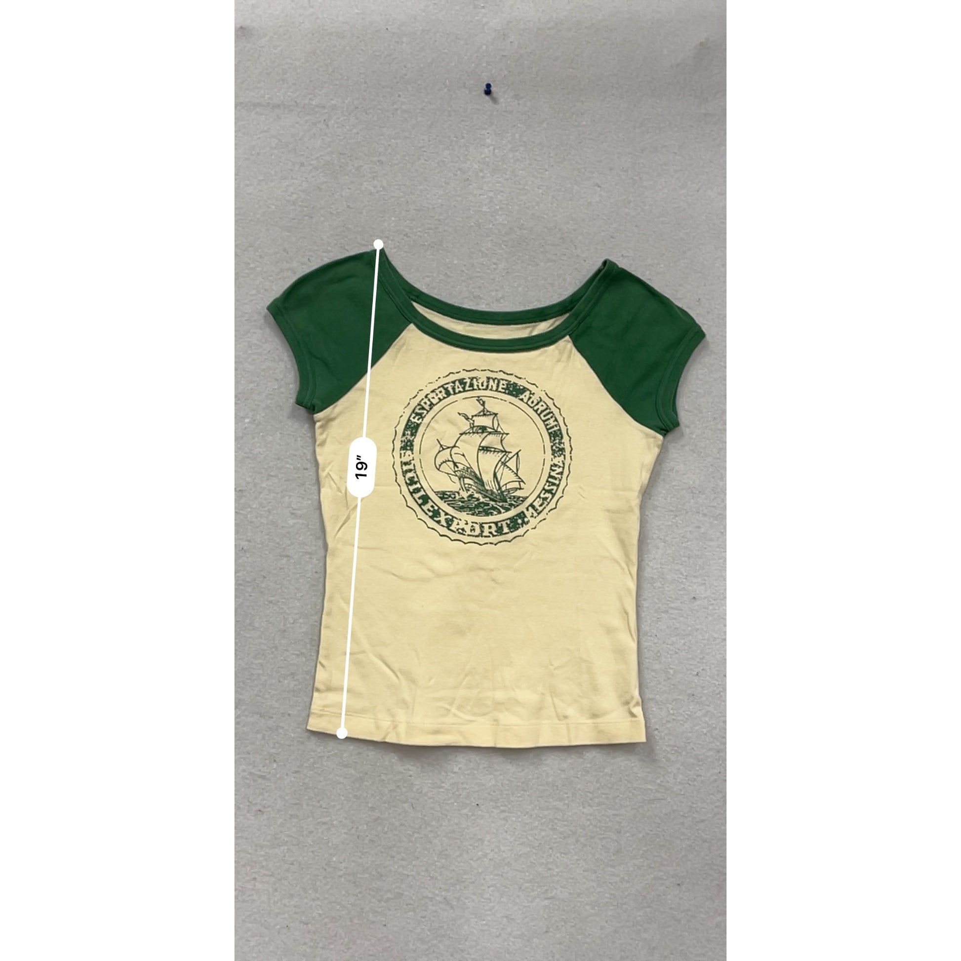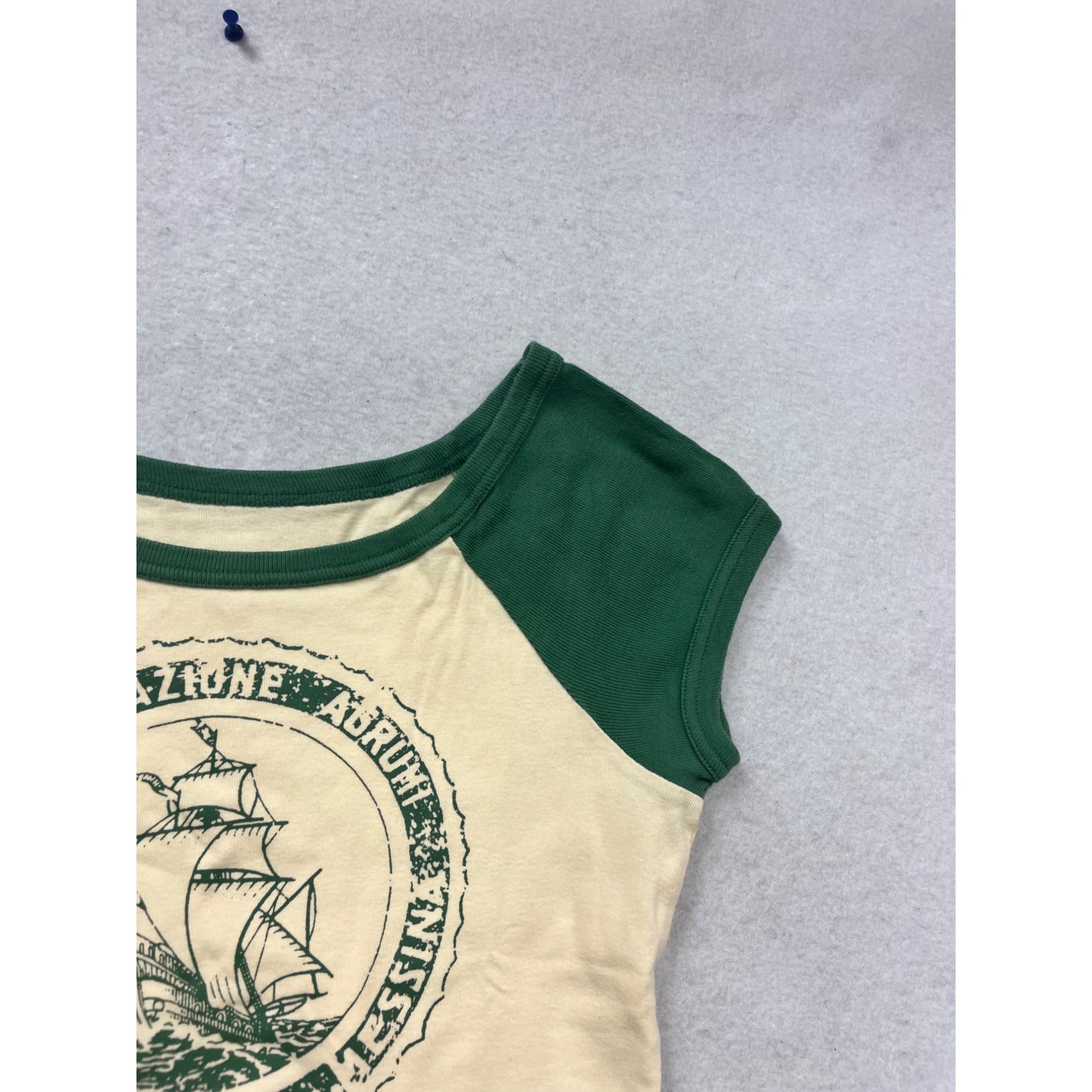 This vintage-style t-shirt combines a classic graphic design of a ship with a timeless raglan sleeve cut, offering a relaxed yet stylish fit. The soft cotton material ensures comfort, making it a versatile piece suitable for casual wear.