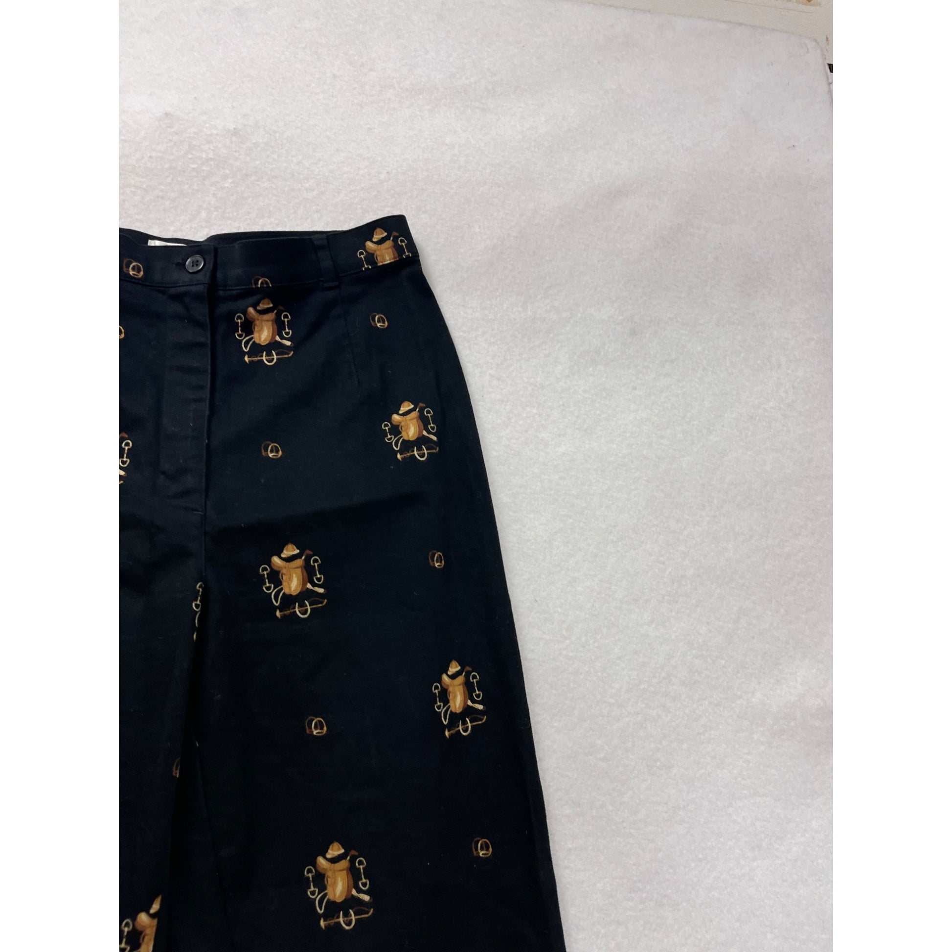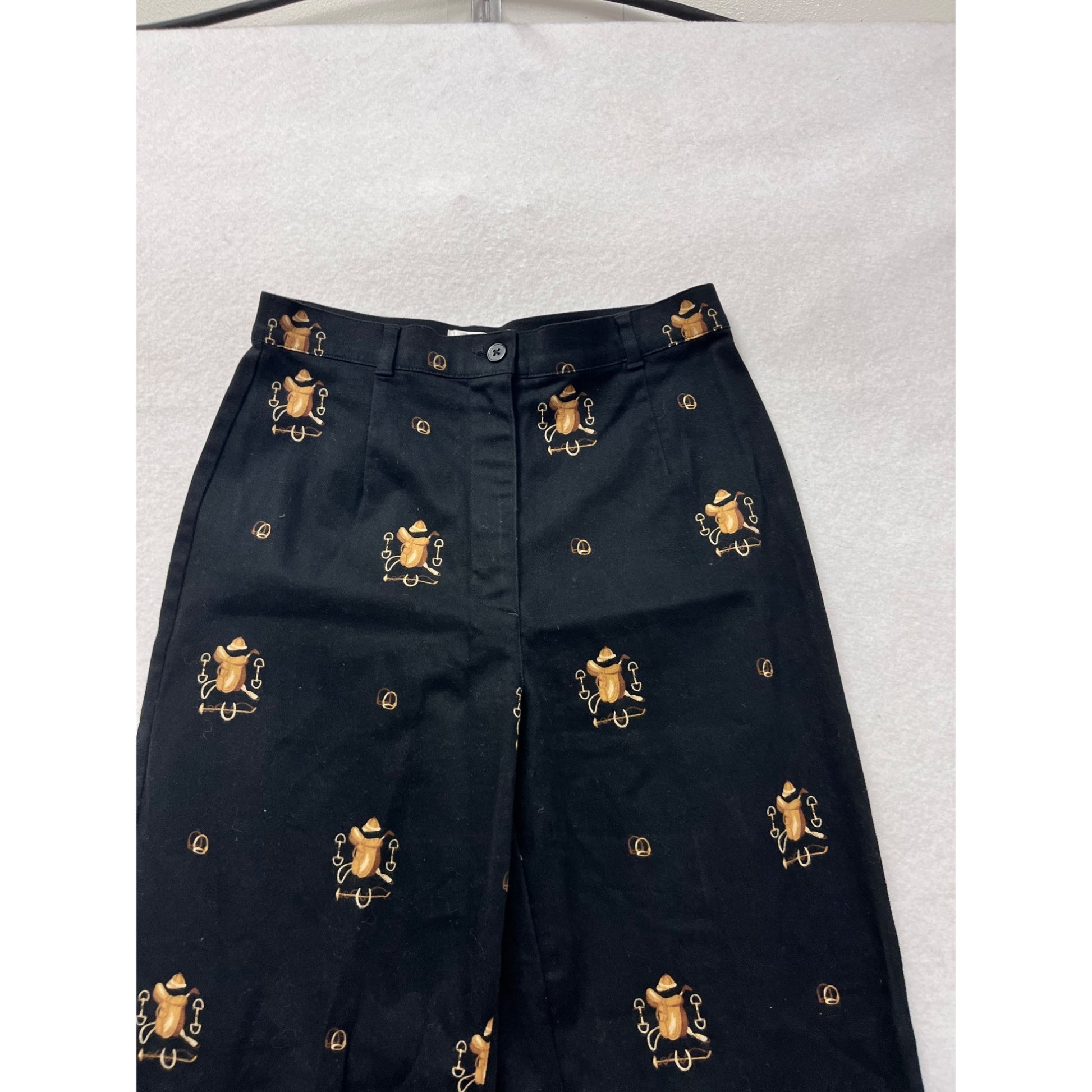 Vintage Talbots Womens Black Pants With Gold Bug & Hat Pattern Stretch Fabric Size 6 #8081