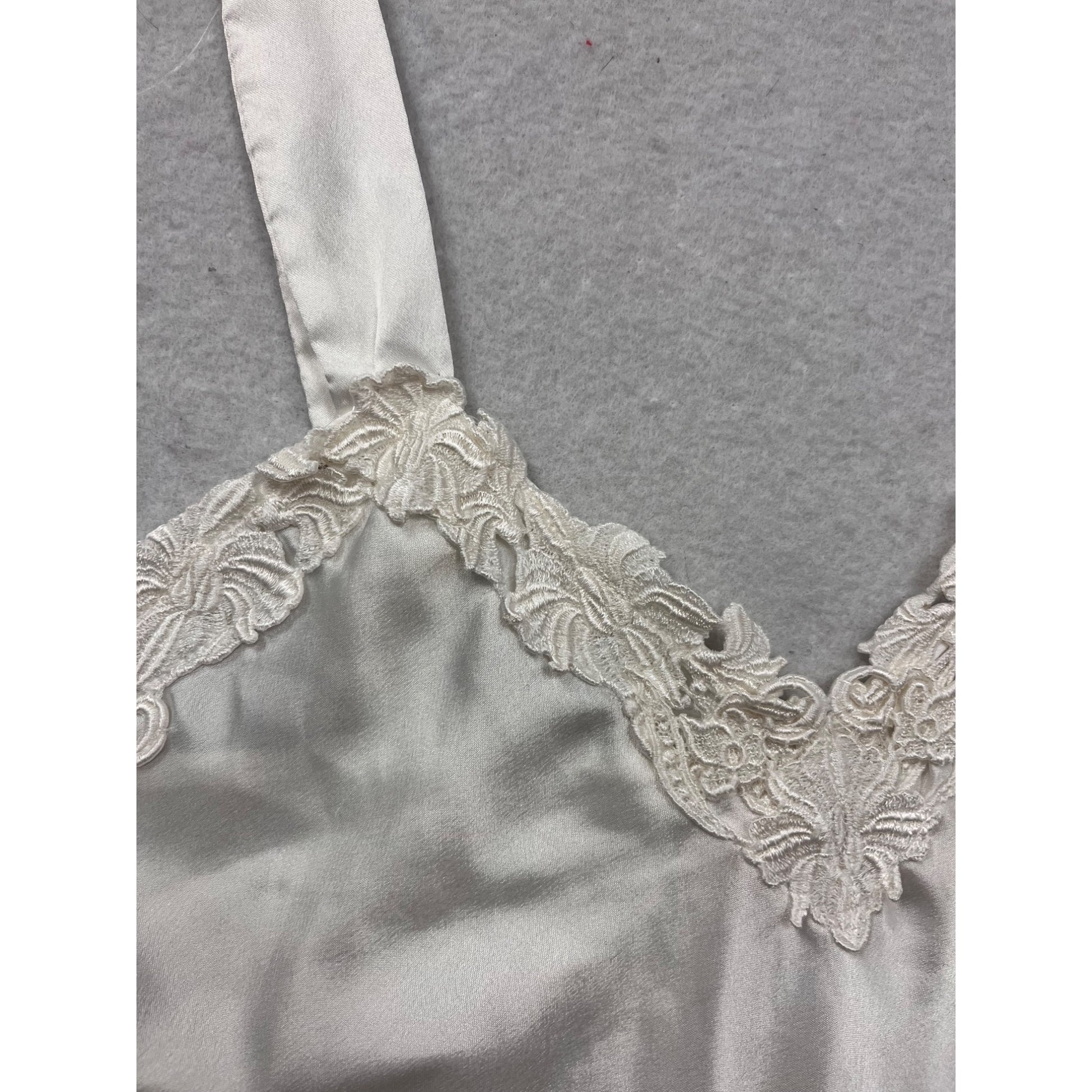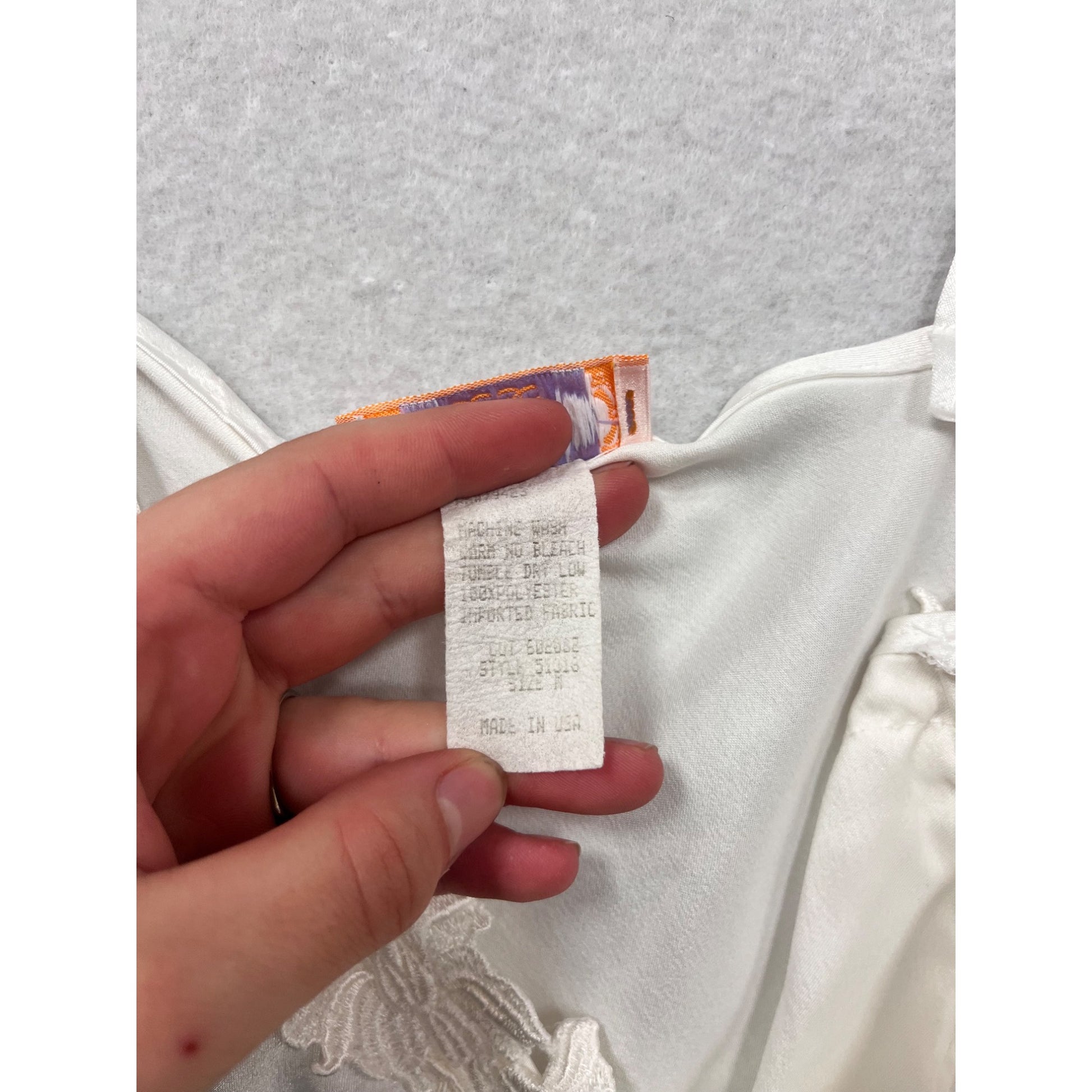 Vintage White Lace Trim Womens Slip Dress Medium #8263