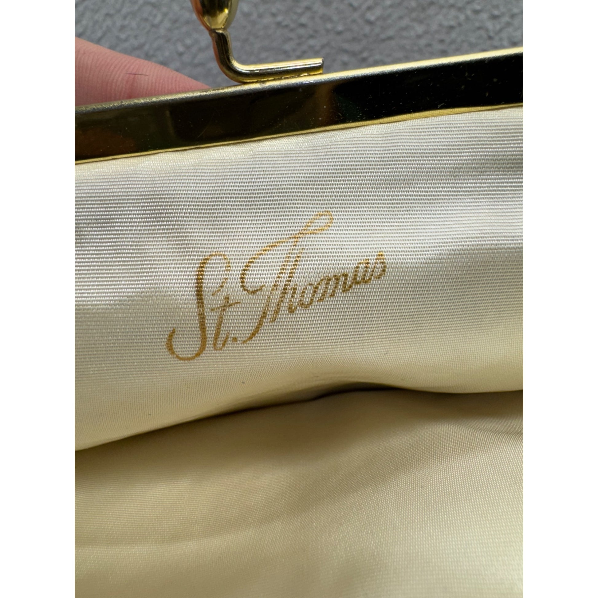 Vintage White Leather Coin Purse With Floral Embroidery 42B