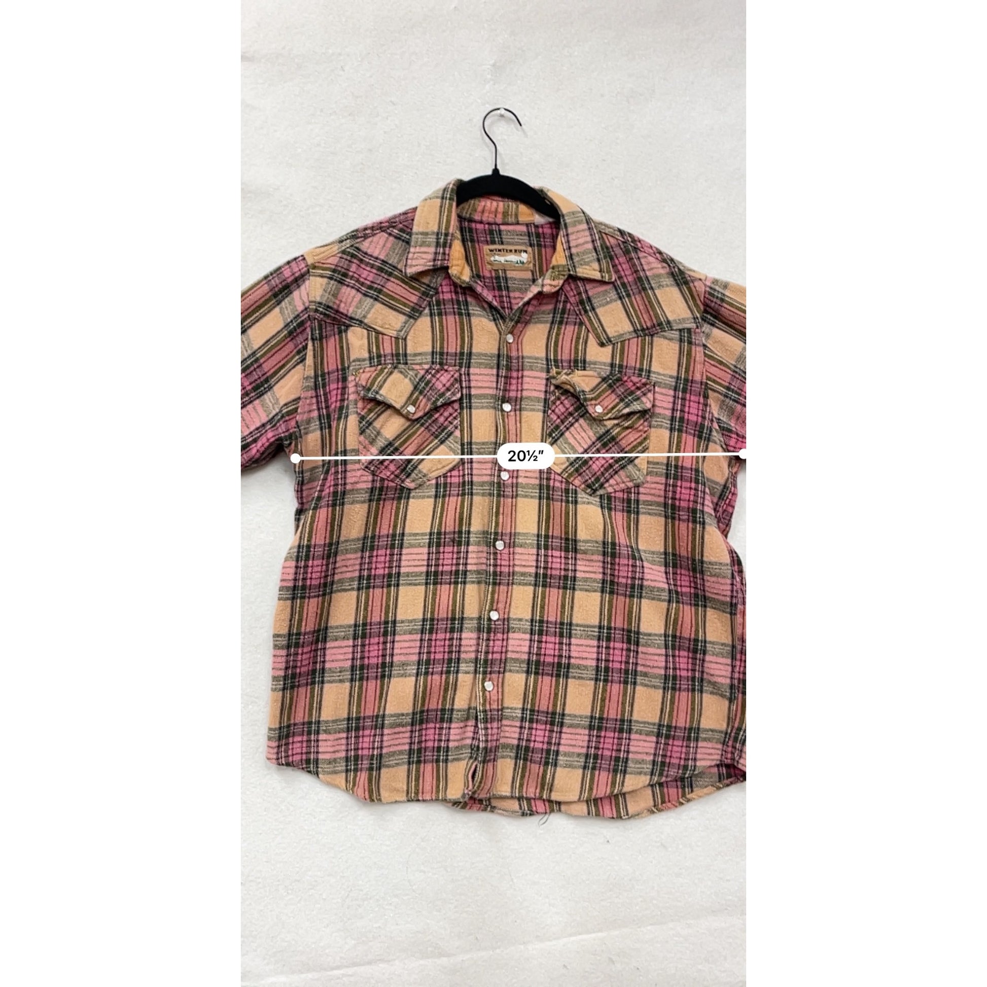 Vintage Winter Run Womens XL Plaid Button-Up Flannel Shirt Pink/Beige #8967