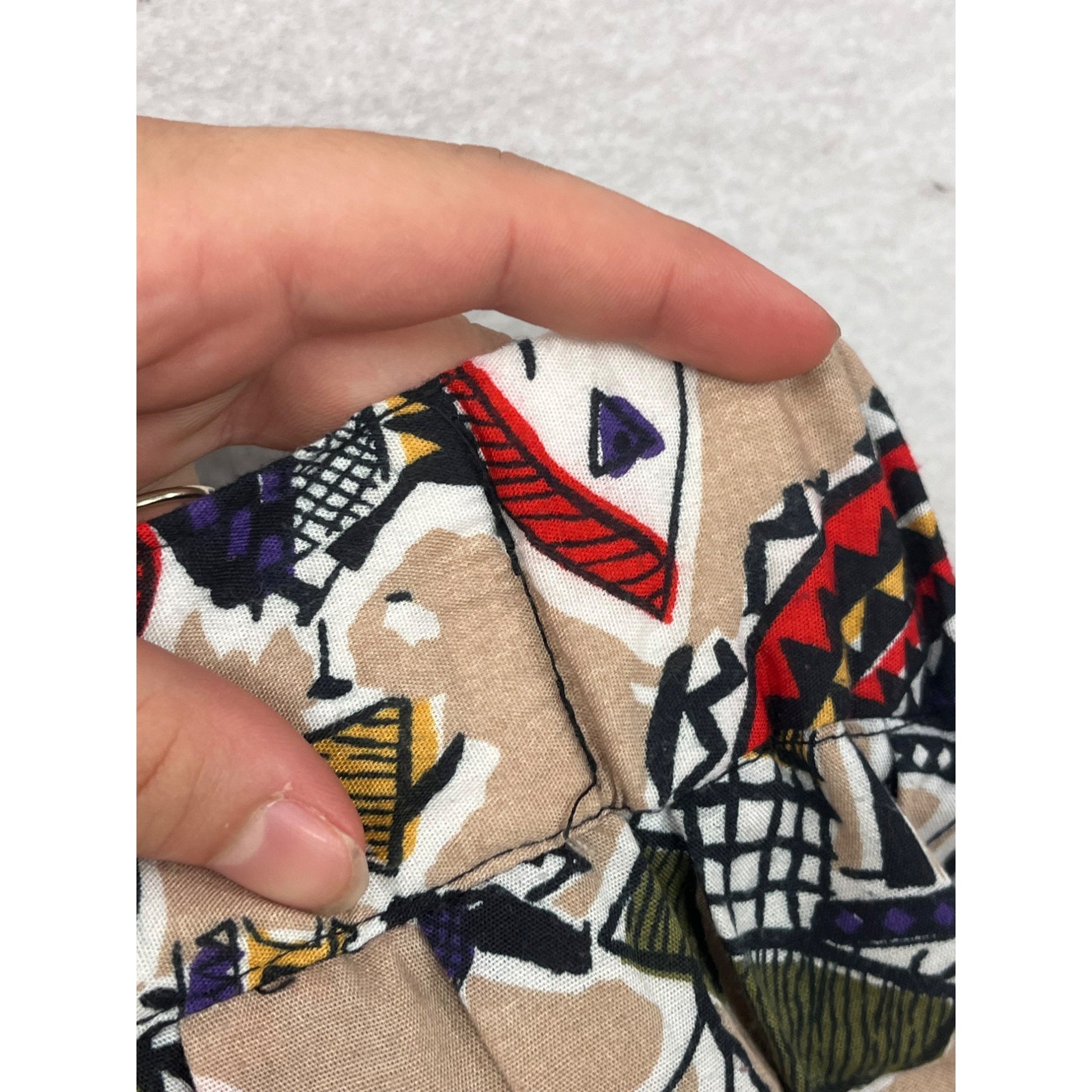 Celebrate retro flair with this vintage skirt, featuring a vibrant abstract print and a timeless high-waisted silhouette. Crafted with care from a polyester-rayon blend.