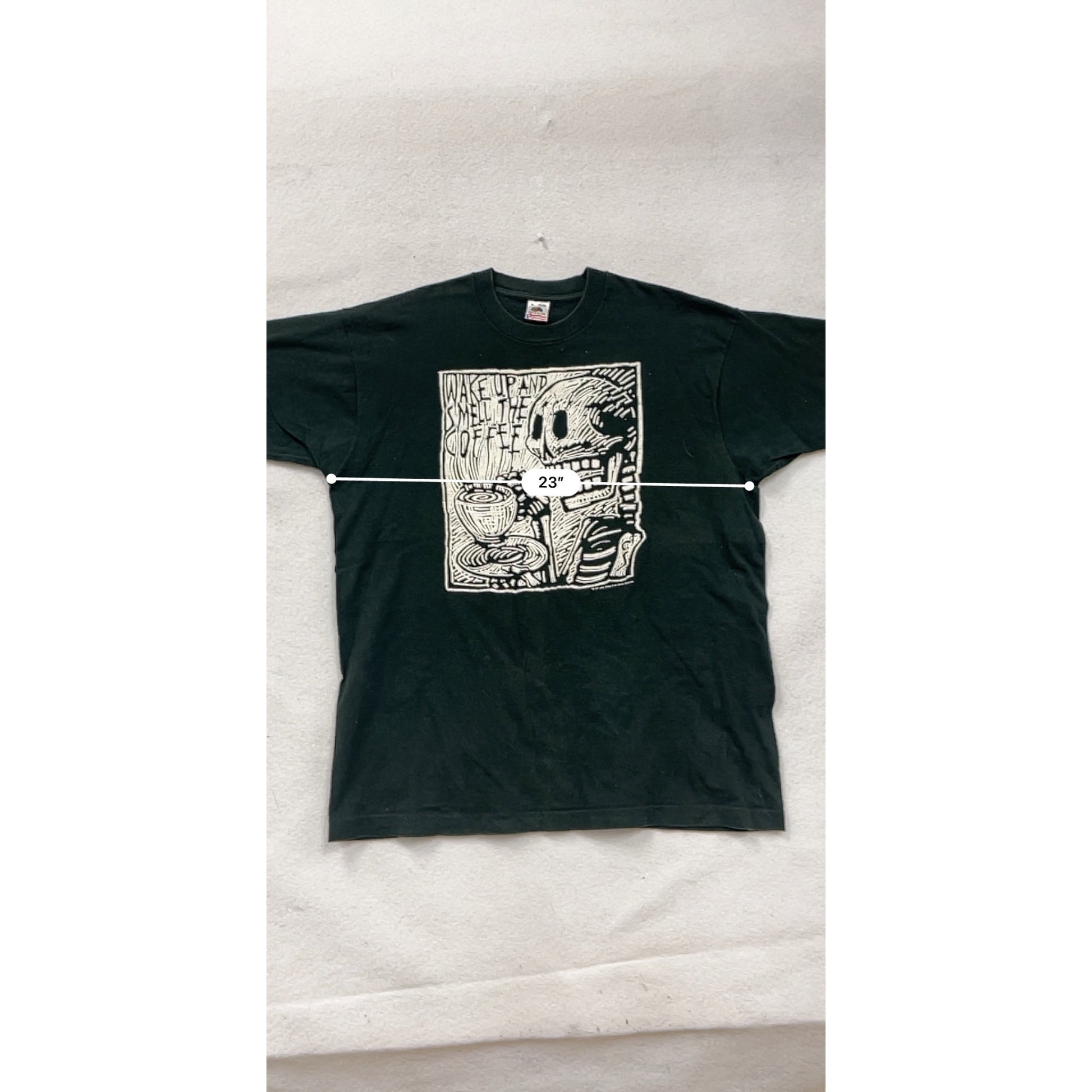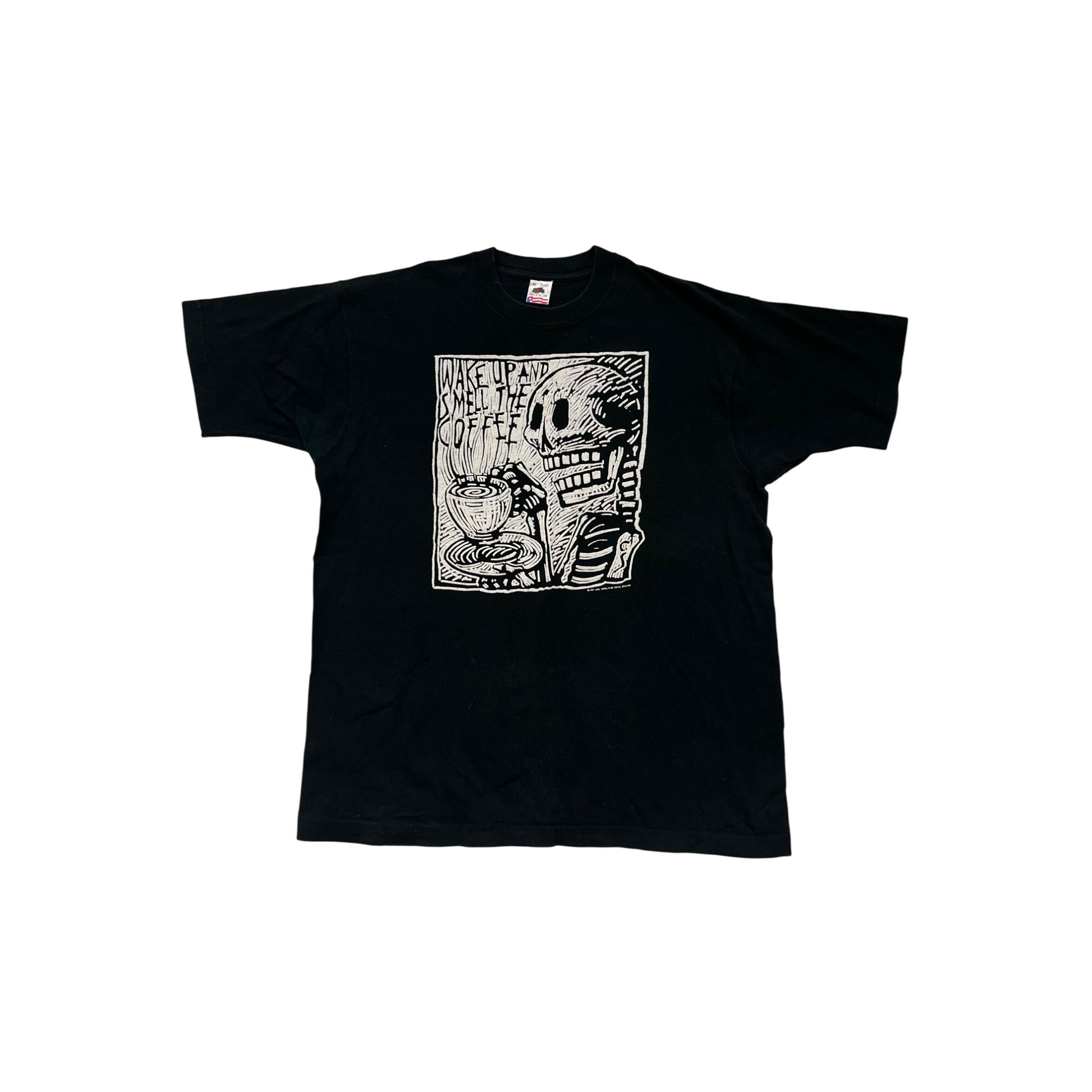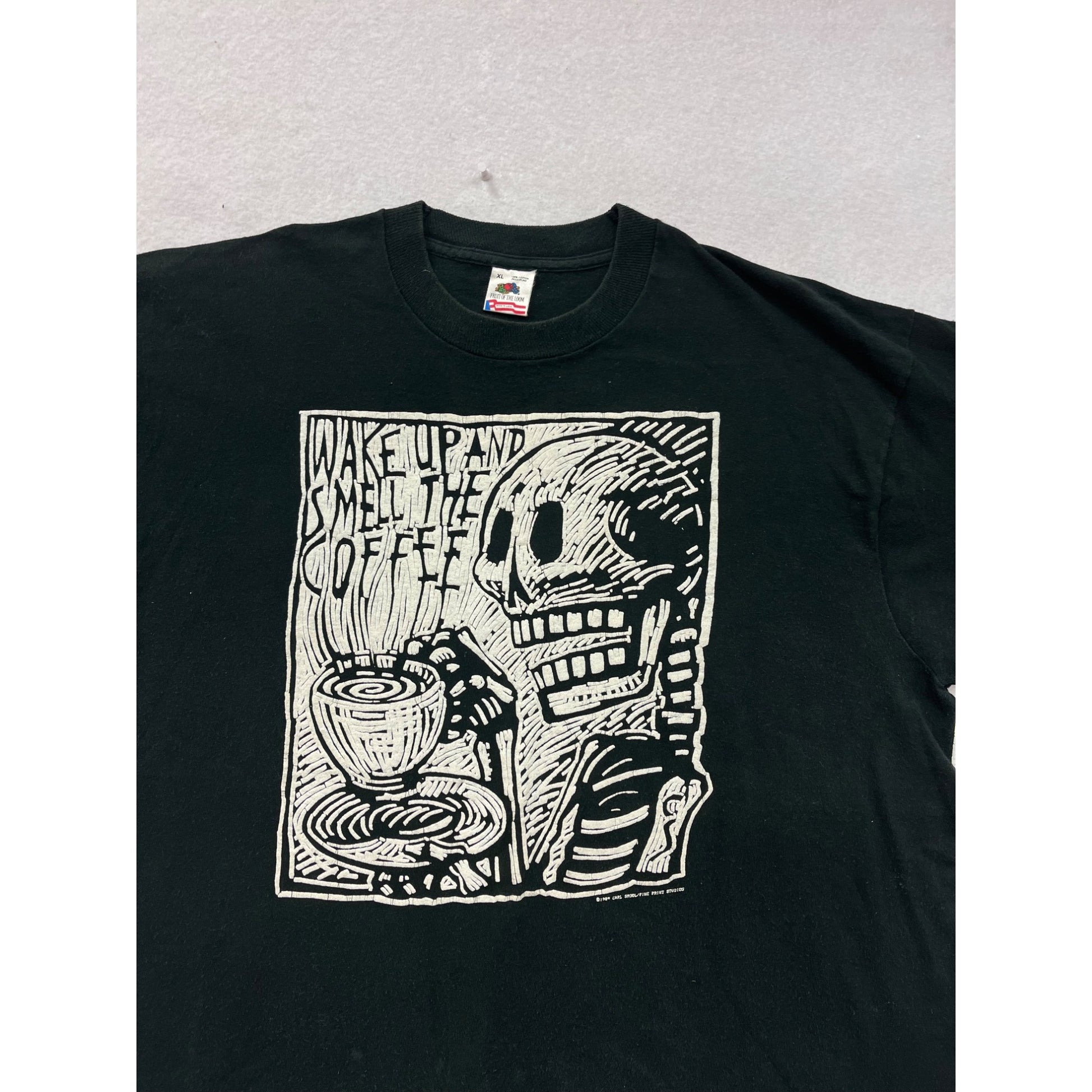 Vintage XL Black "Wake Up And Smell The Coffee" Graphic Tee #8422