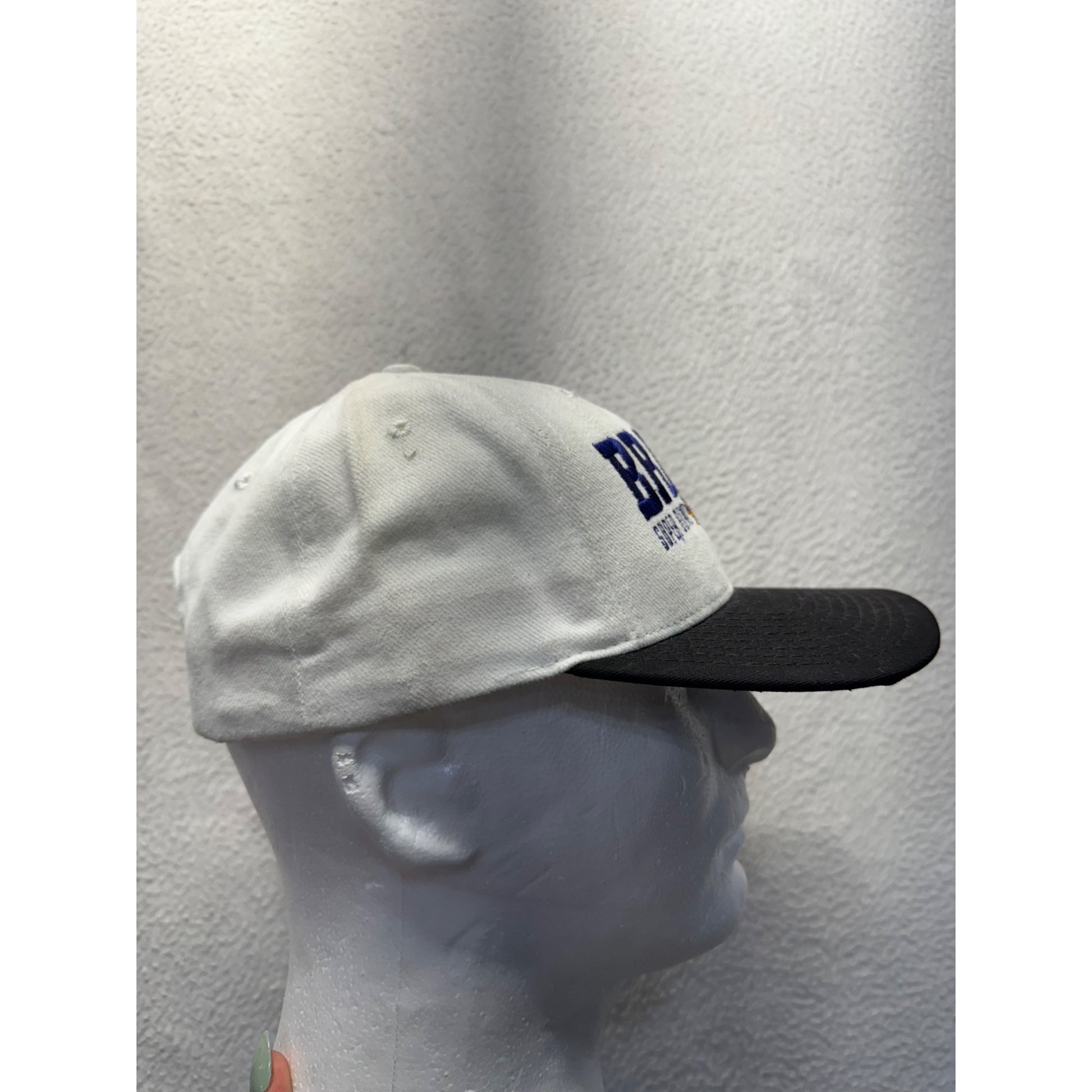 • Contrasting white crown and black brim design