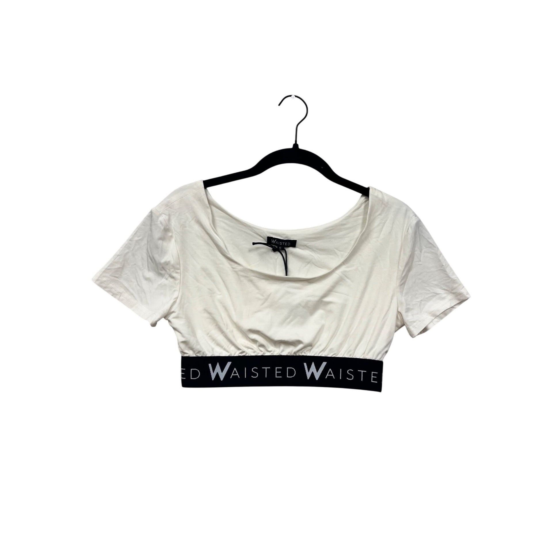 Waisted Womens Small White Crop Top With Black #78A