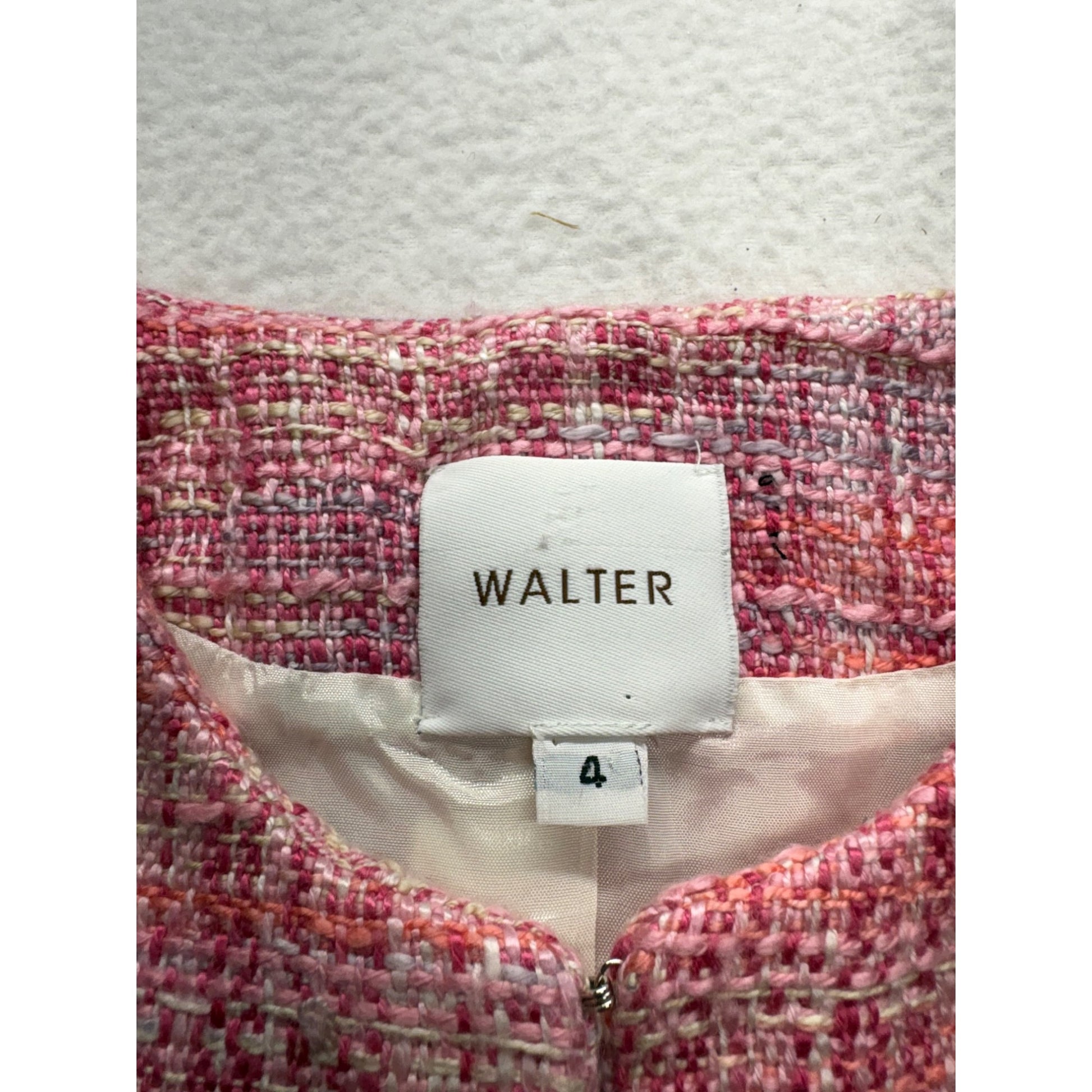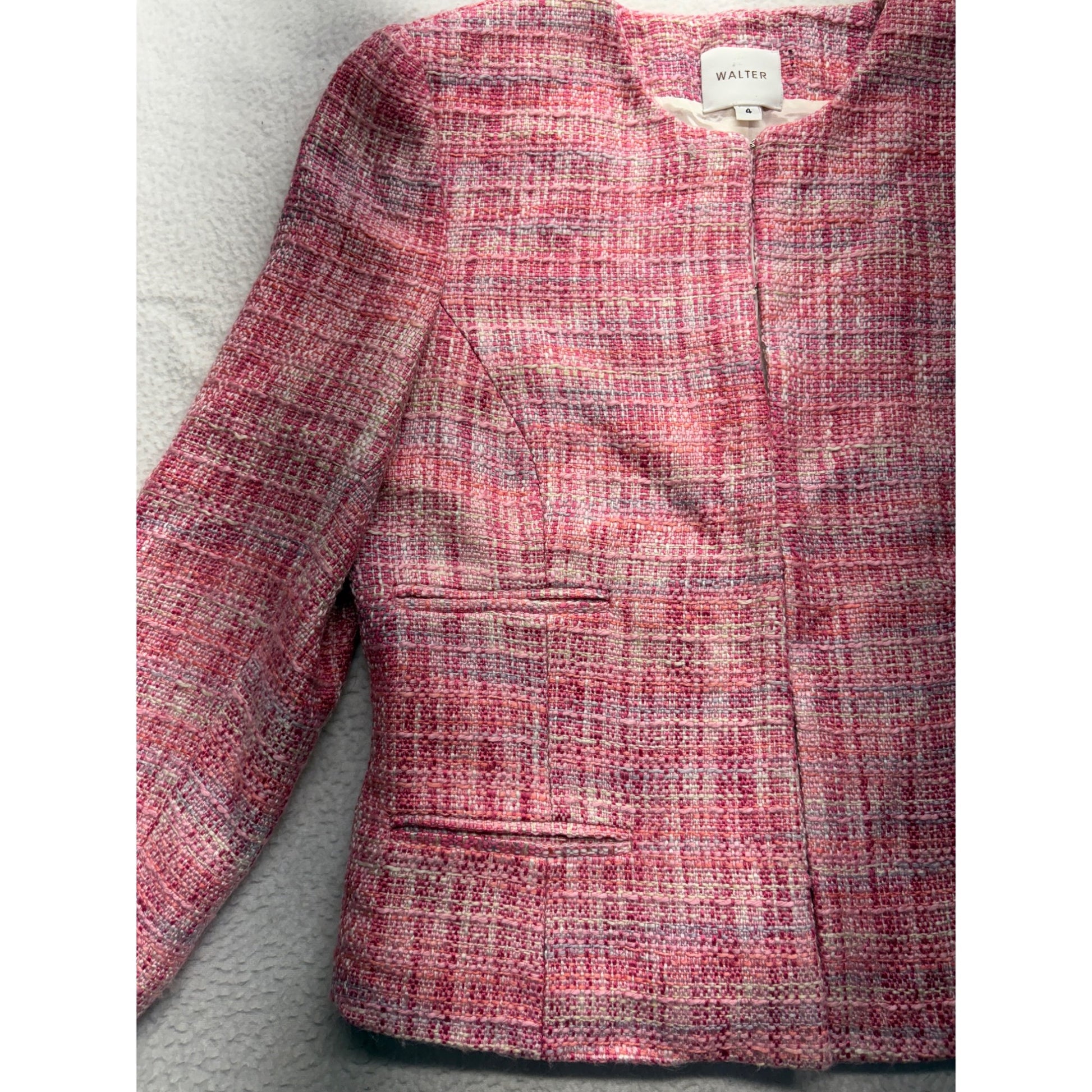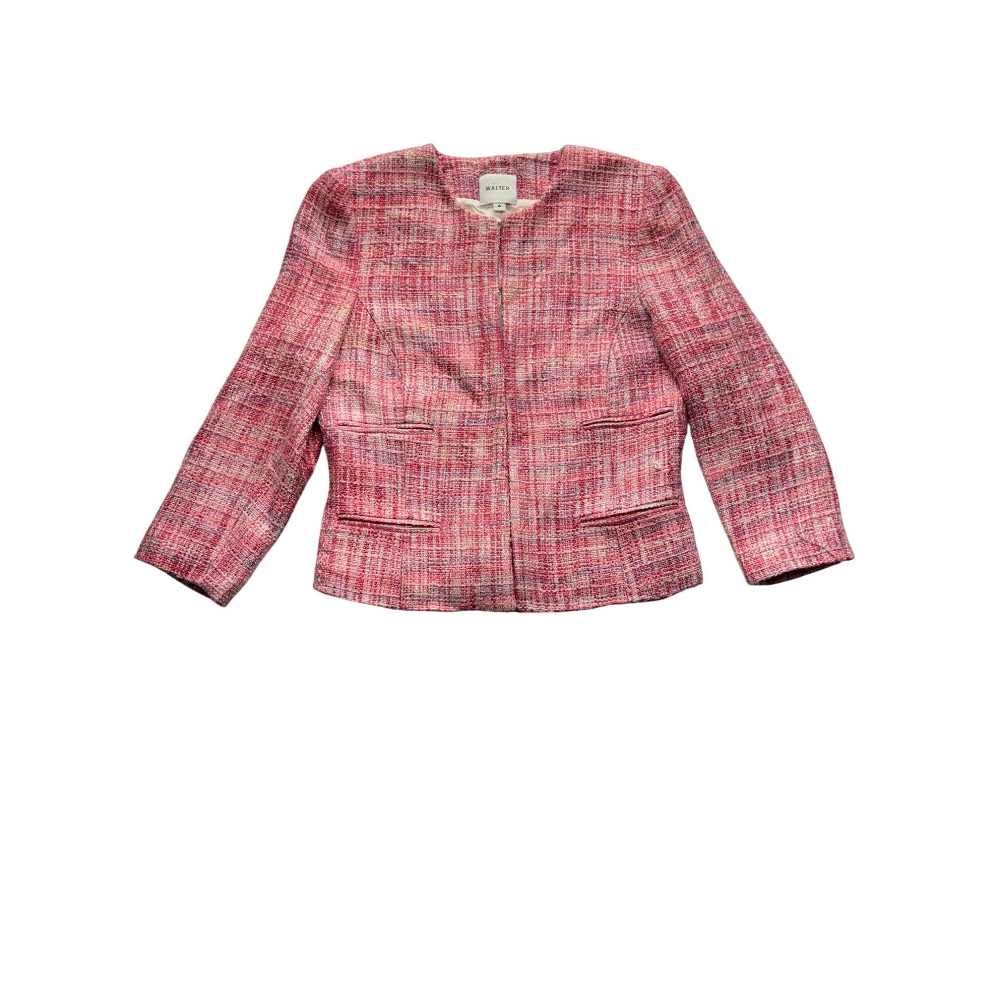 Walter Womens Tweed Blazer Pink Plaid Open Front #7682