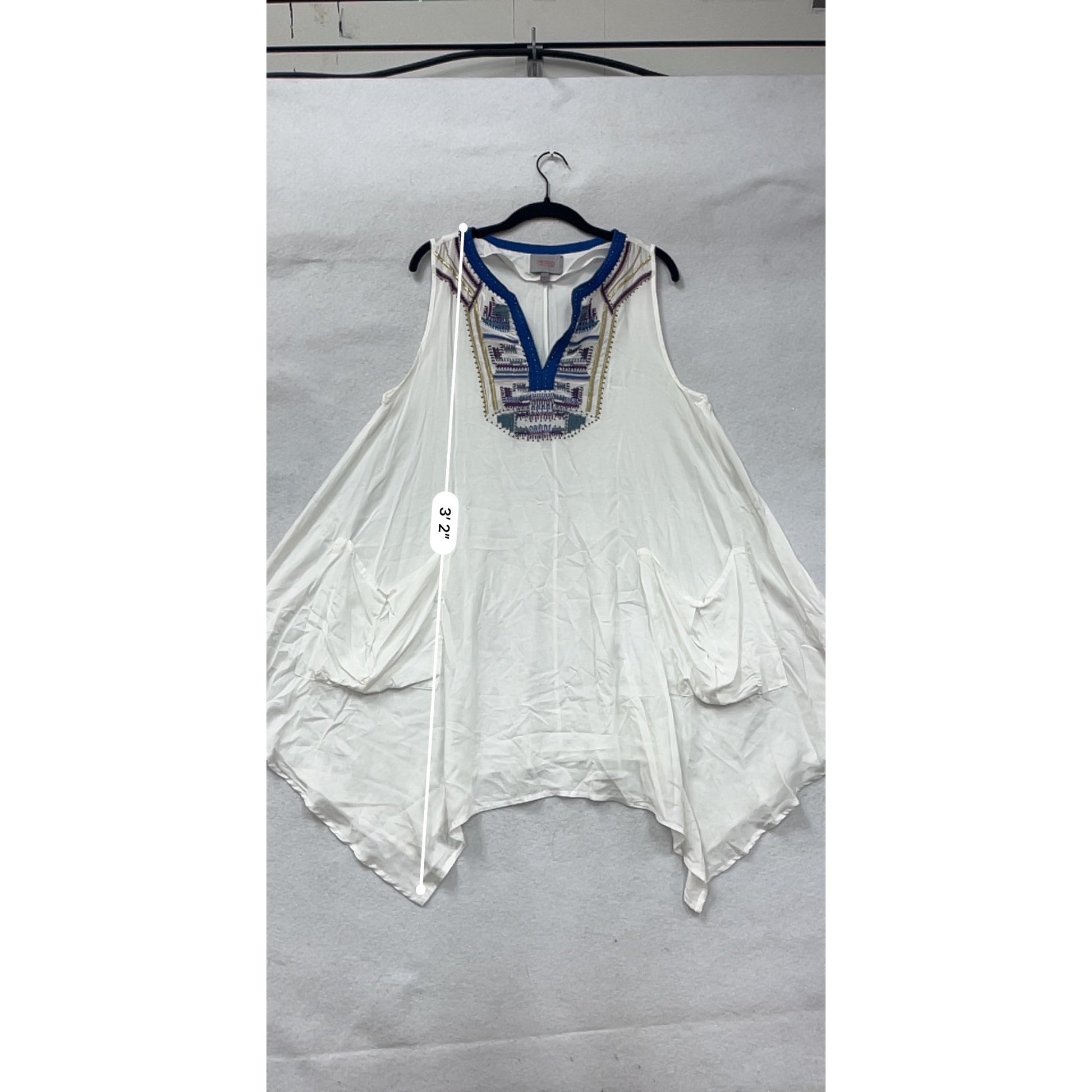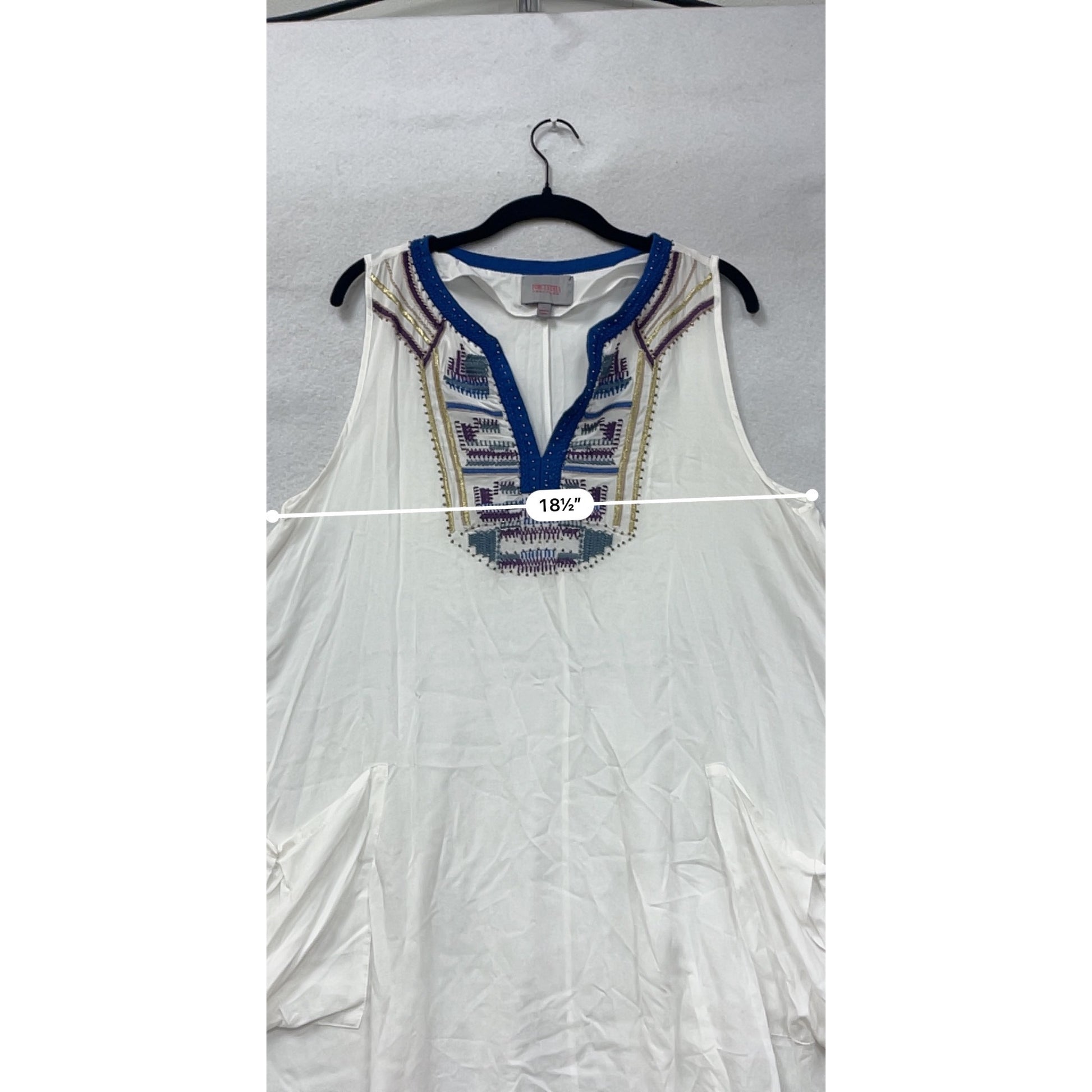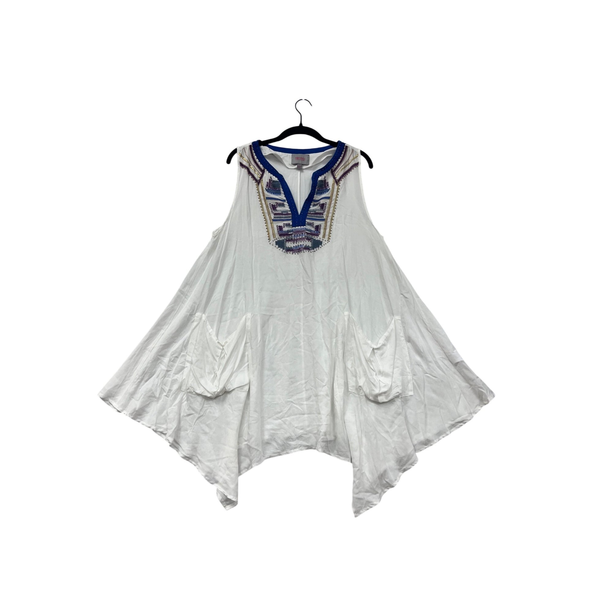 White Sleeveless Embroidered Beach Dress With Pockets #8720