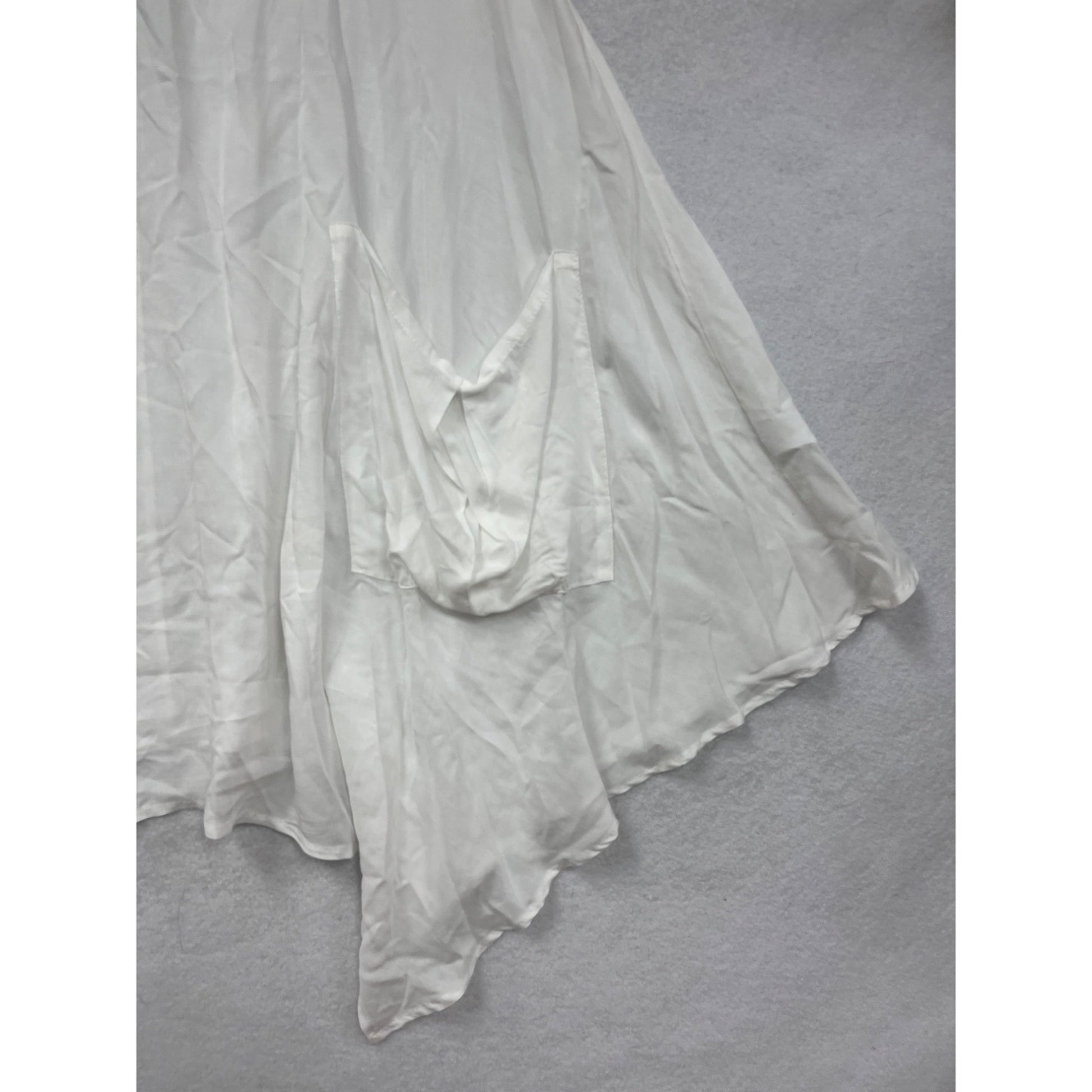 This lightweight embroidered dress features a flowy handkerchief hemline and practical pockets, making it an excellent choice for stylish beachwear.
