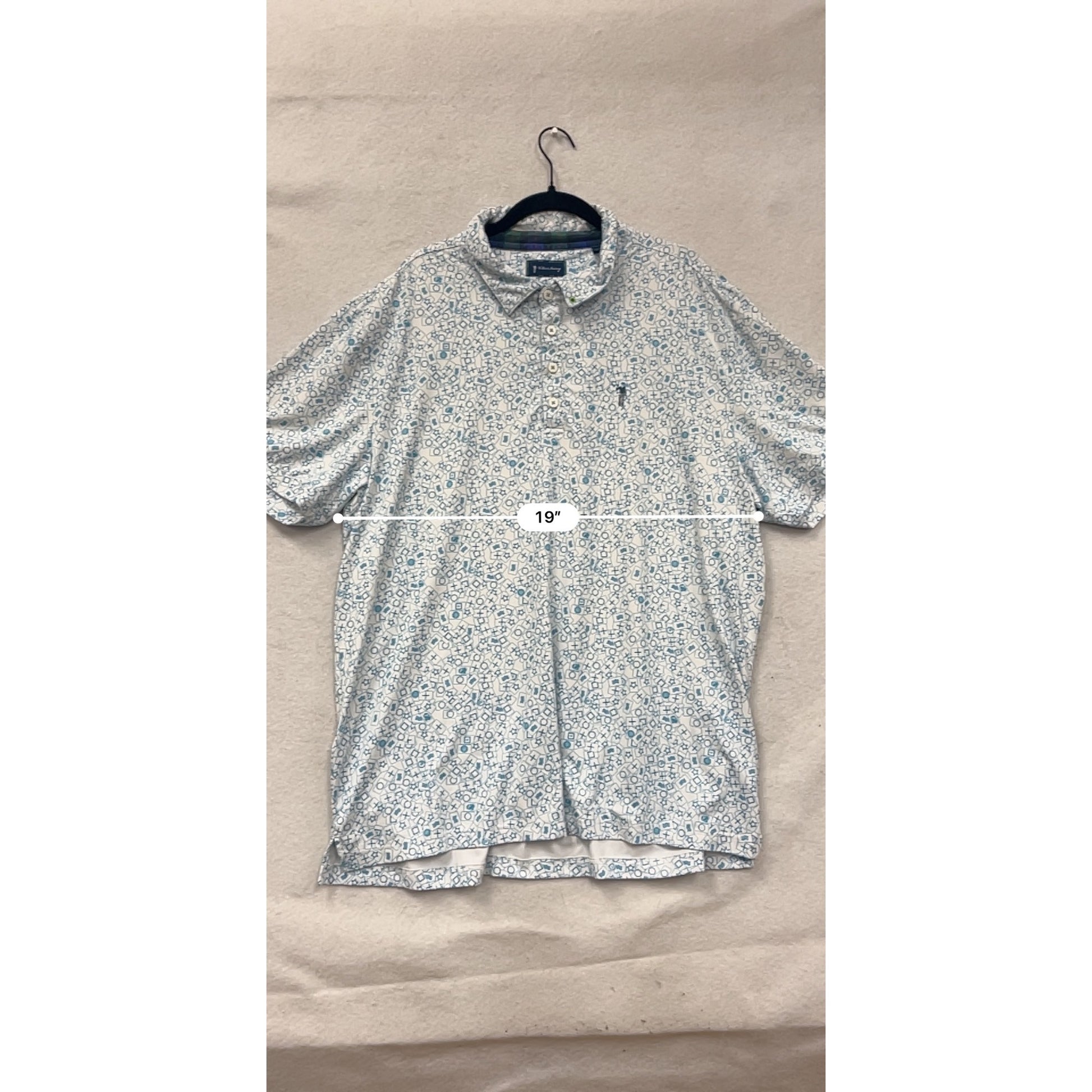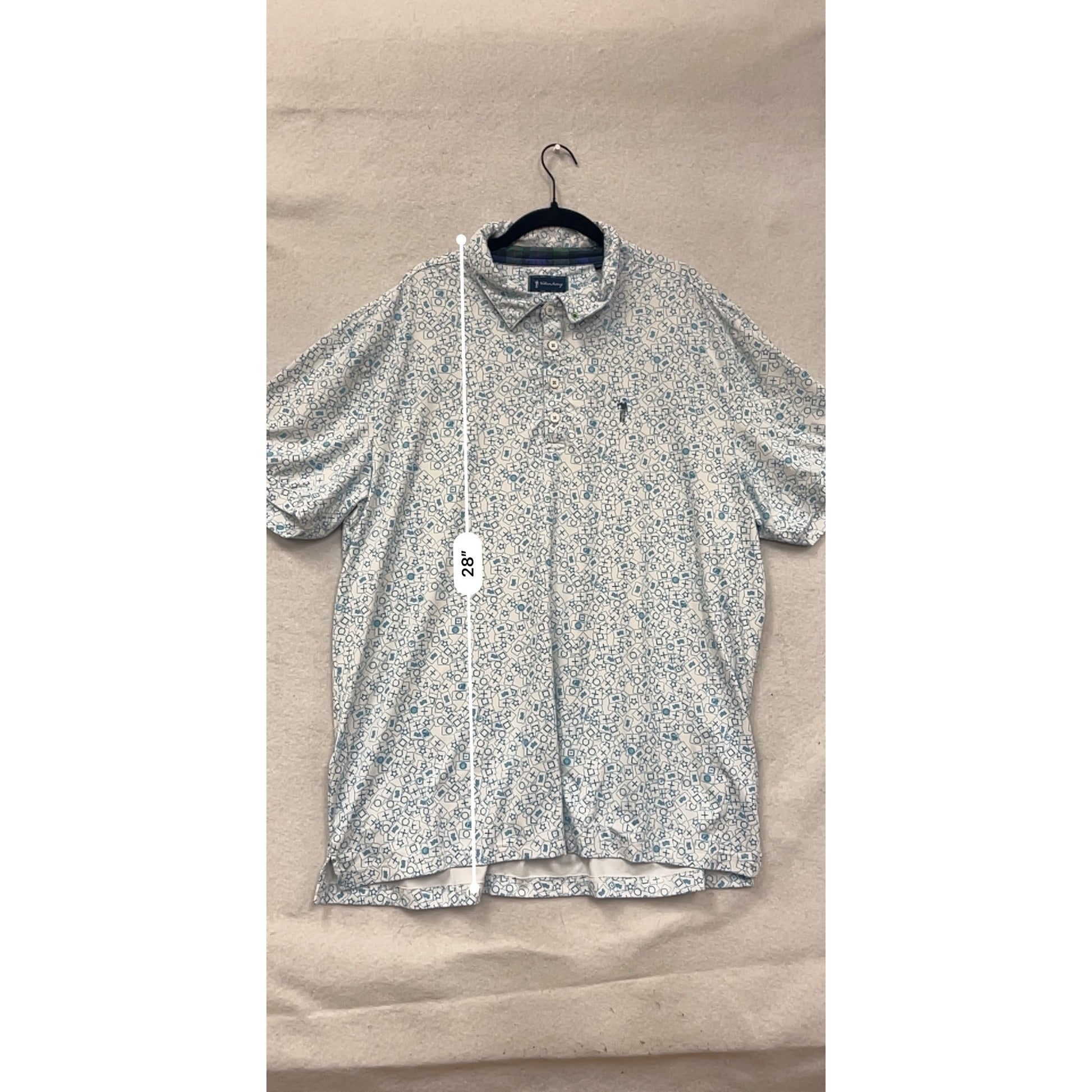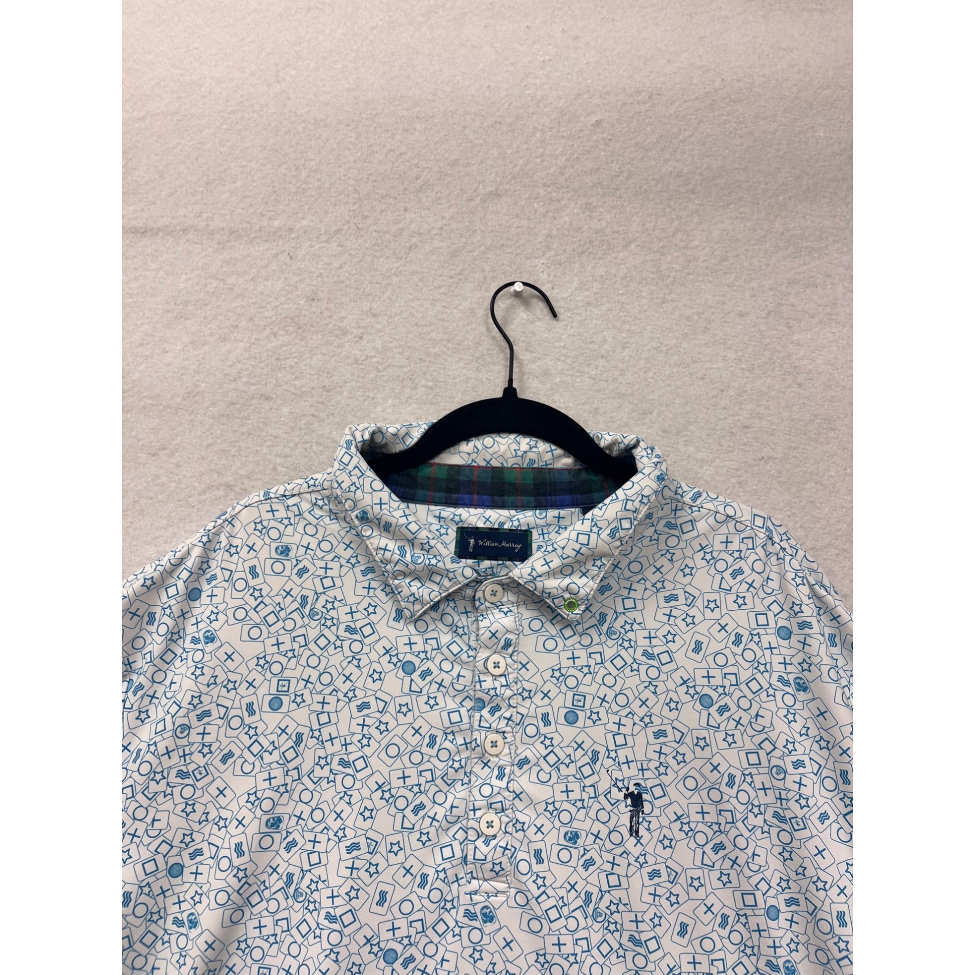 William Murray Mens XL Blue & White Geometric Print Polo Shirt #8872