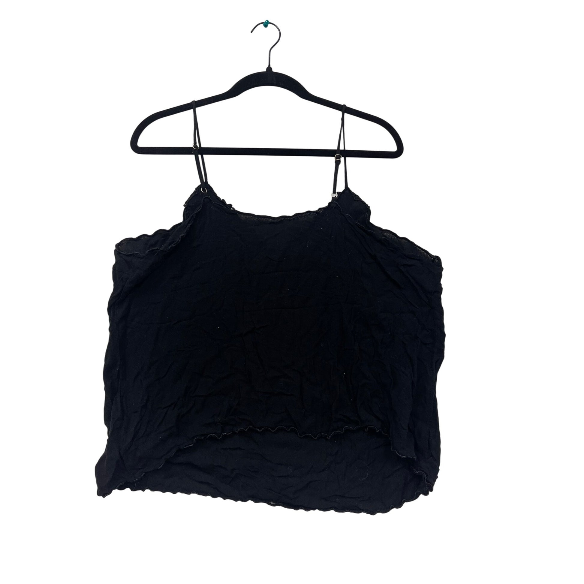 This sleeveless black top is designed with a delicate lace trim for a touch of elegance. Constructed from 100% polyester, it offers a comfortable fit, making it a versatile addition to your wardrobe. The adjustable straps ensure a personalized fit, catering to various body types.
