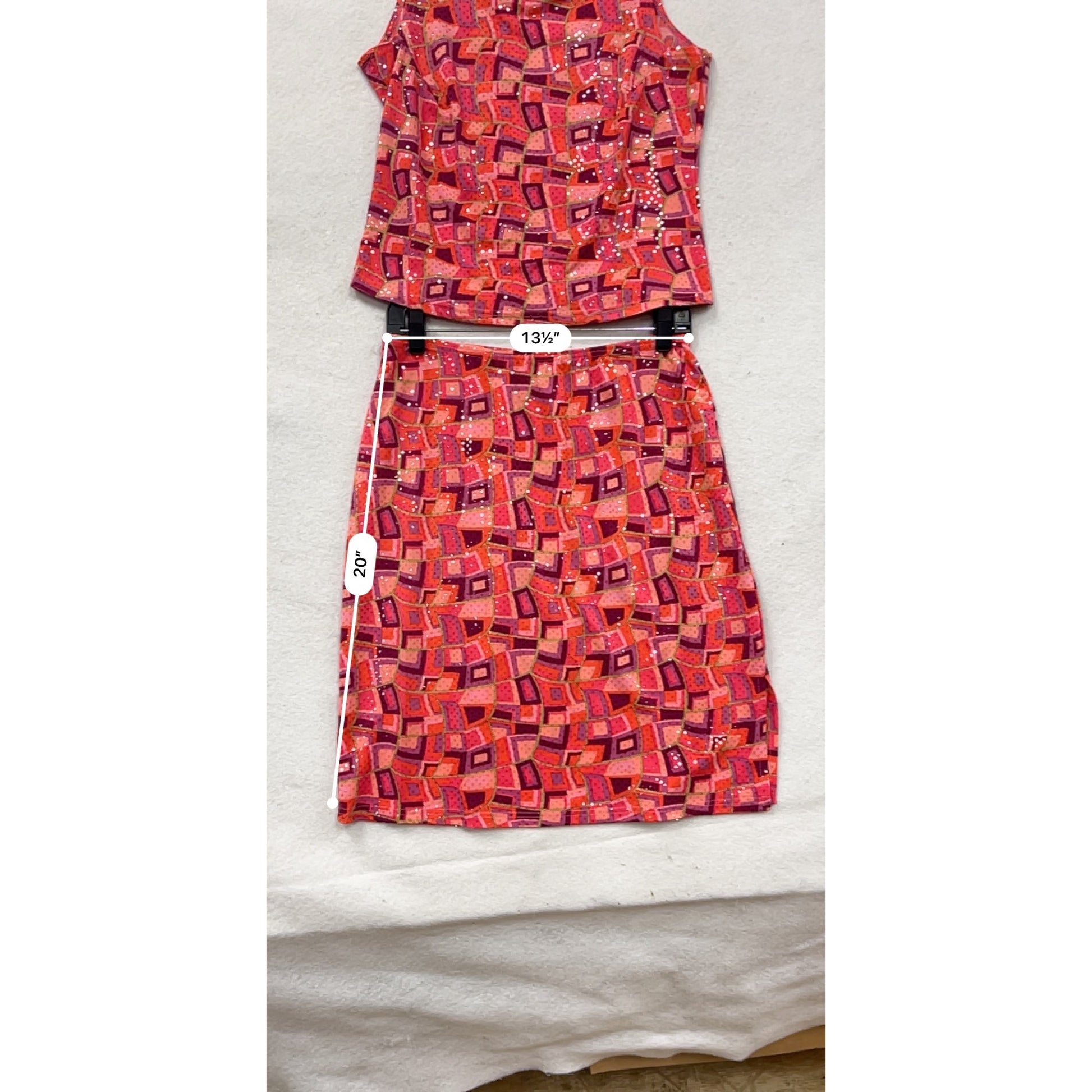 This 2-piece set offers a vibrant geometric design with a sleeveless top and coordinating skirt, crafted in a lightweight polyester blend for comfort and durability.