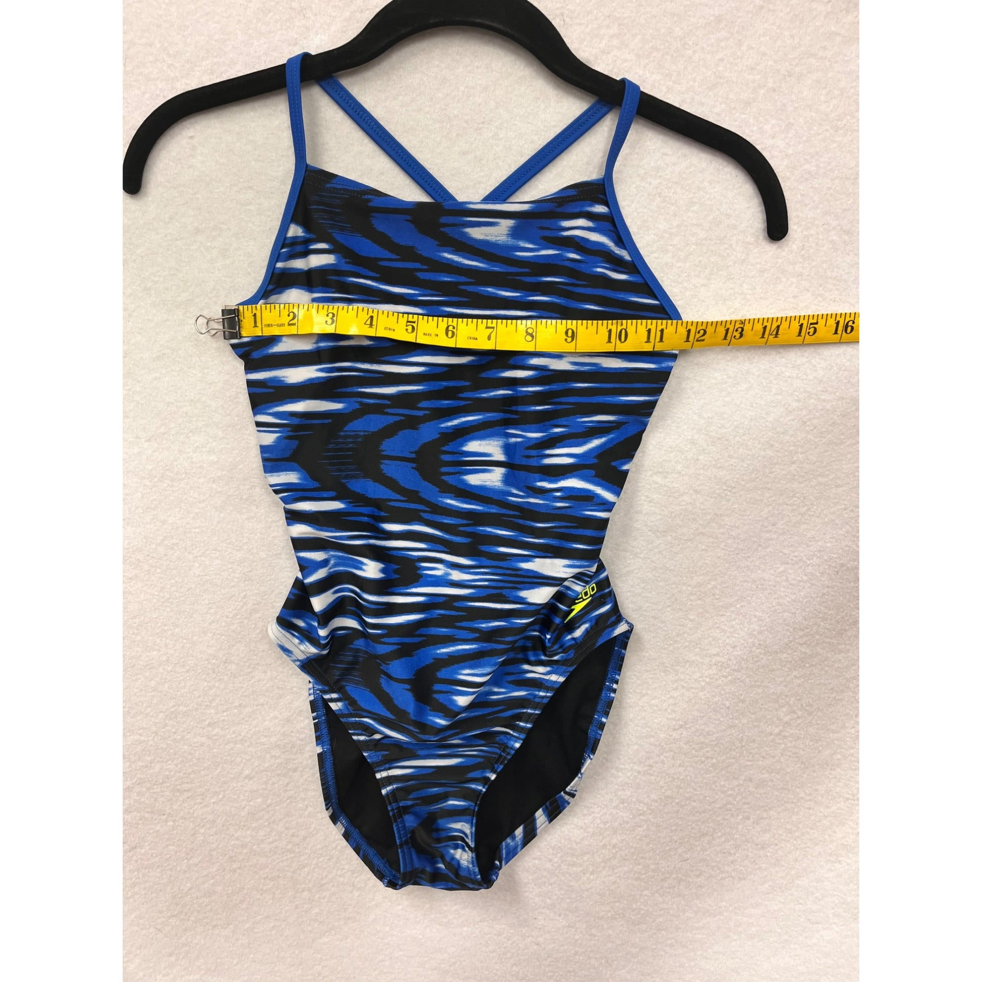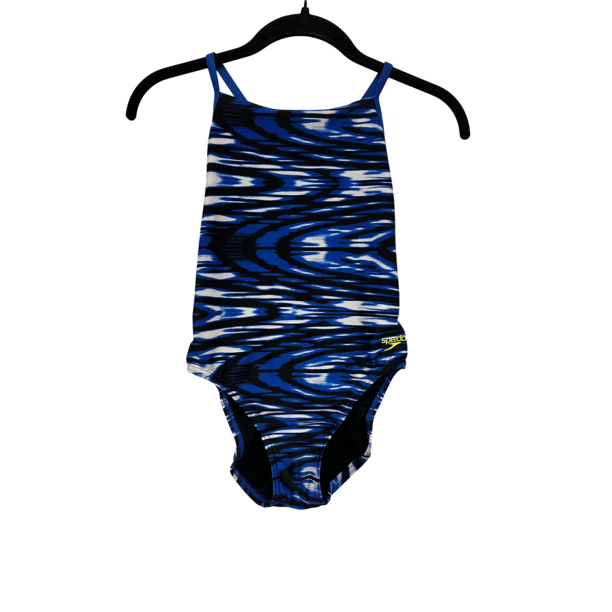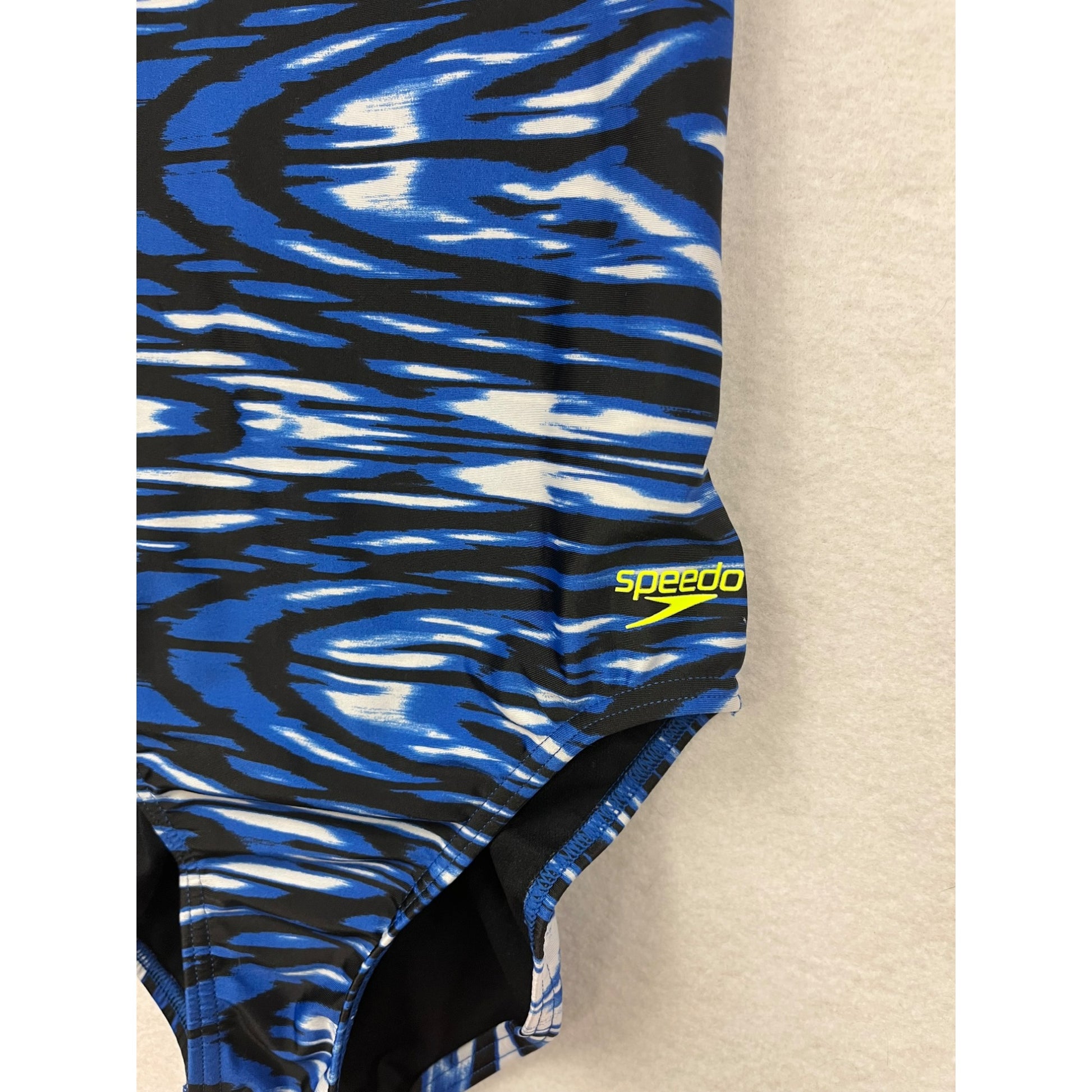 Dive into style with this Speedo swimsuit featuring a dynamic water ripple print. The Pro LT fabric ensures a comfortable fit for competitive swimming. Adjustable straps and a cross-back design offer support and flexibility.