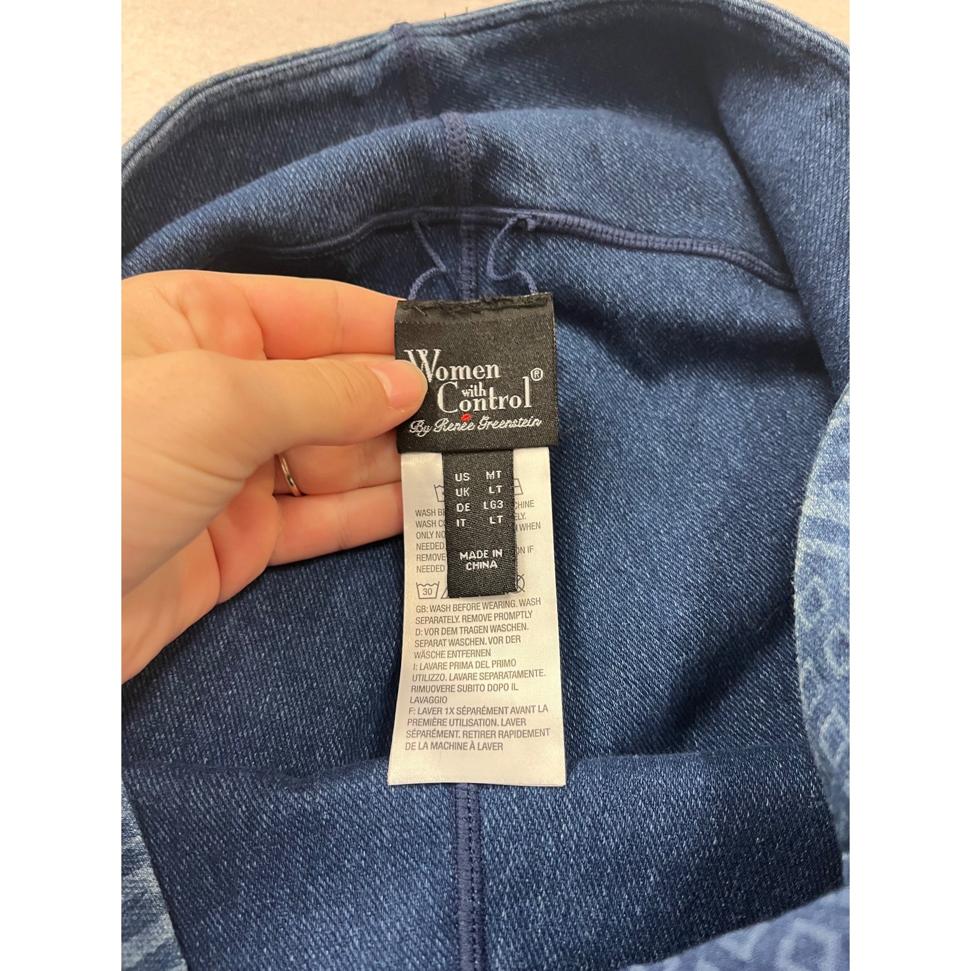 These tall medium leggings feature a professional geometric print design in a cotton spandex blend, providing a comfortable fit and a polished look.
