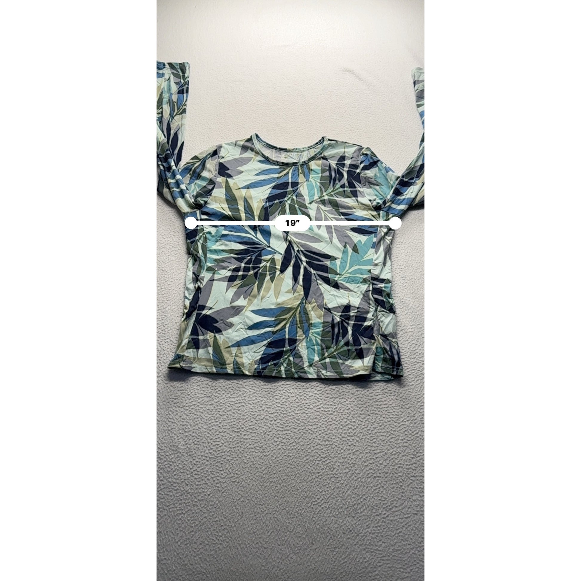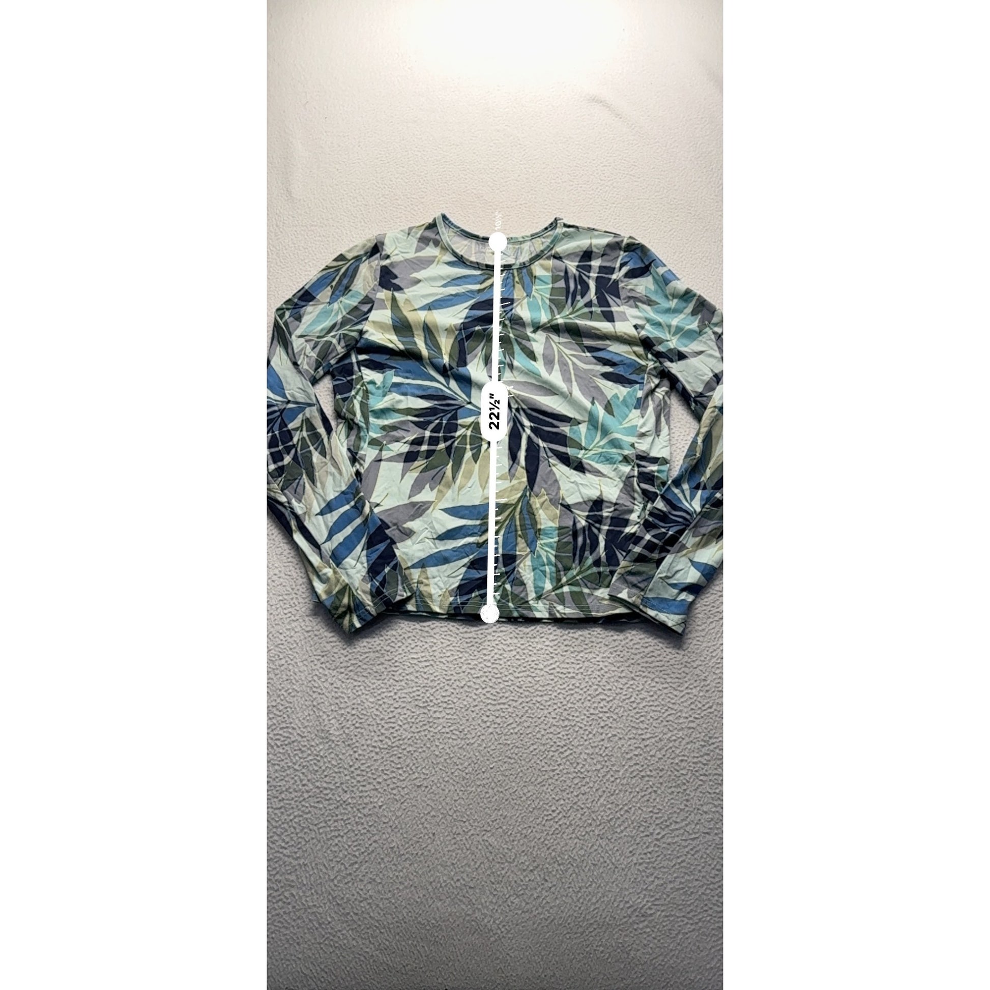 This lightweight mesh top with a vibrant leaf print offers a breezy feel and relaxed style. Perfect for layering or wearing solo.