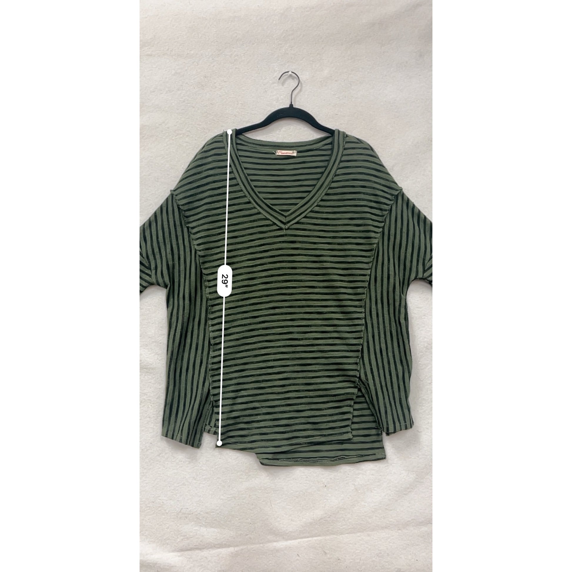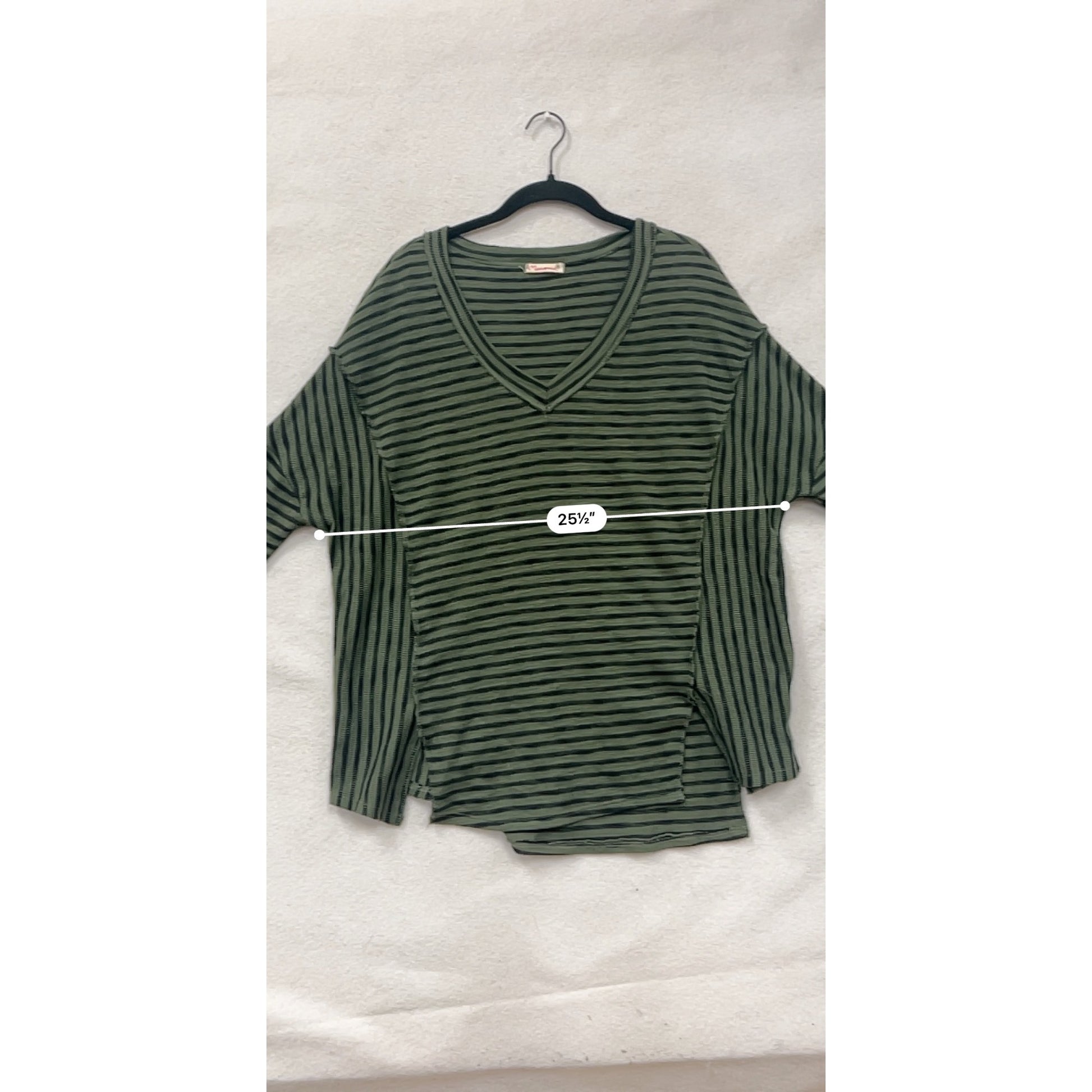 Womens Striped Green & Black V-Neck Long Sleeve Top By Marverie Size S #8791