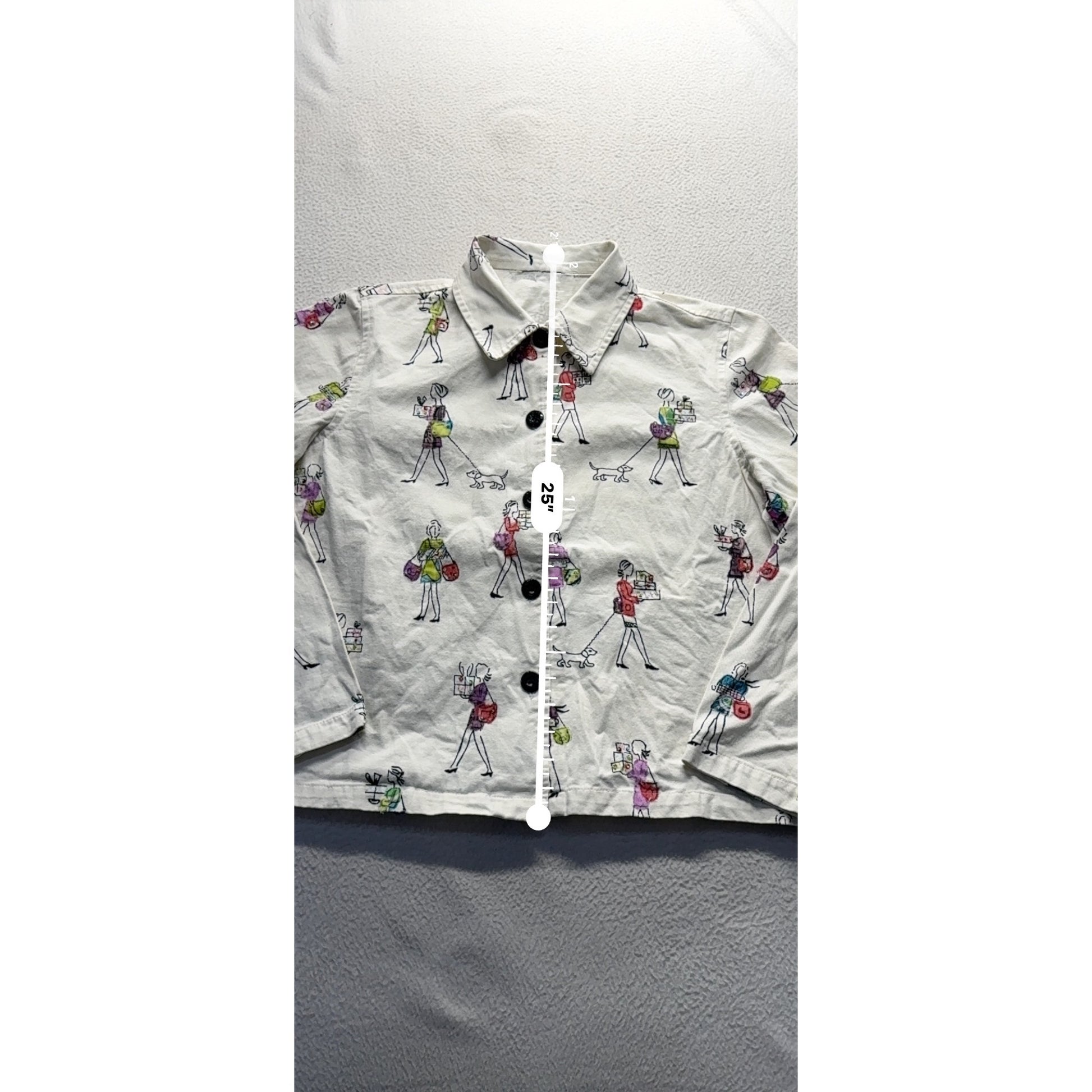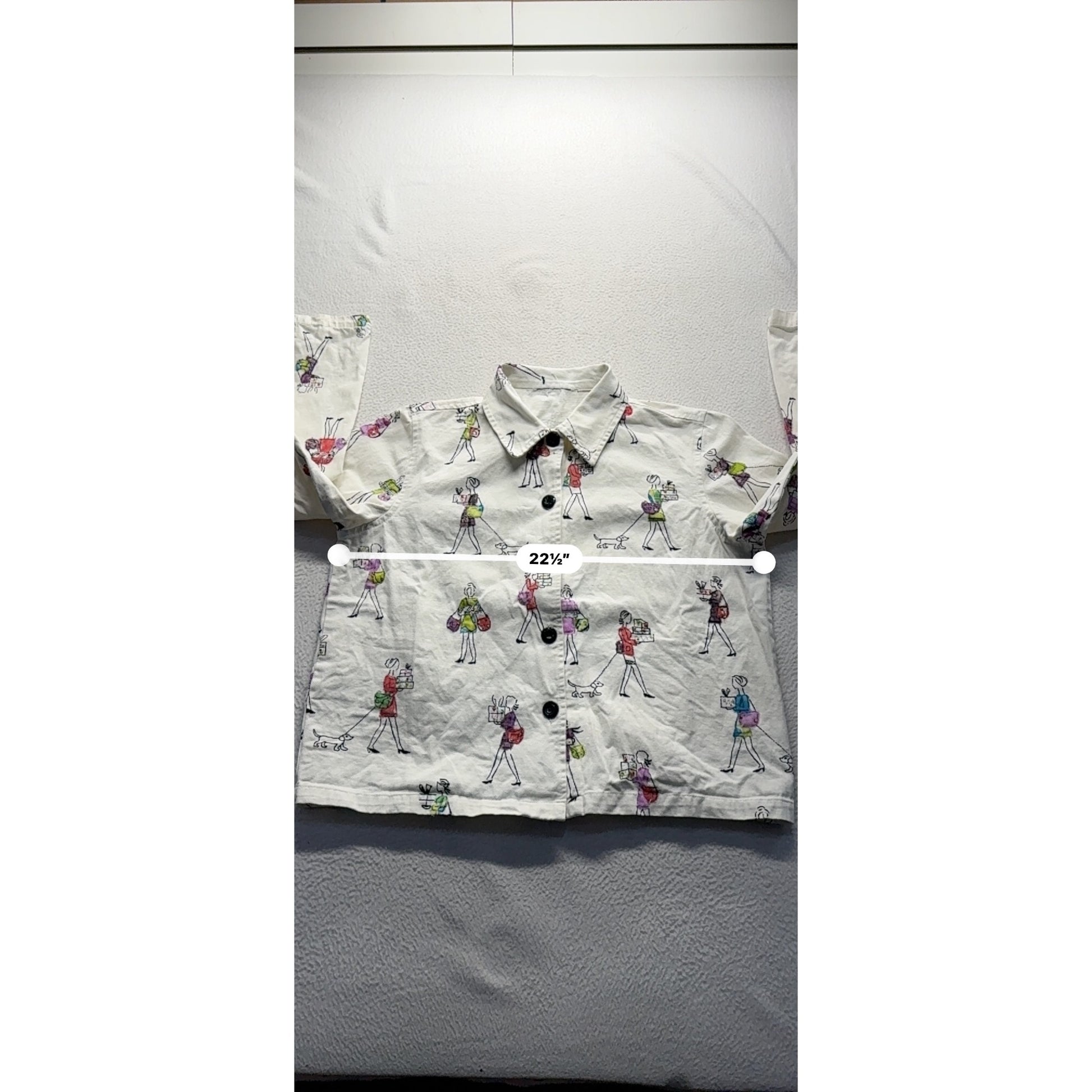 Womens White Top W/ Colorful Fashion Illustration Print & Bead Details #7806