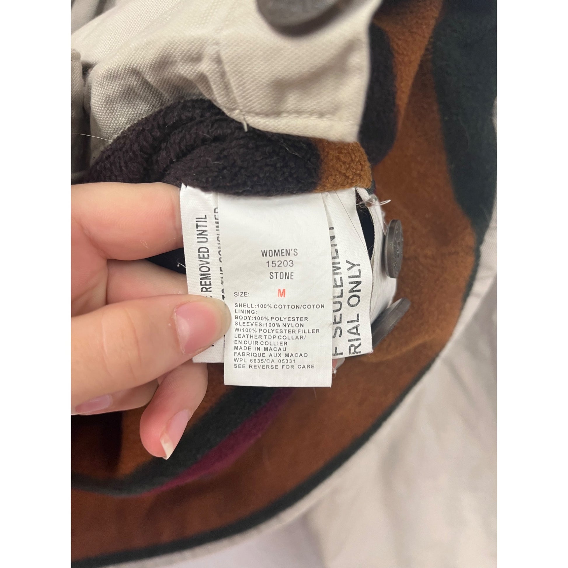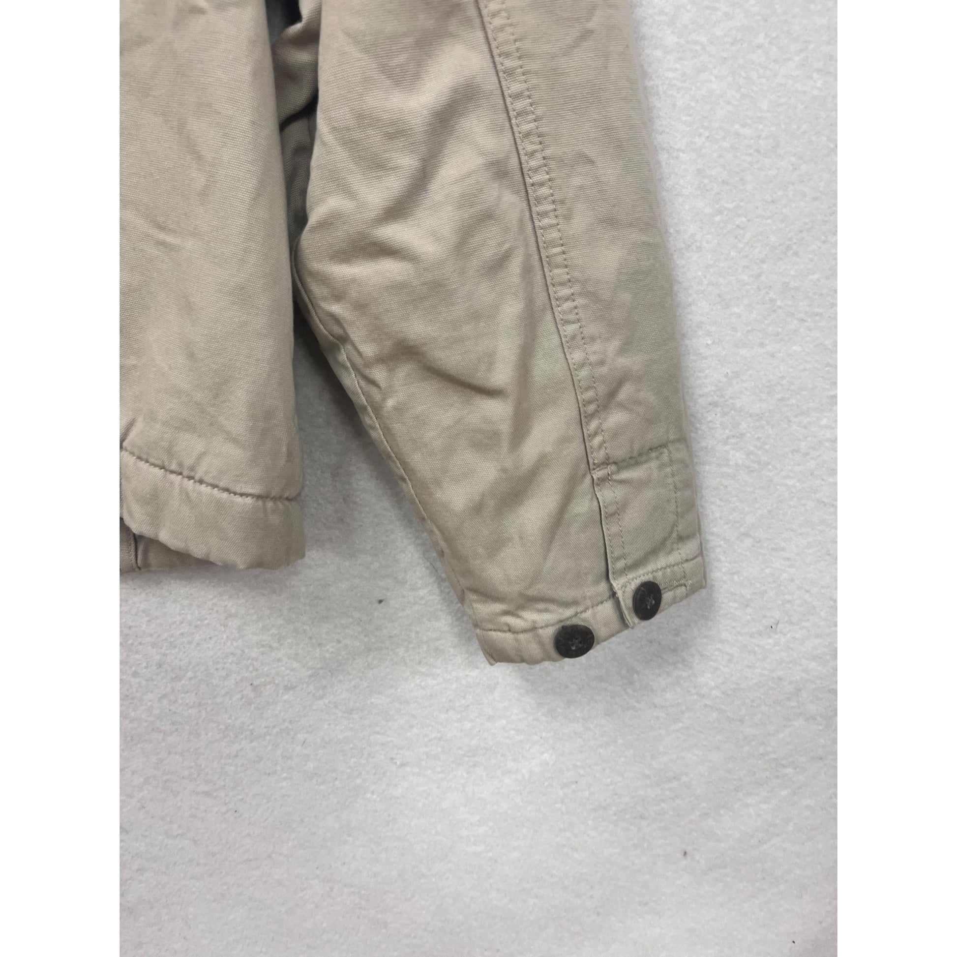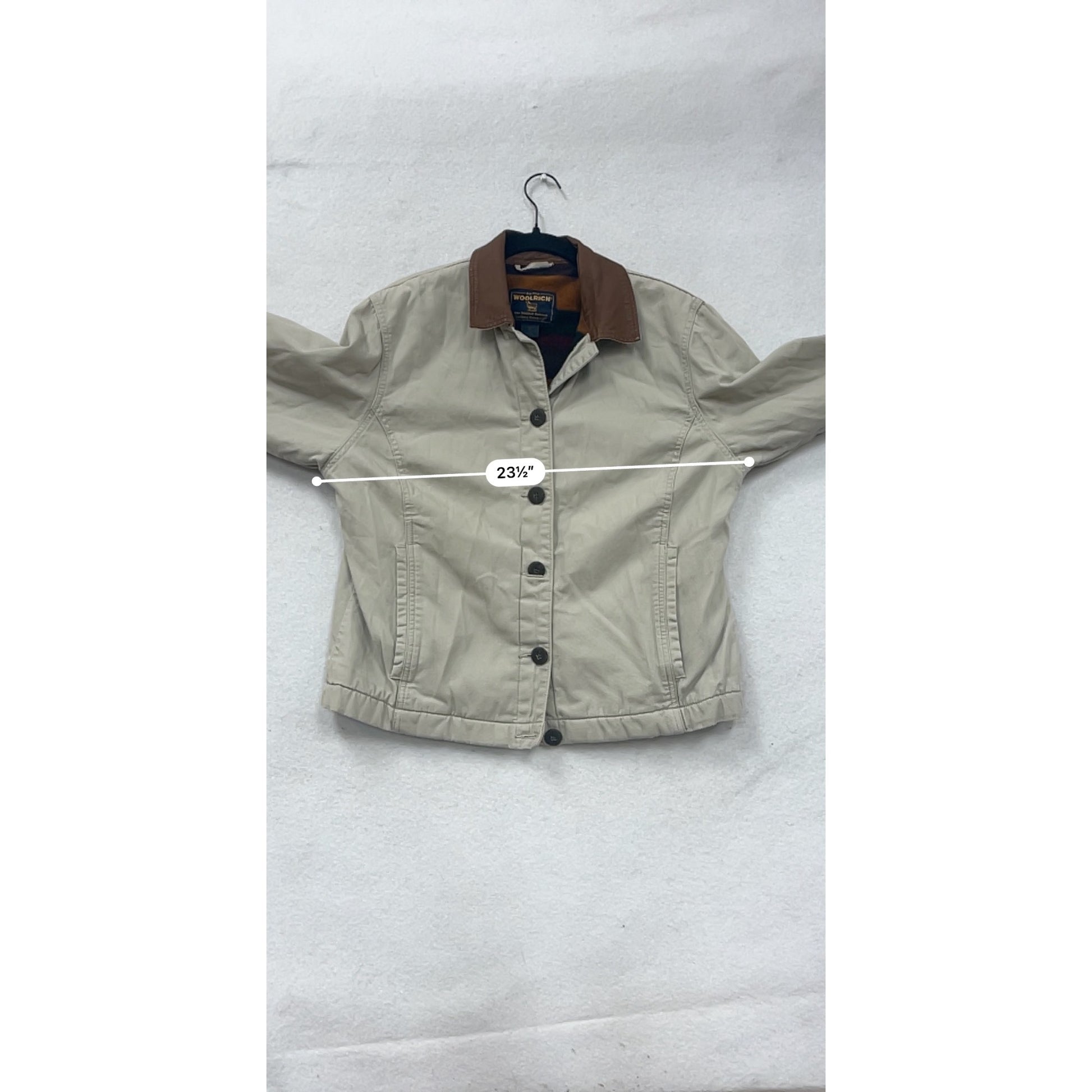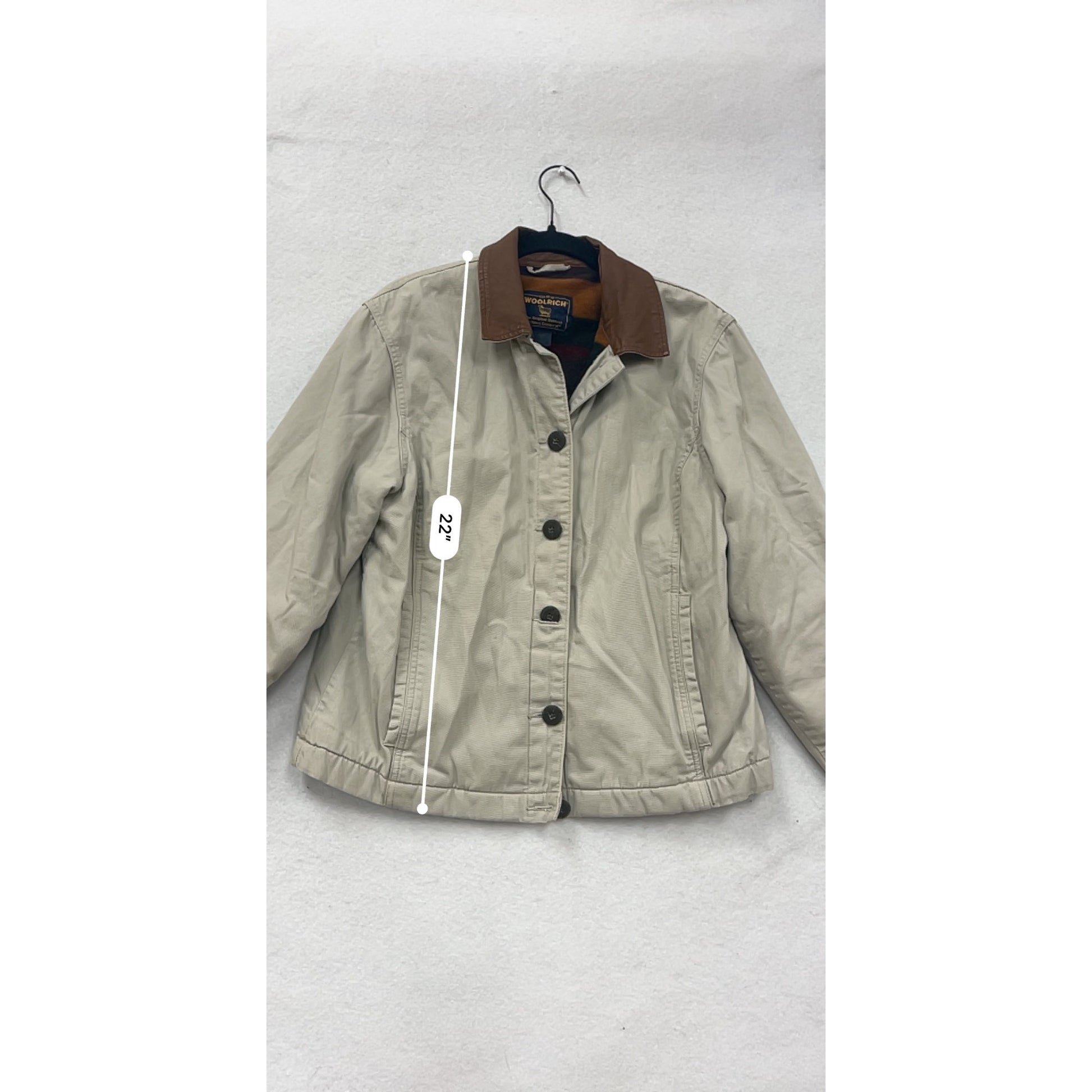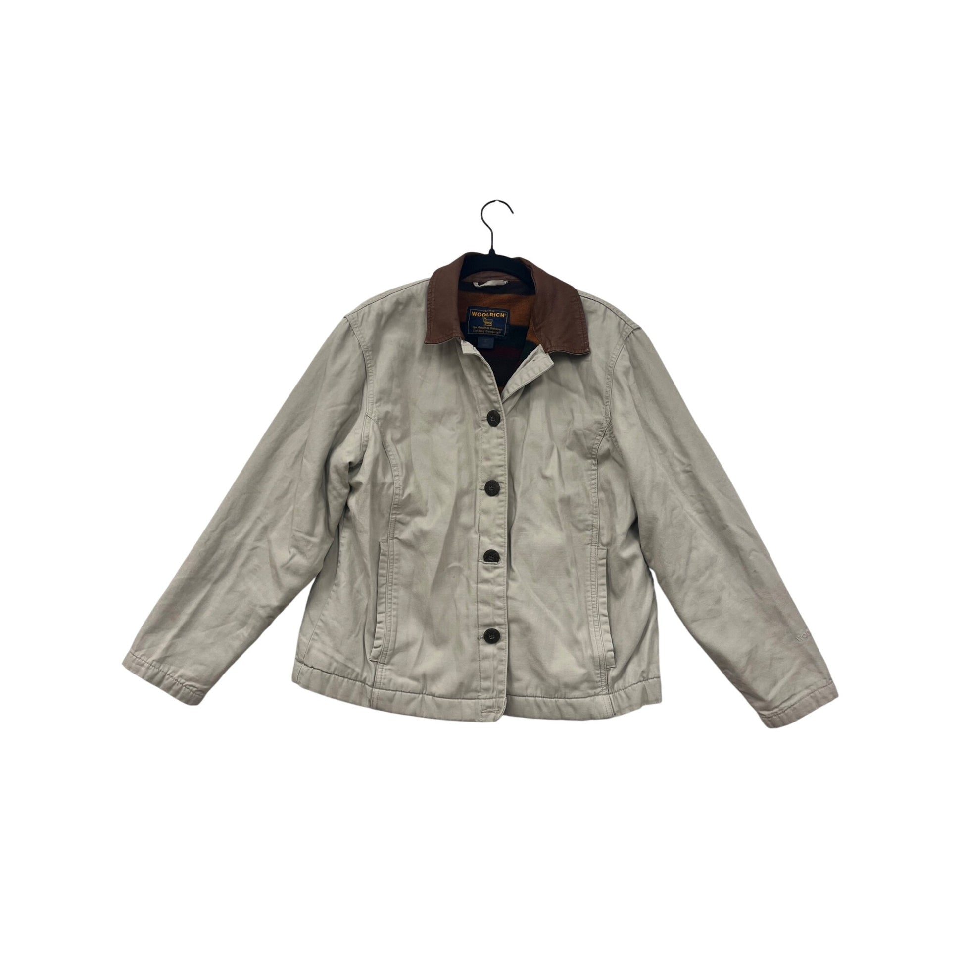 Womens Woolrich Beige Button-Front Jacket With Brown Collar & Striped Lining Size M 4A
