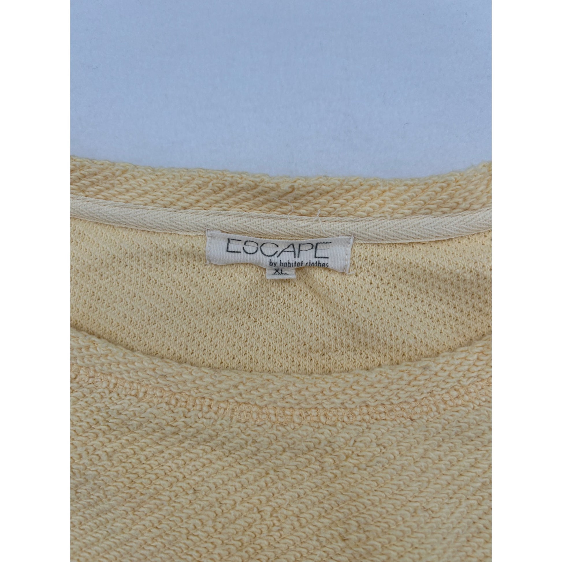 This textured knit top is lightweight and soft, designed with a loose fit. The long sleeves and vibrant yellow add a relaxed, cheerful vibe.