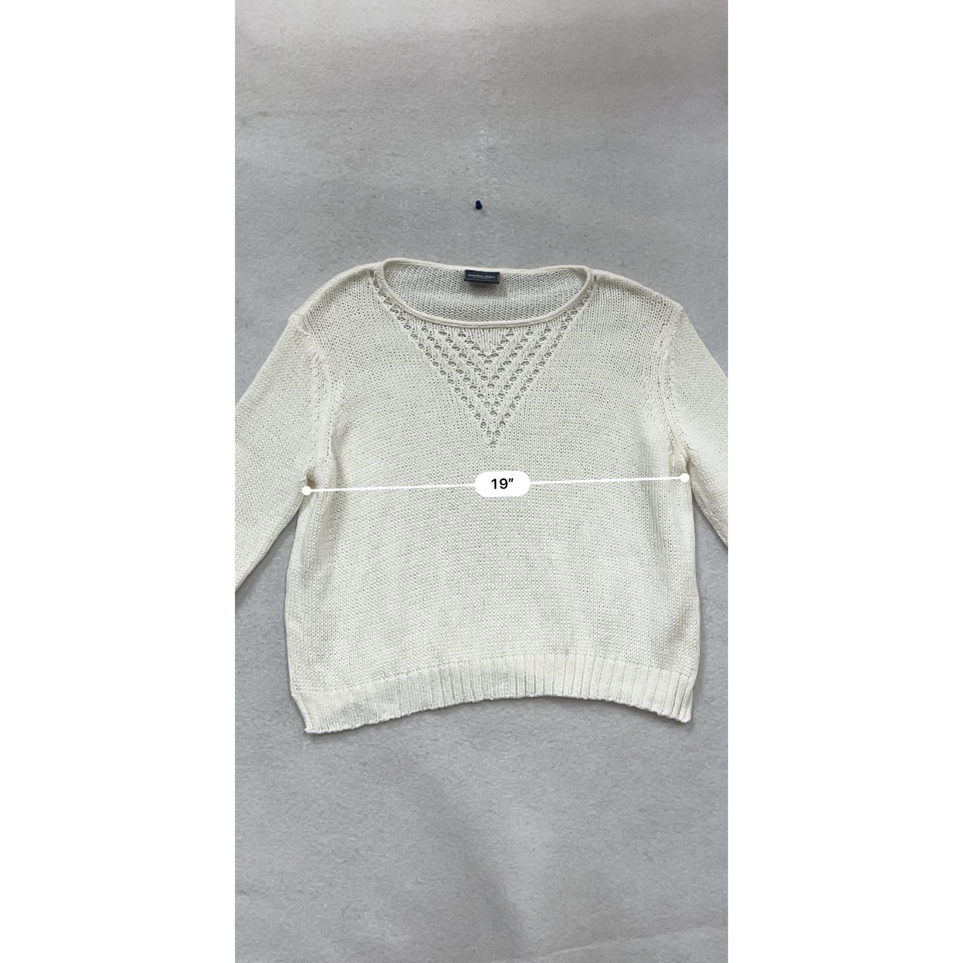 Elevate your wardrobe with this Wooden Ships women's sweater, featuring a chic 3/4 sleeve design. Made from a soft cotton blend, its lightweight knit fabric provides comfort and versatility. Ideal for layering in transitional seasons, this sweater's understated elegance makes it a valuable addition to your collection.