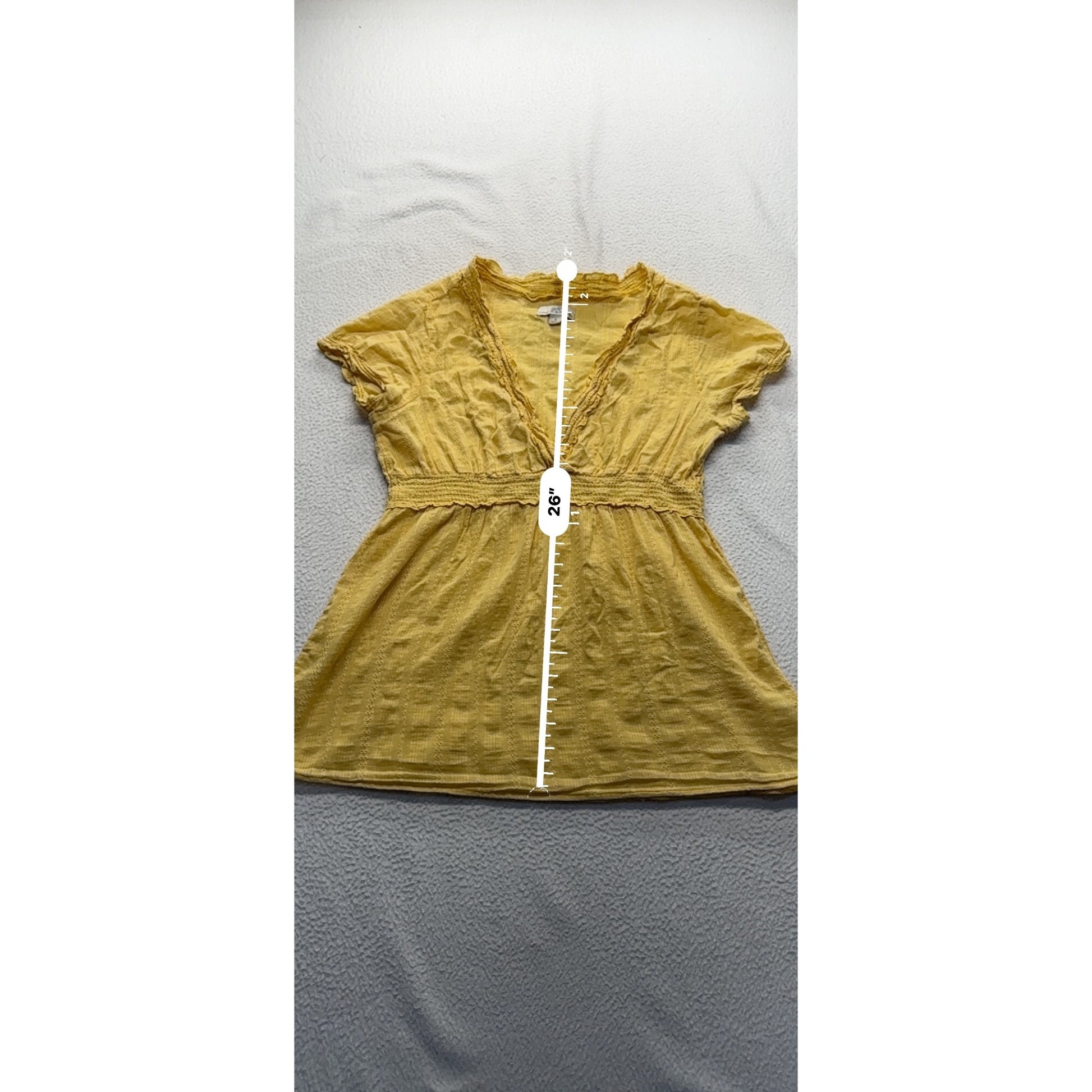 Yellow Short-Sleeve V-Neck Top Med By SO Wear It Declare It 100% Cotton #7763