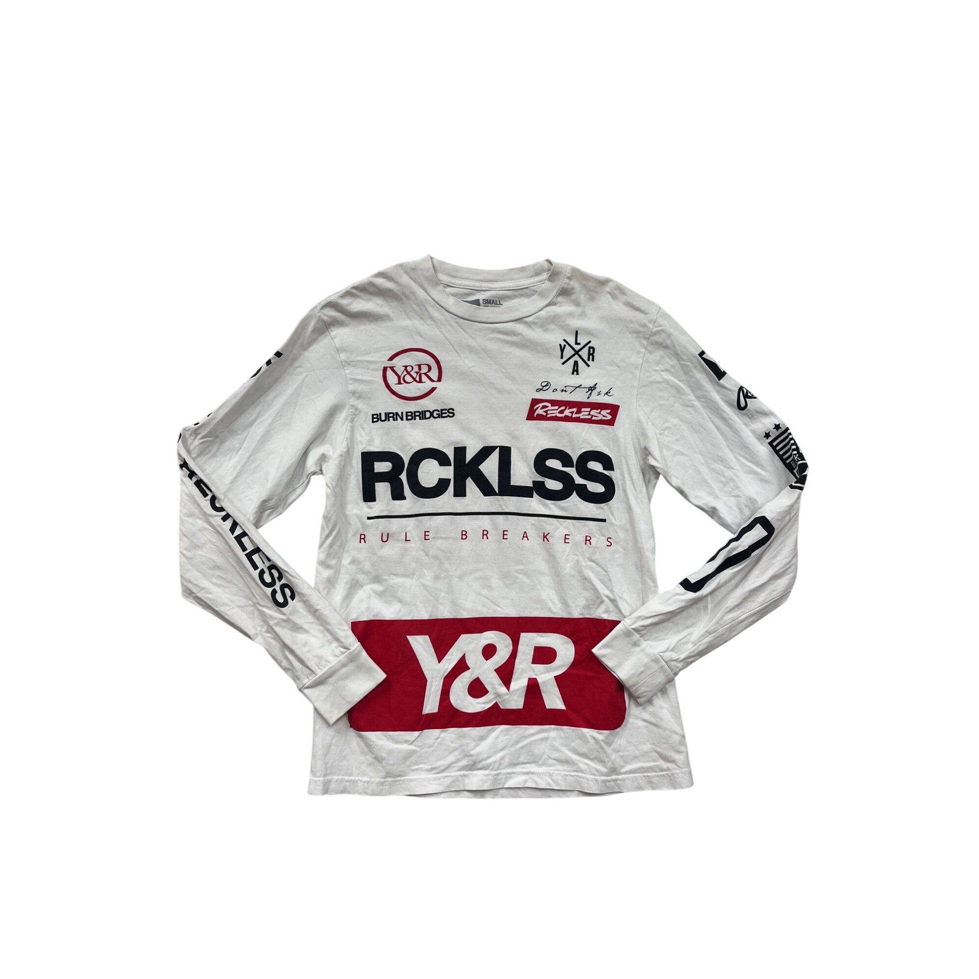 Young & Reckless White Graphic Long Sleeve T-Shirt Mens Small #8274