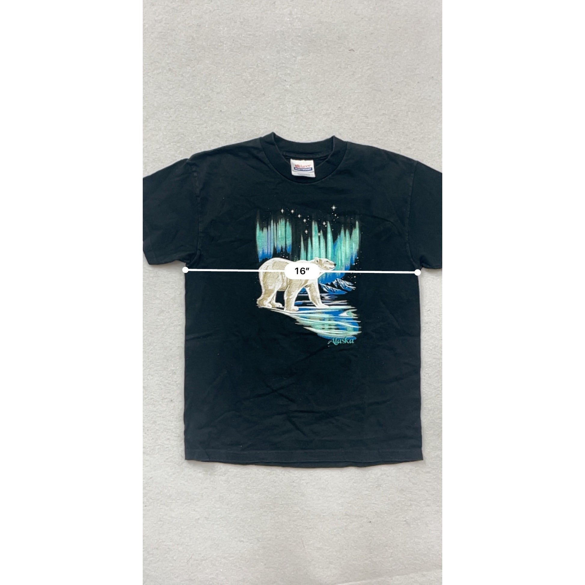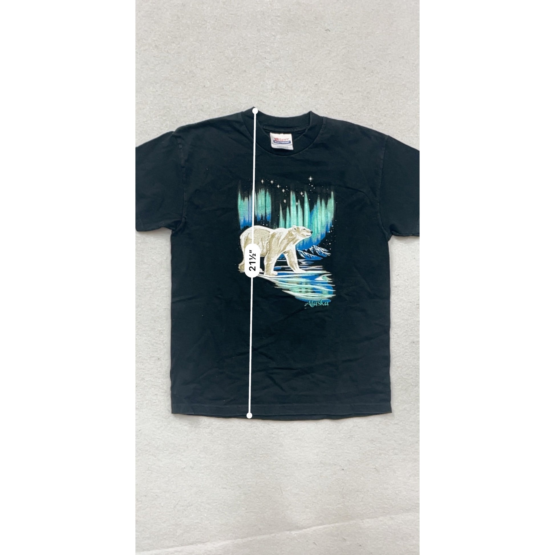 This Hanes Heavyweight T-shirt features a captivating polar bear design under the Northern Lights. Crafted from 100% preshrunk cotton, it's both stylish and comfortable.